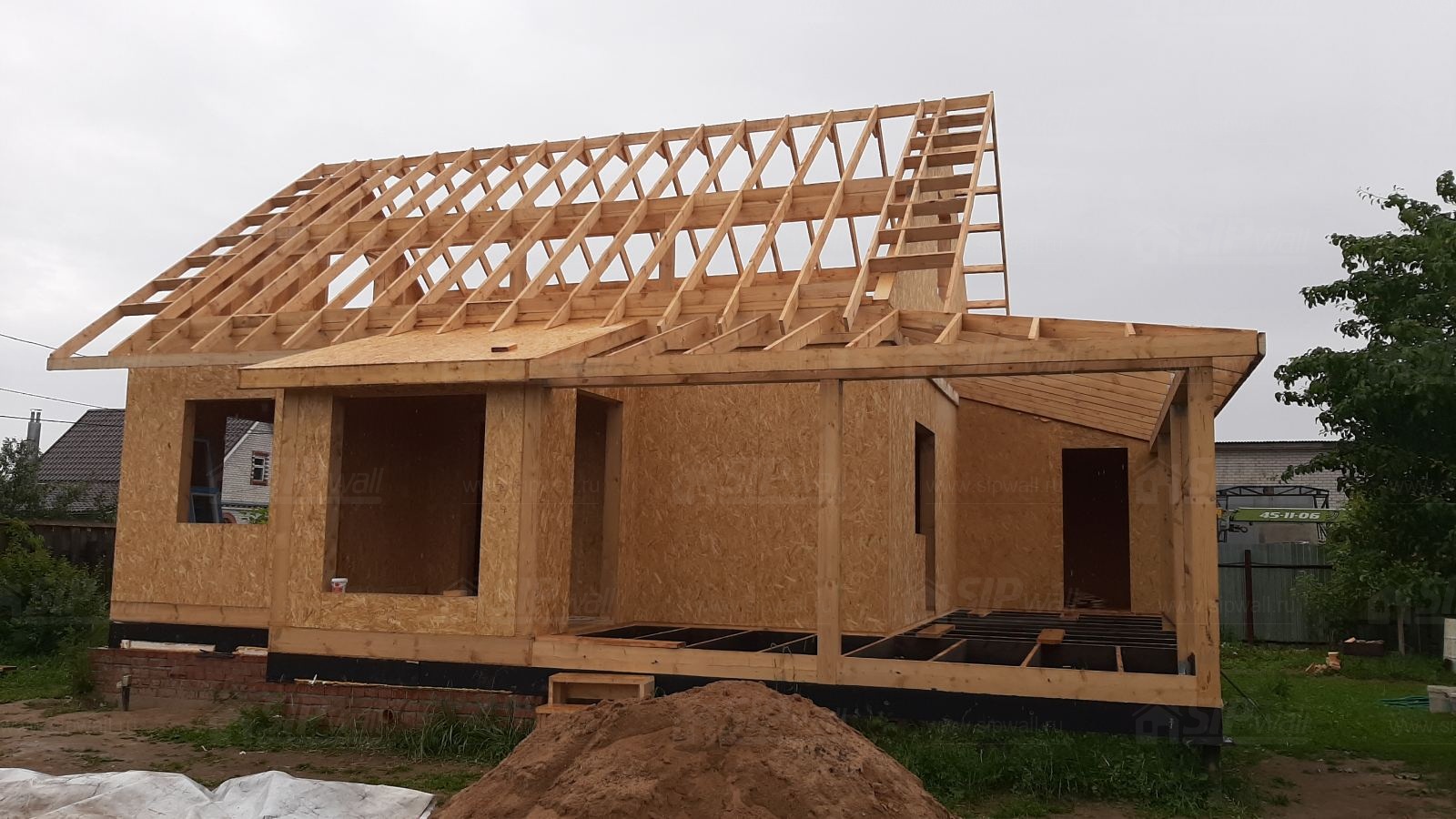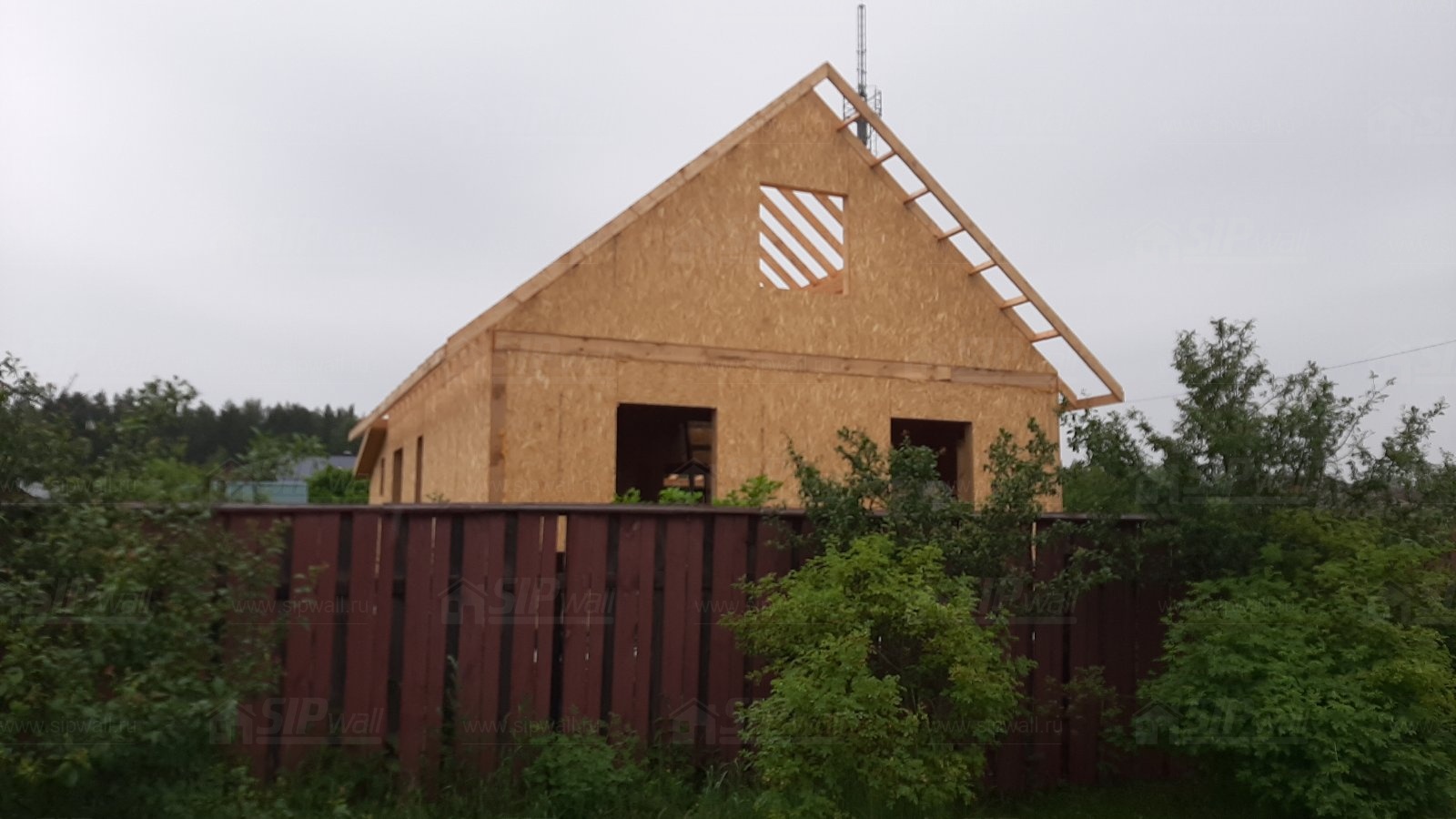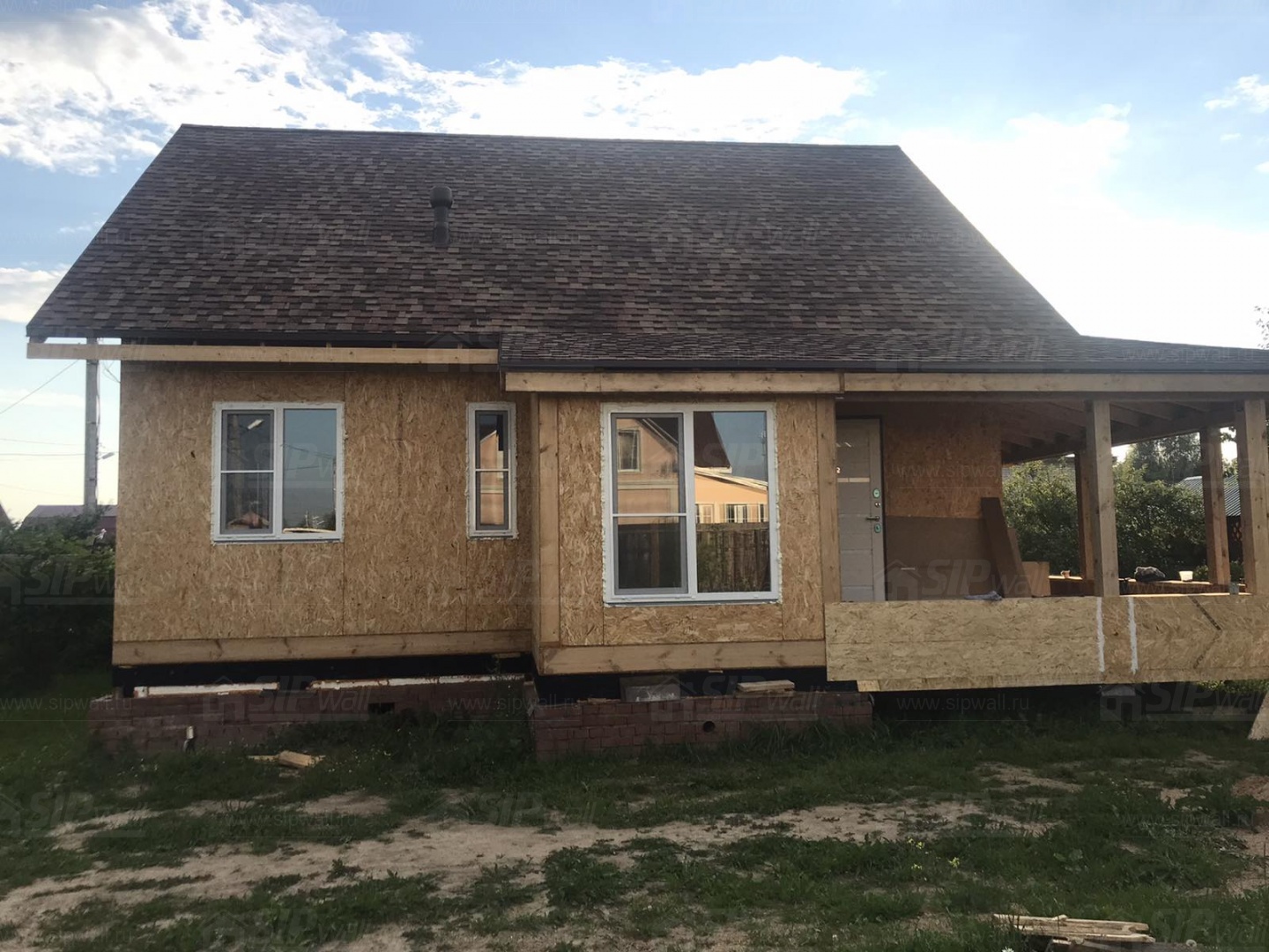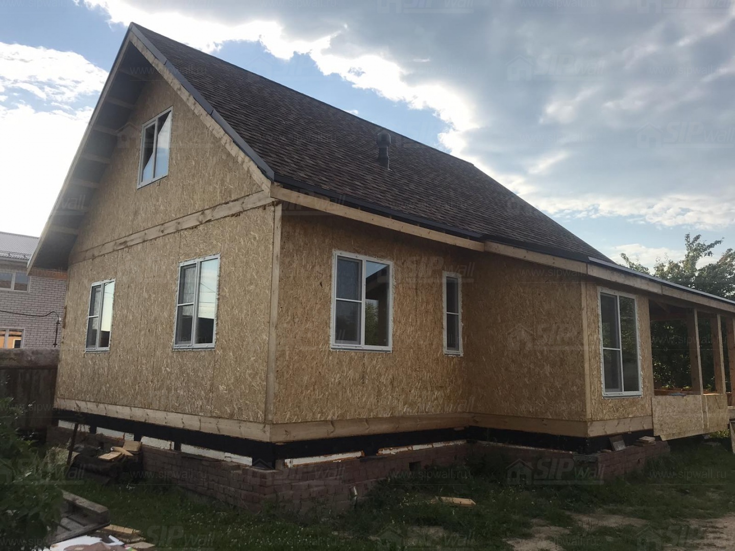 Комплектация домокомплекта: перекрытие на отметке +0.000 - СИП - 224У мм., несущие стены дома выполнены из СИП панелей 174 мм, внутренние несущие стены и не несущие стены выполнены из СИП панелей . Кровля дома выполнена из СИП панелей 224 мм.