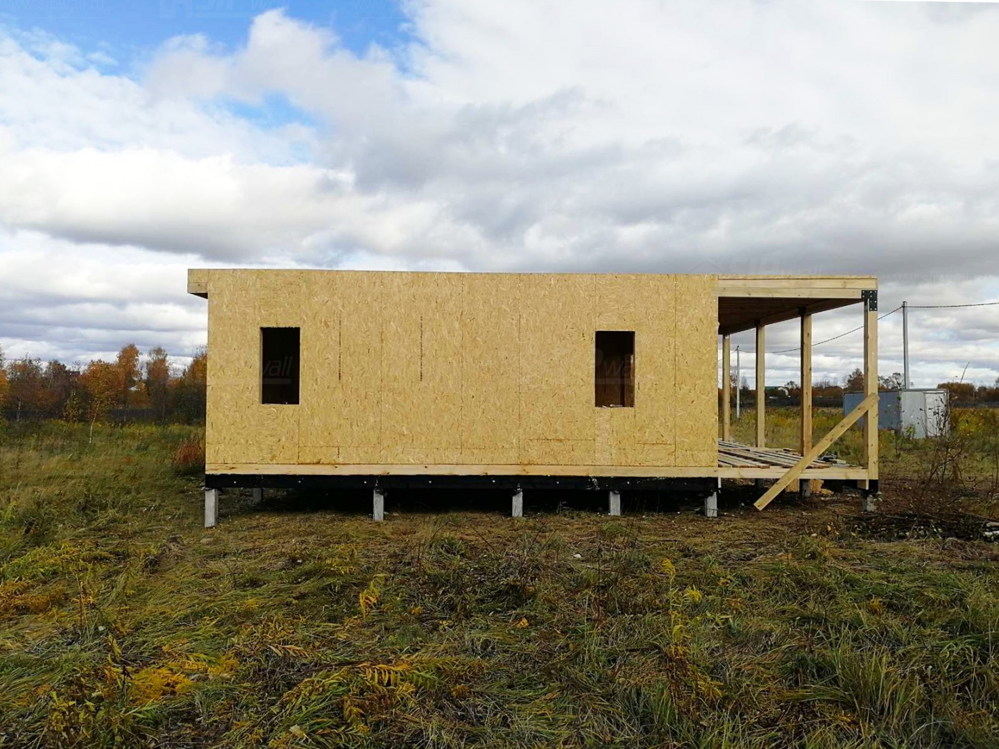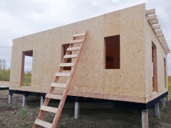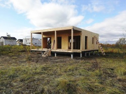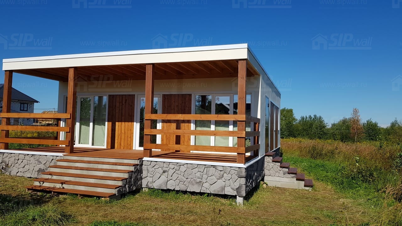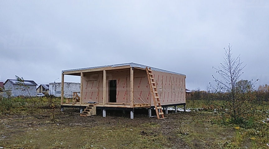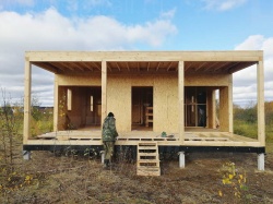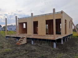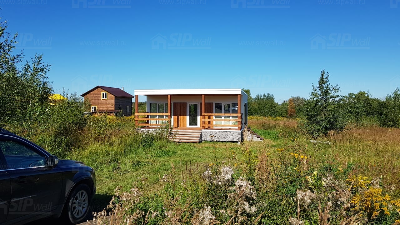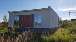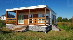 Домокомплект - изготовлен по проекту из СИП панелей произведенный по технологии SIPwall (ЭКОПАН) на собственном заводе расположенном в г. Шуя, Ивановской области. При изготовлении домокомплекта панельно каркасного дома используется только сухой строганный брус камерной сушки, обработанный огнебиозащитным составом.
