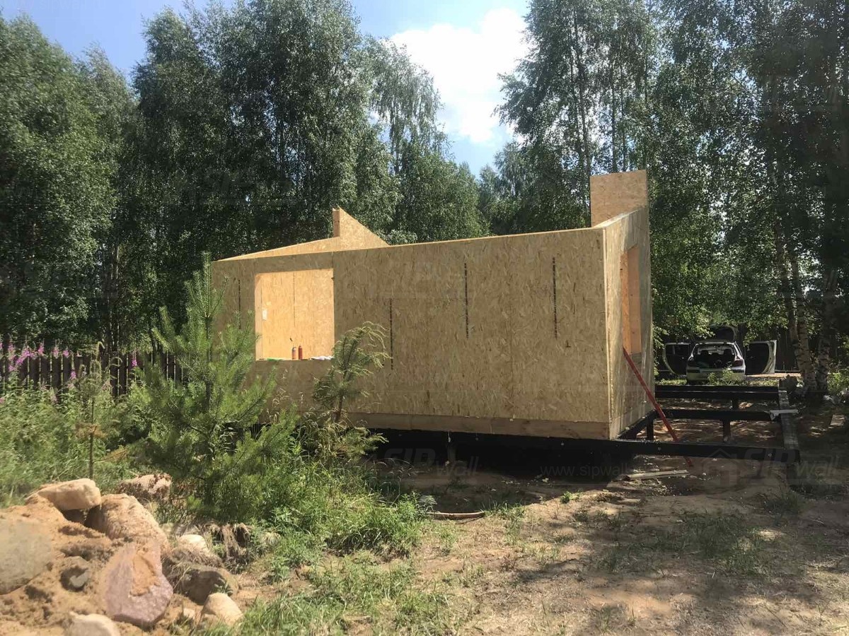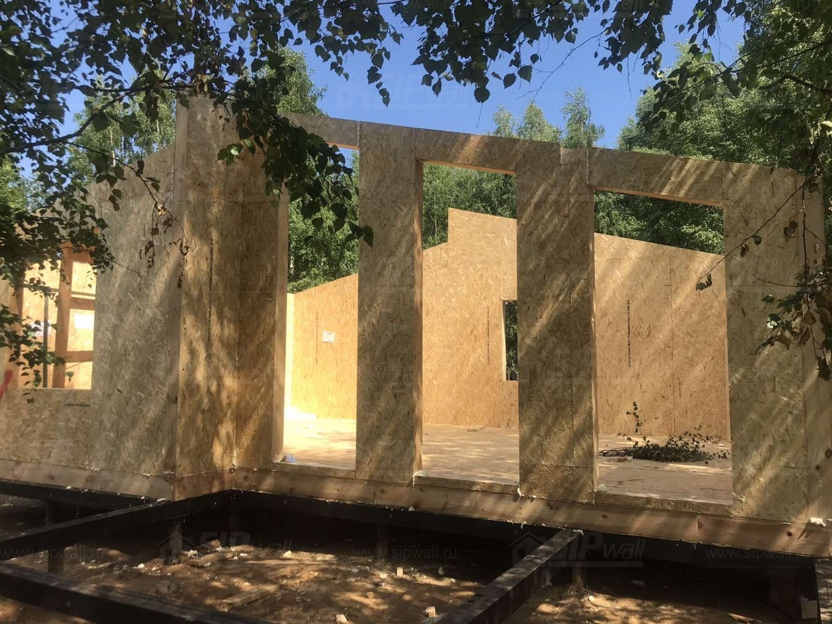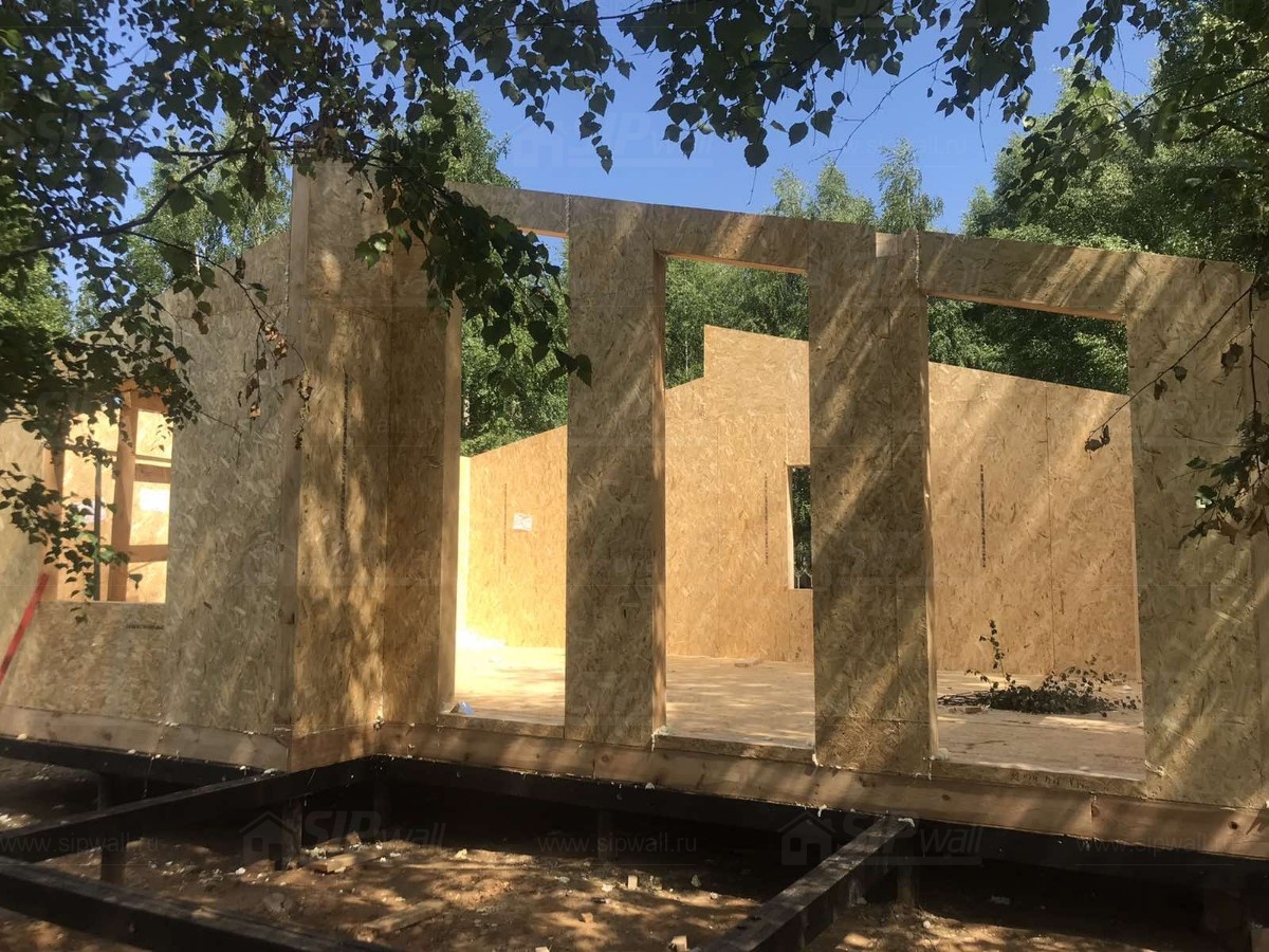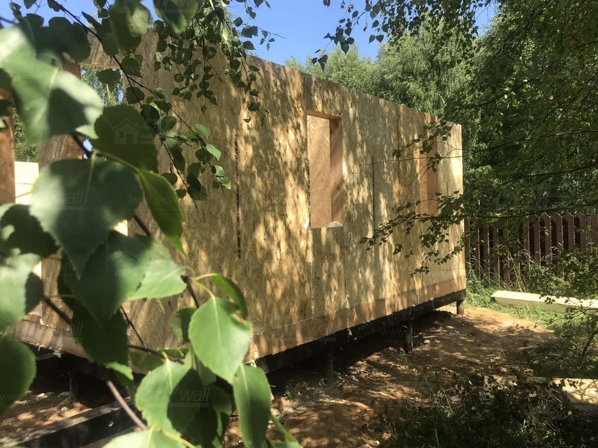 Все СИП панели SIPwall толщиной 224/174/124 мм (плиты OSB-3 толщиной 12 мм "Калевала" Россия и фасадный пенополистирол ППС-14 толщиной 200/150/100 мм производства, Россия) нарезаны и обрусованы сухим строганным брусом камерной сушки в соответствии с проектной документацией.