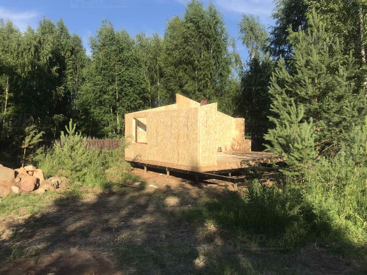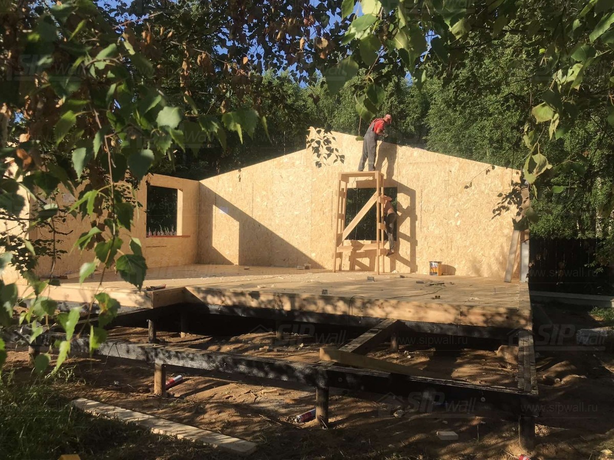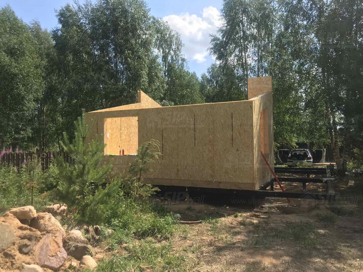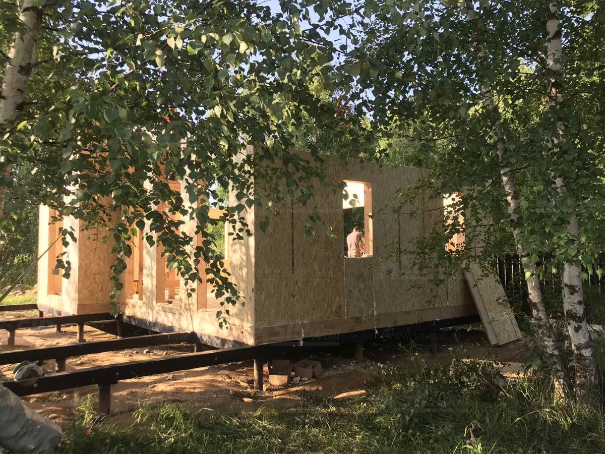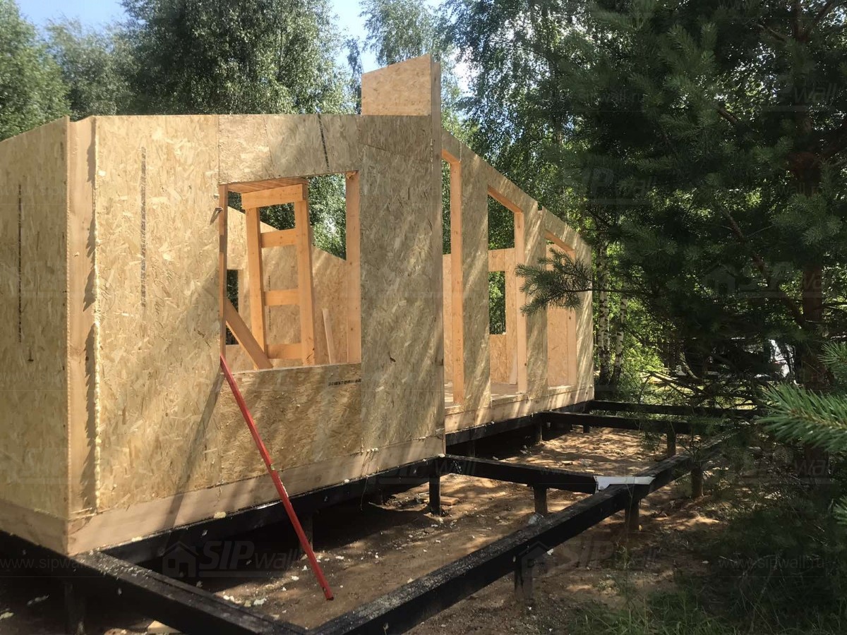 Все СИП панели SIPwall толщиной 224/174/124 мм (плиты OSB-3 толщиной 12 мм "Калевала" Россия и фасадный пенополистирол ППС-14 толщиной 200/150/100 мм производства, Россия) нарезаны и обрусованы сухим строганным брусом камерной сушки в соответствии с проектной документацией.