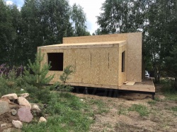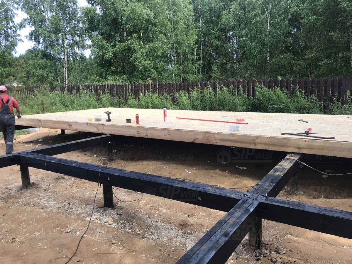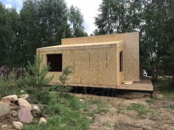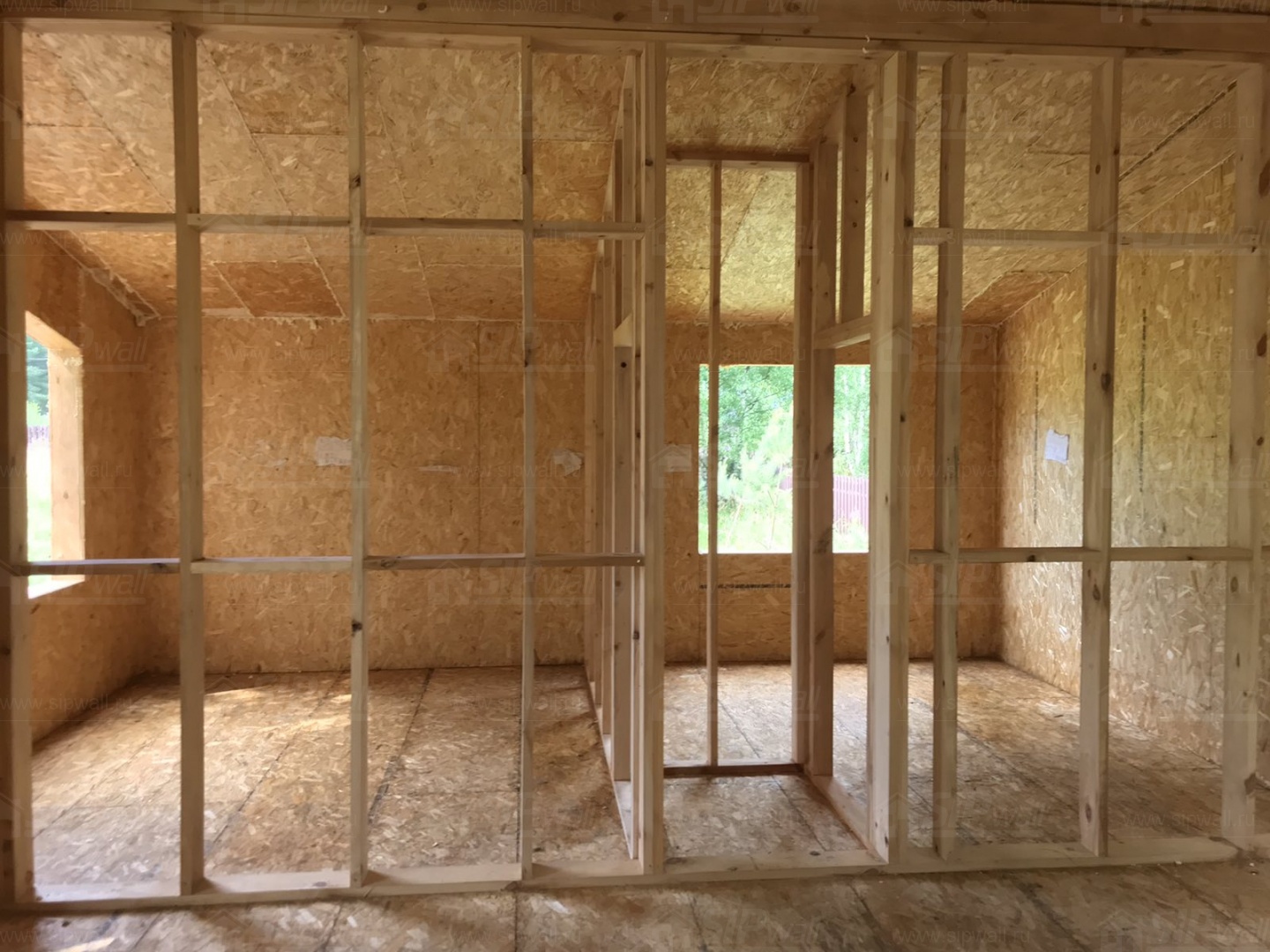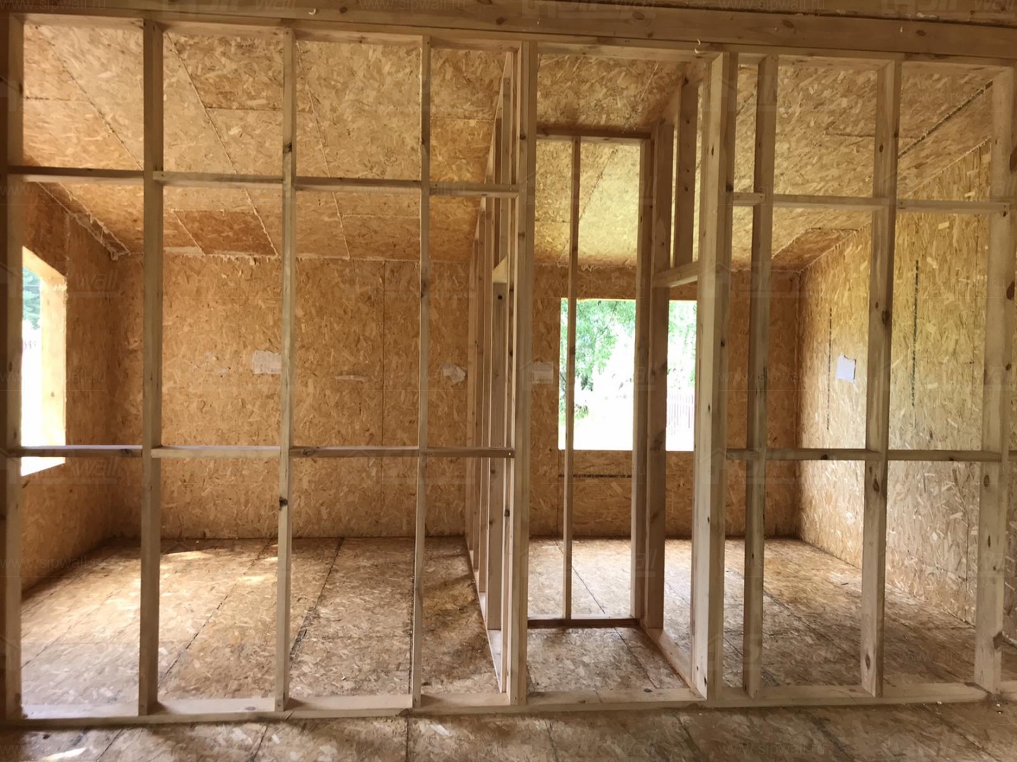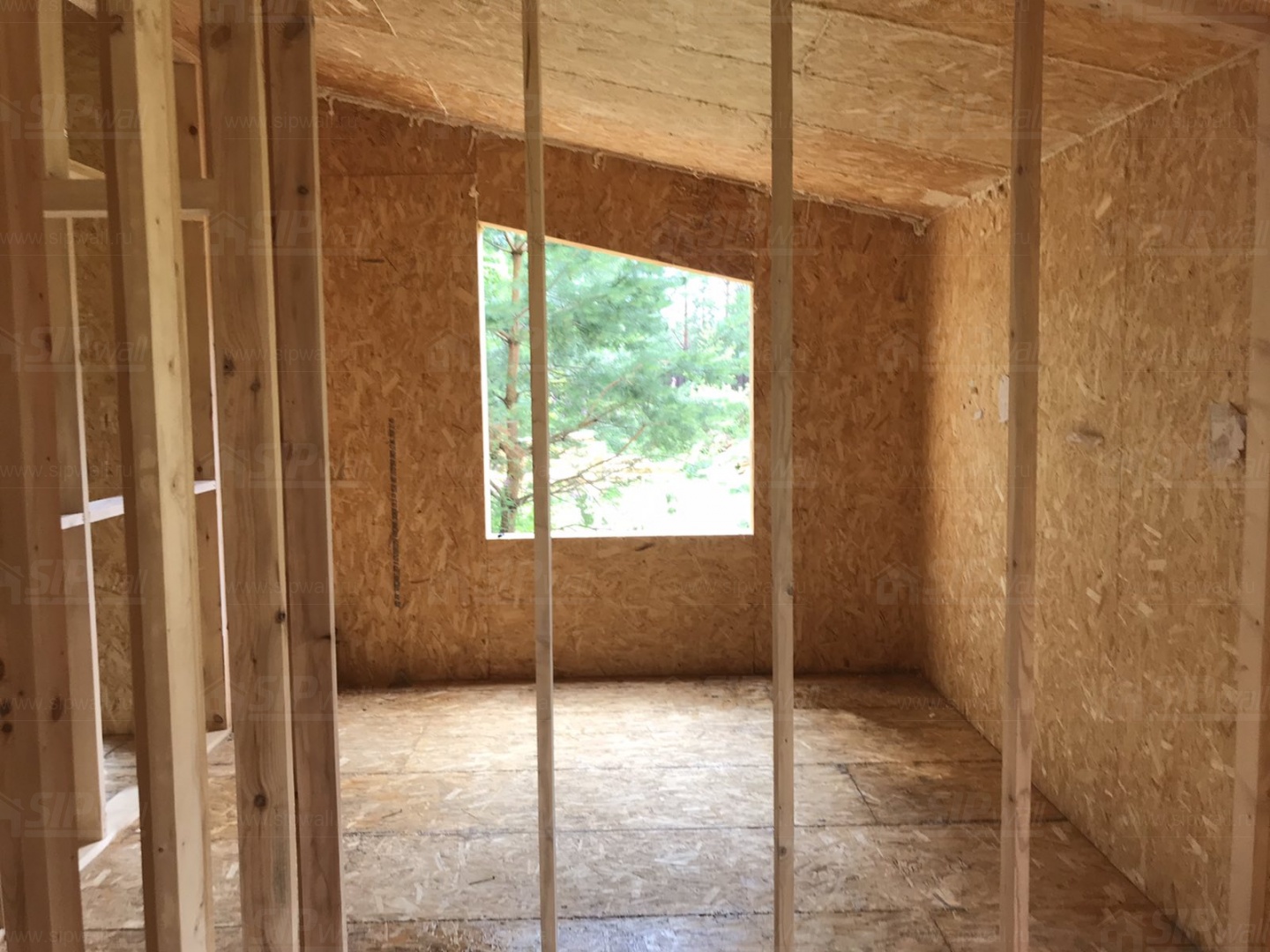 Все СИП панели SIPwall толщиной 224/174/124 мм (плиты OSB-3 толщиной 12 мм "Калевала" Россия и фасадный пенополистирол ППС-14 толщиной 200/150/100 мм производства, Россия) нарезаны и обрусованы сухим строганным брусом камерной сушки в соответствии с проектной документацией.
