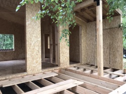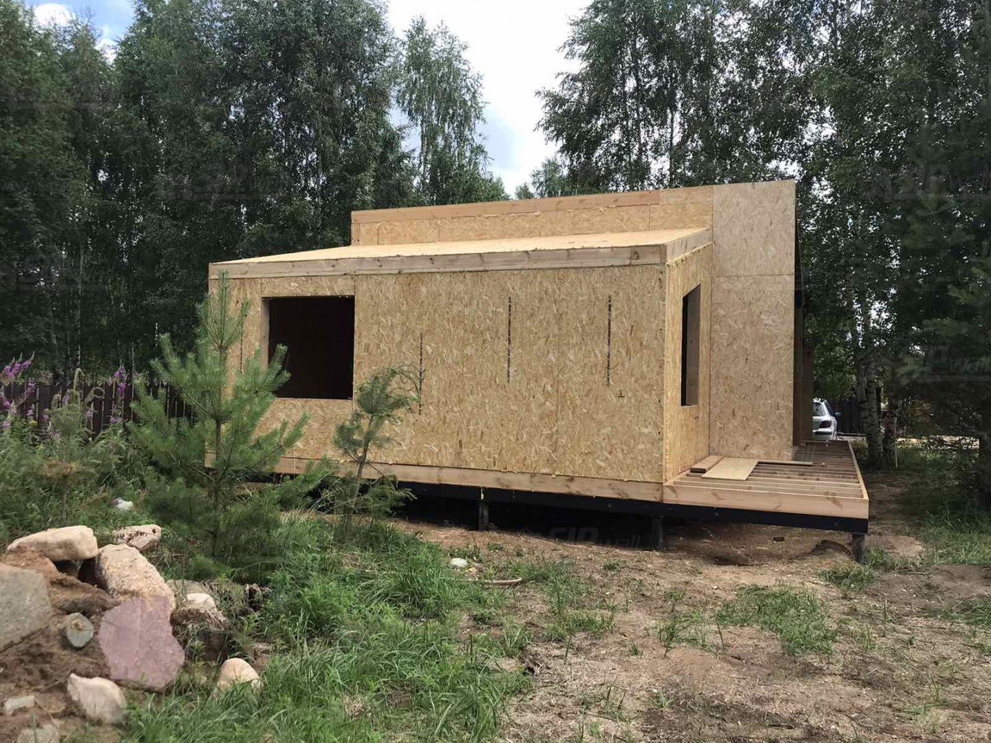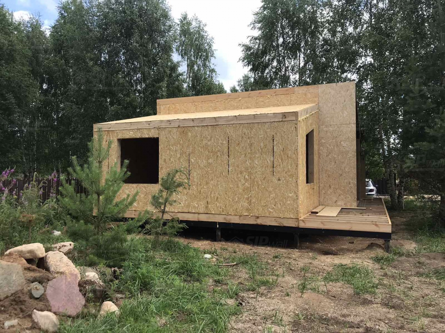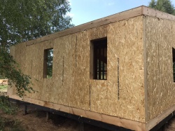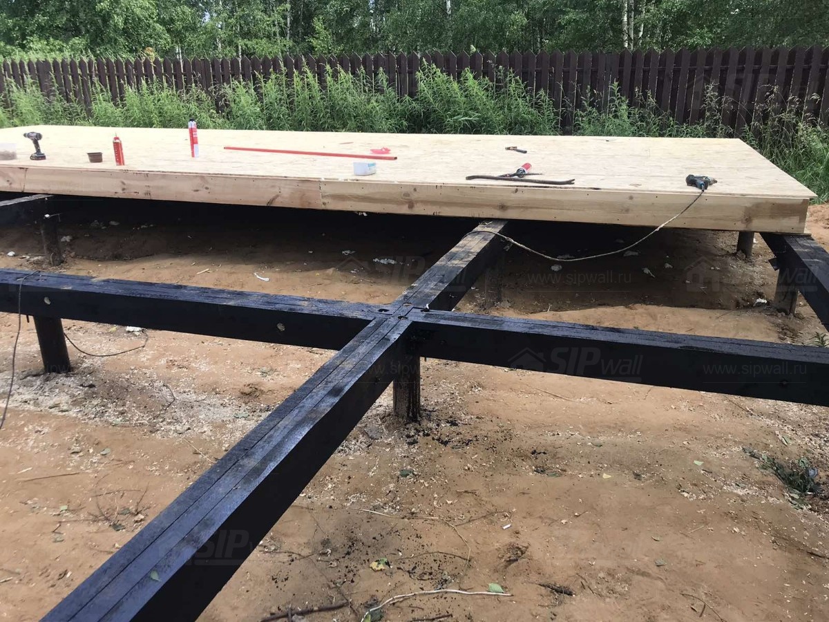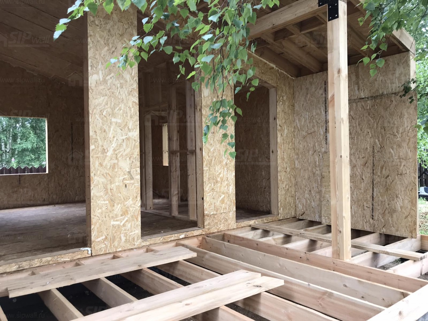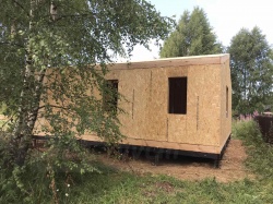 Все СИП панели SIPwall толщиной 224/174/124 мм (плиты OSB-3 толщиной 12 мм "Калевала" Россия и фасадный пенополистирол ППС-14 толщиной 200/150/100 мм производства, Россия) нарезаны и обрусованы сухим строганным брусом камерной сушки в соответствии с проектной документацией.