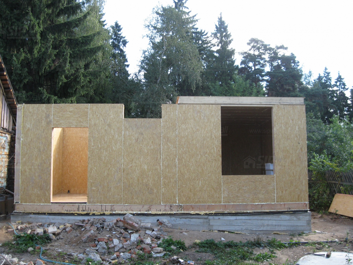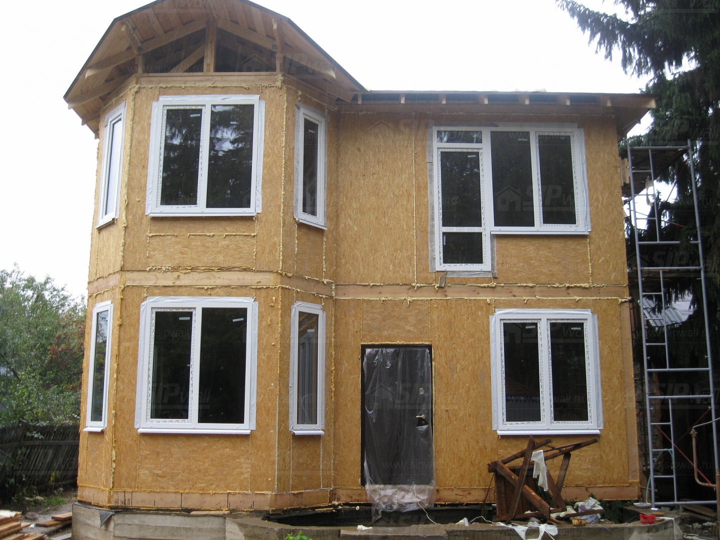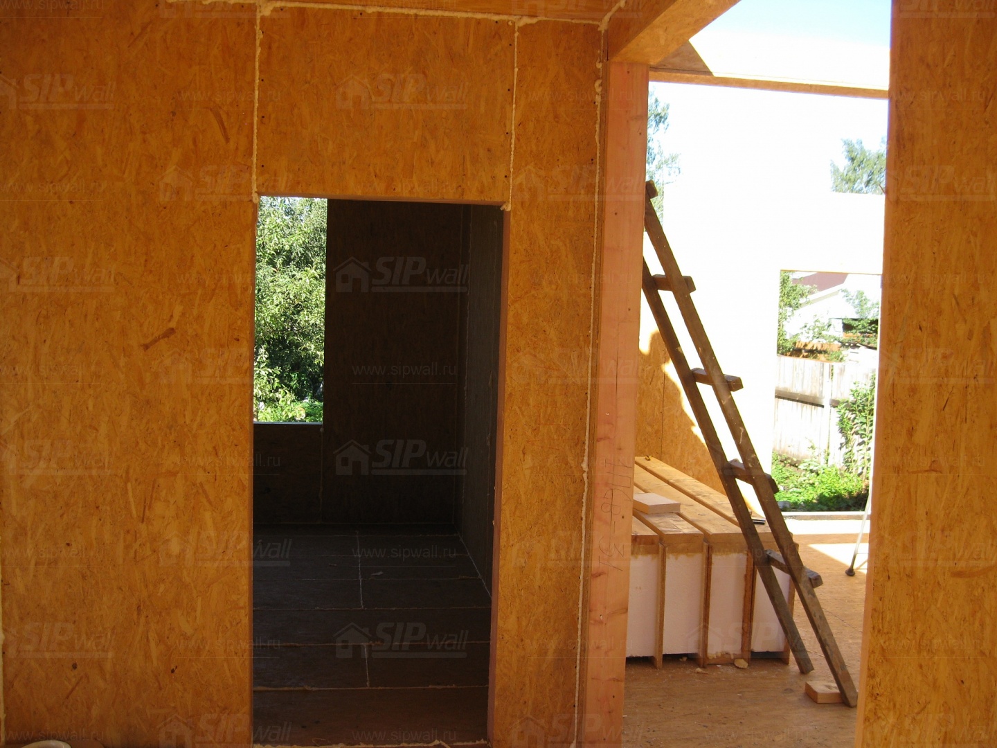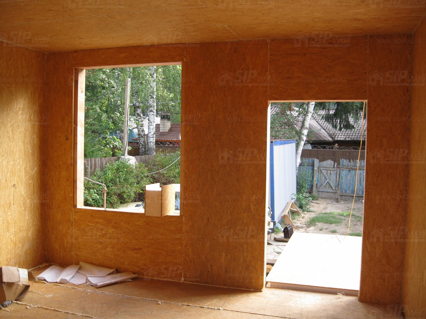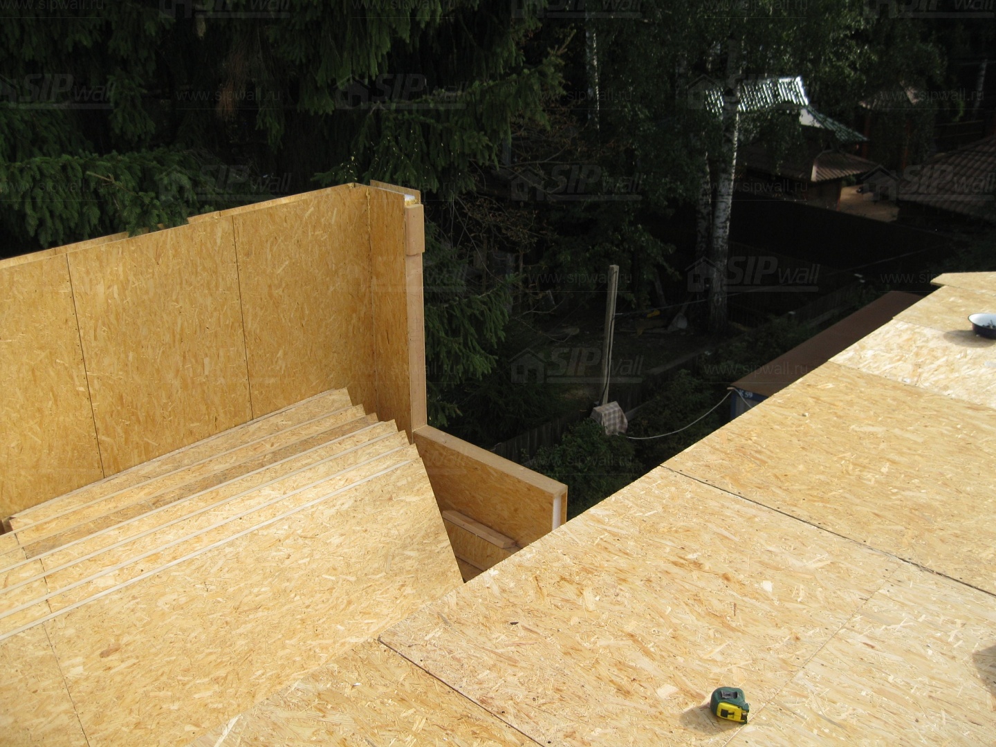 Все СИП панели SIPwall толщиной 224/174/124 мм (плиты OSB-3 толщиной 12 мм "Калевала" Россия и фасадный пенополистирол ПСБ-С 25 по ГОСТ 15588-14 толщиной 200/150/100 мм производства завода "PolarPlast", Россия) нарезаны и обрусованы сухим строганным брусом в соответствии с проектной документацией.