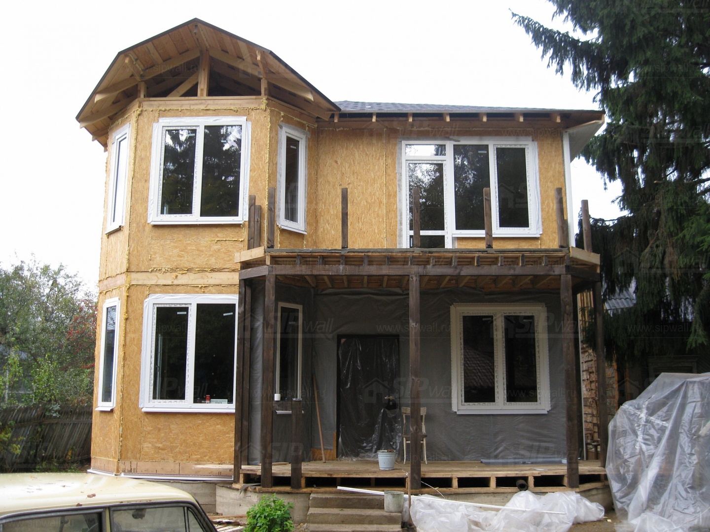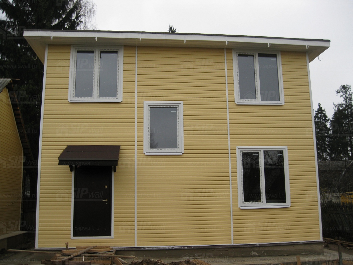 Домокомплект - изготовлен по проекту из СИП панелей произведенный по технологии SIPwall (ЭКОПАН) на собственном заводе расположенном в г. Шуя, Ивановской области. При изготовлении домокомплекта панельно каркасного дома используется только сухой строганный брус камерной сушки, обработанный огнебиозащитным составом.