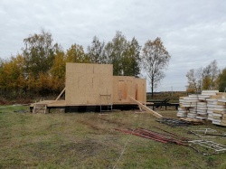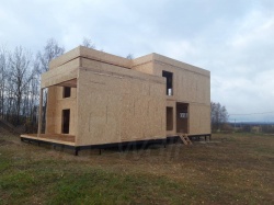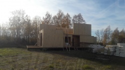 Домокомплект - изготовлен по проекту из СИП панелей произведенный по технологии SIPwall (ЭКОПАН) на собственном заводе расположенном в г. Шуя, Ивановской области. При изготовлении домокомплекта панельно каркасного дома используется только сухой строганный брус камерной сушки, обработанный огнебиозащитным составом.