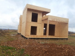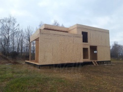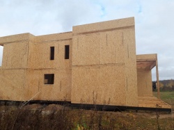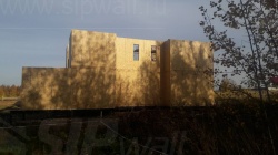 Все СИП панели SIPwall толщиной 224/174/124 мм (плиты OSB-3 толщиной 12 мм "Калевала" Россия и фасадный пенополистирол ПСБ-С 25 по ГОСТ 15588-14 толщиной 200/150/100 мм производства завода "PolarPlast", Россия) нарезаны и обрусованы сухим строганным брусом камерной сушки в соответствии с проектной документацией.