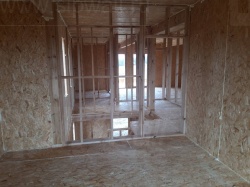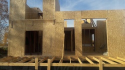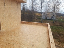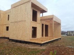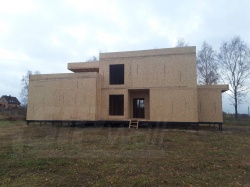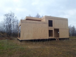 Комплектация домокомплекта: перекрытие на отметке +0.000 - СИП - 174У мм., несущие стены дома выполнены из СИП панелей 174 мм., внутренние несущие стены и внутренние не несущие перегородки выполнены выполнены по каркасной технологии. Перекрытие межэтажное - лаги с настилом ОСБ-22 мм.. Кровля - выполнена из СИП панелей 174У мм.