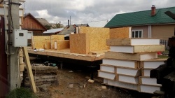 Комплектация домокомплекта: нулевое перекрытие -выполнены из СИП панелей 174 мм, несущие стены дома выполнены из СИП панелей 174 мм., внутренние не несущие перегородки выполнены выполнены из СИП панелей 124 мм.. Кровля - из СИП панелей - 224 мм производства компании СИПВОЛЛ.