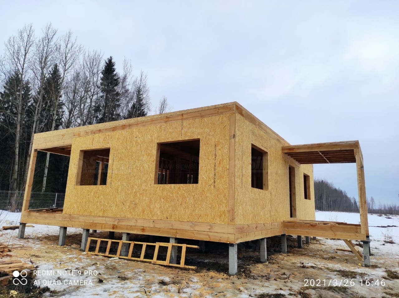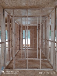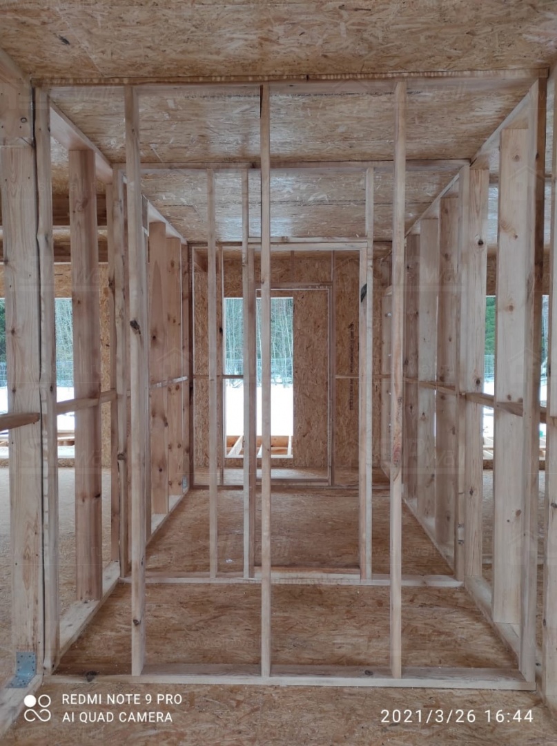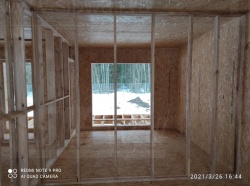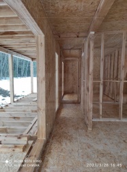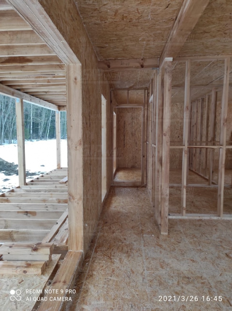 Все СИП панели SIPwall толщиной 224/174/124 мм (плиты OSB-3 толщиной 12 мм "Калевала" Россия и фасадный пенополистирол ППС-14 толщиной 200/150/100 мм производства, Россия) нарезаны и обрусованы сухим строганным брусом камерной сушки в соответствии с проектной документацией.