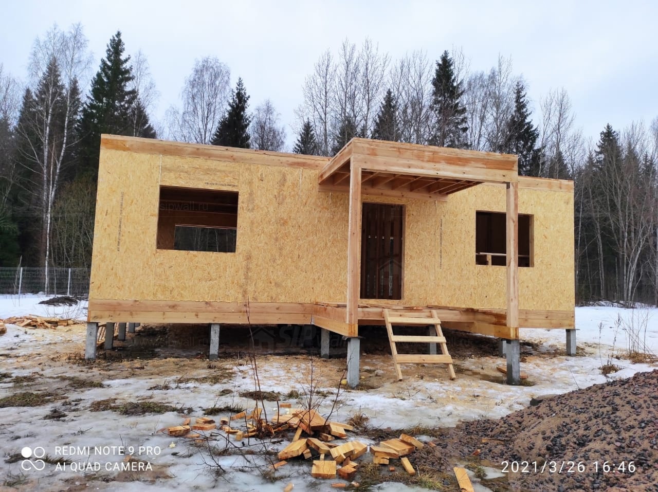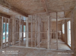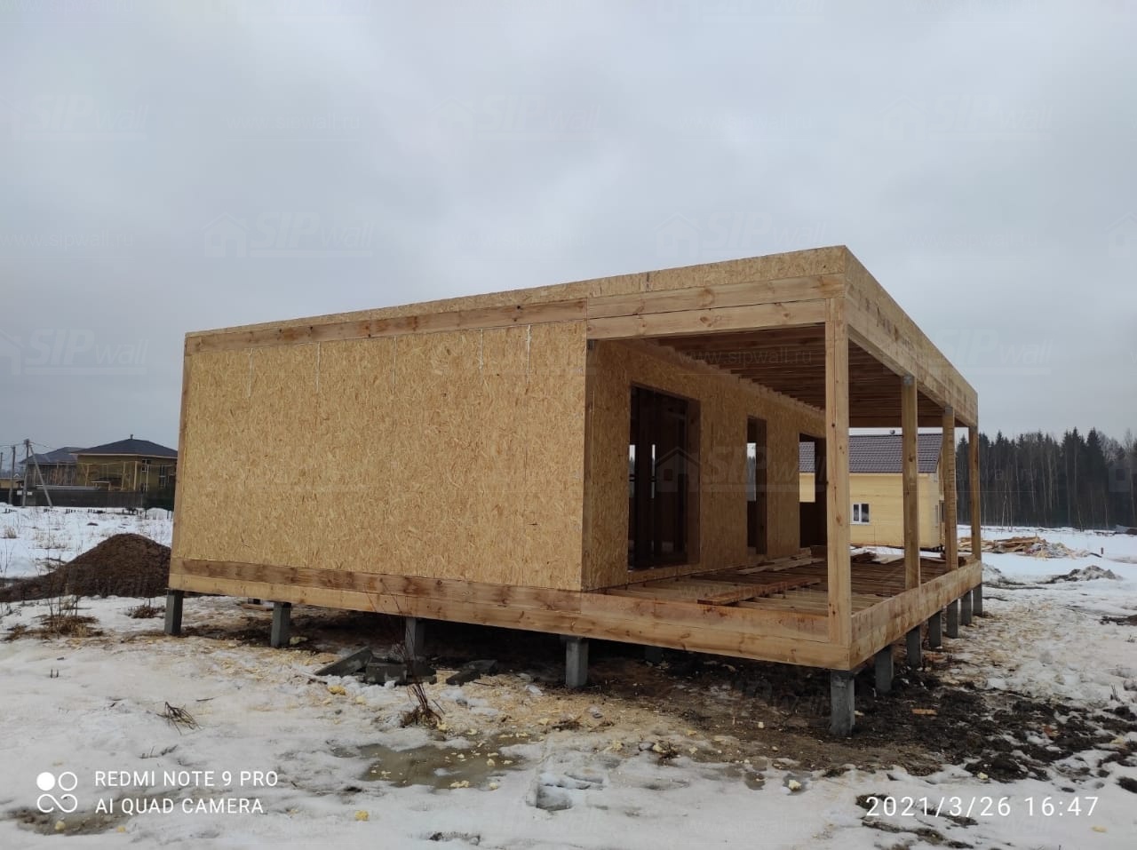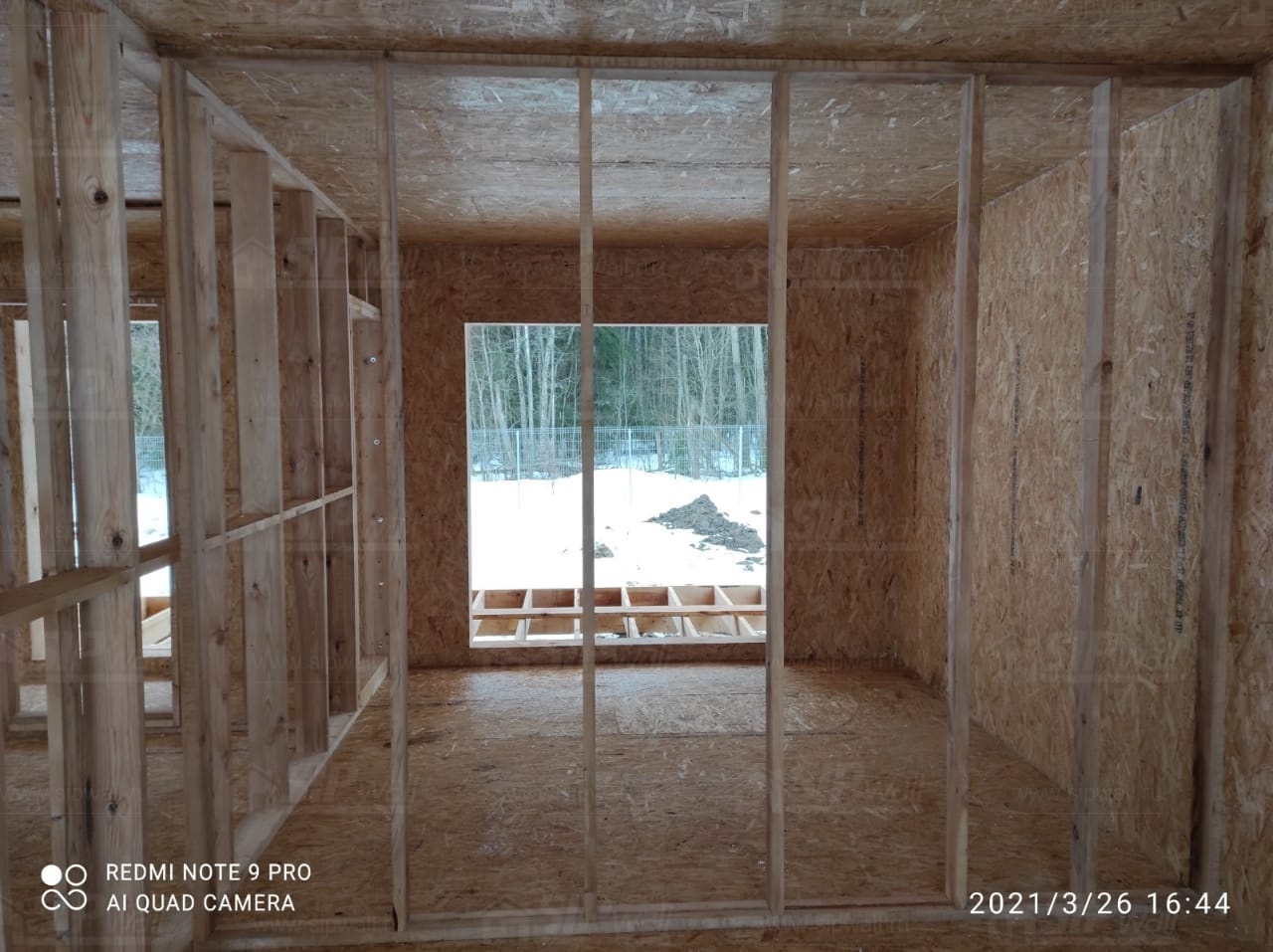 Все СИП панели SIPwall толщиной 224/174/124 мм (плиты OSB-3 толщиной 12 мм "Калевала" Россия и фасадный пенополистирол ППС-14 толщиной 200/150/100 мм производства, Россия) нарезаны и обрусованы сухим строганным брусом камерной сушки в соответствии с проектной документацией.