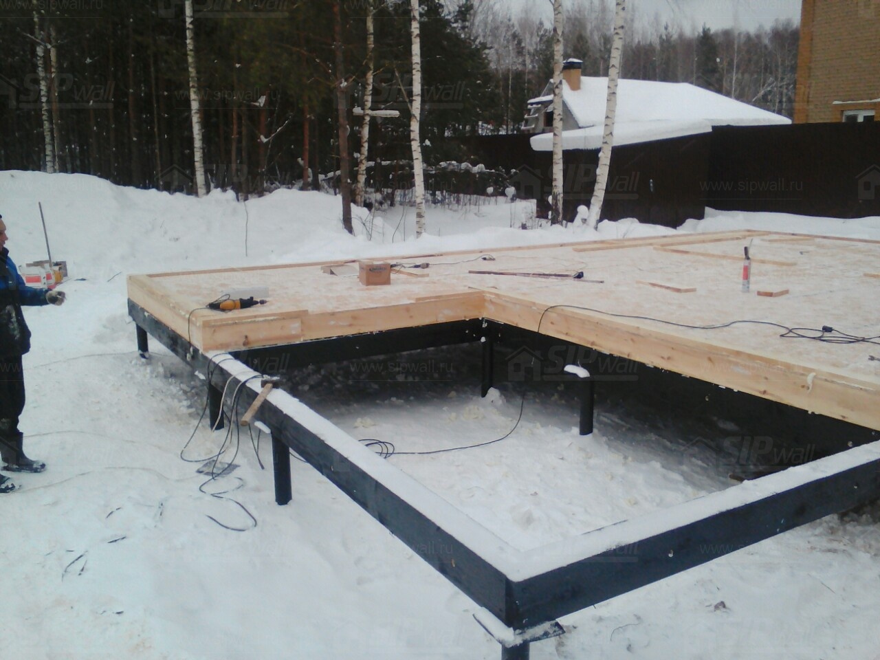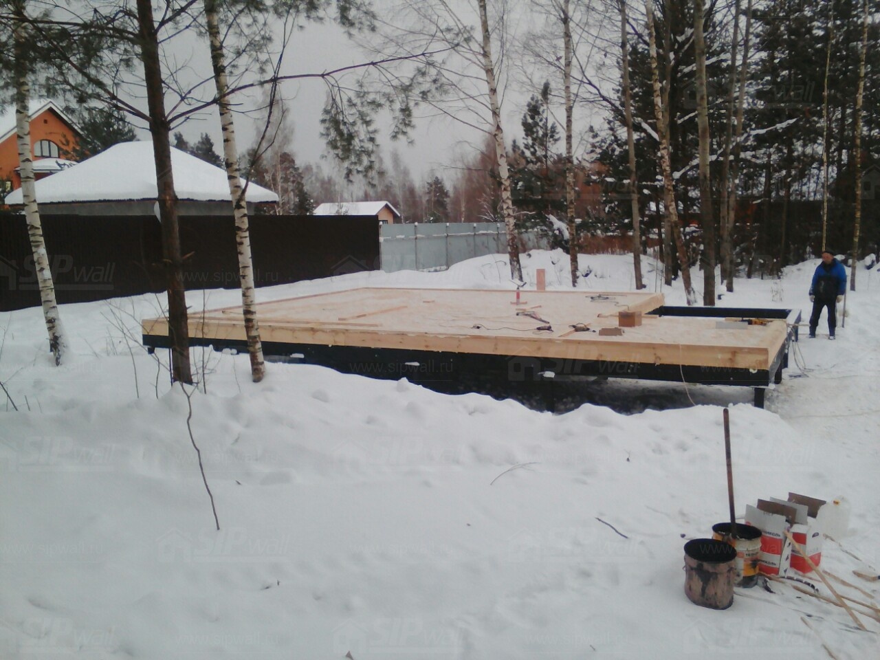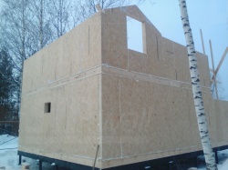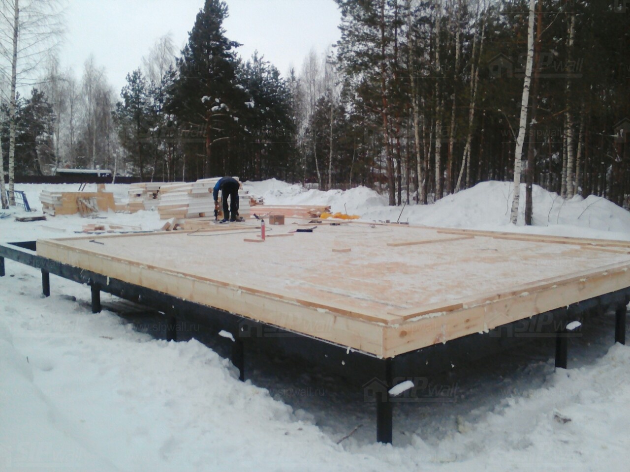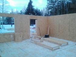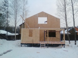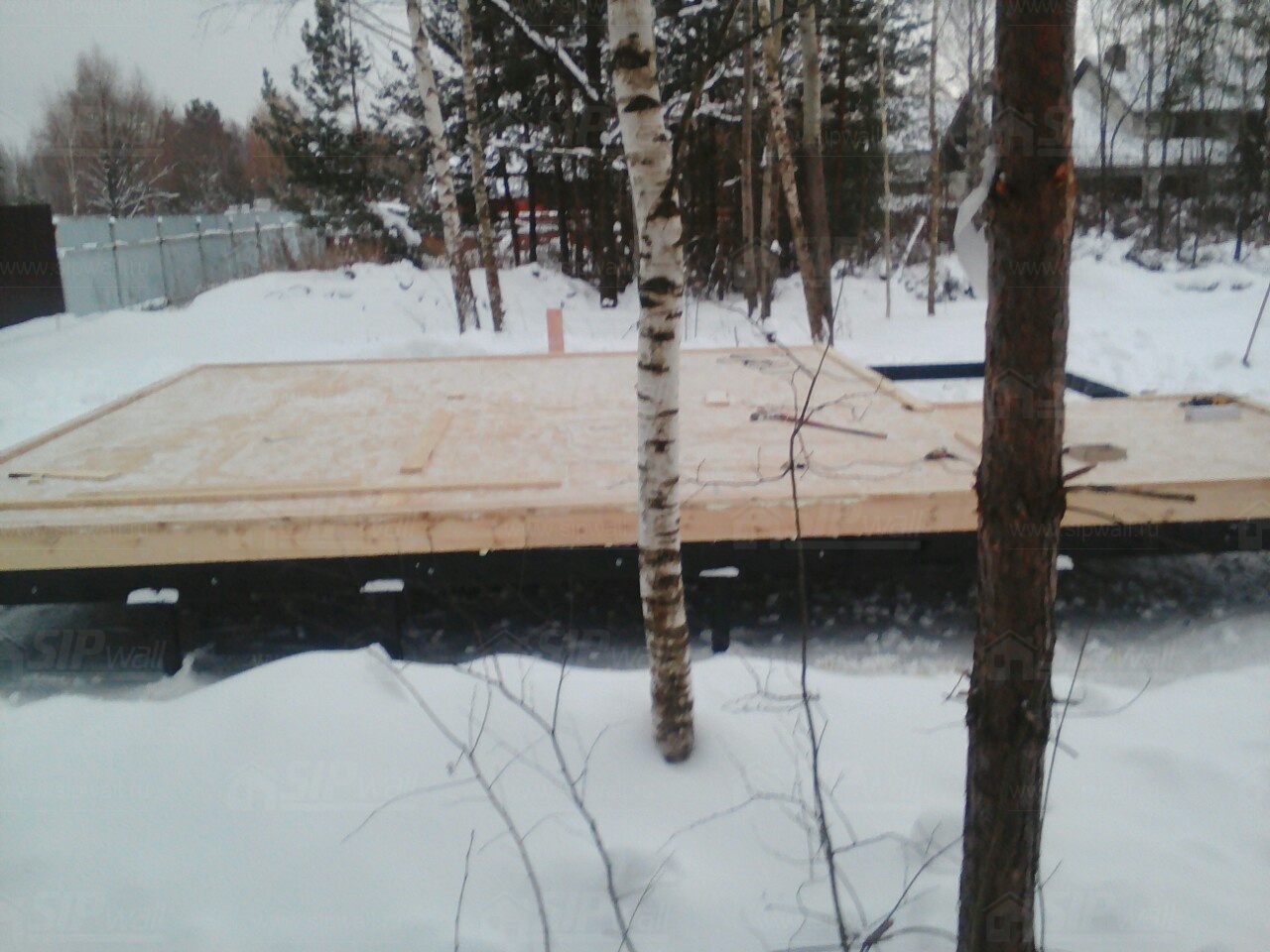 Комплектация домокомплекта: перекрытие на отметке +0.000 - СИП - 224У мм., несущие стены дома выполнены из СИП панелей 174 мм., внутренние несущие стены выполнены по каркасной технологии. Межэтажное перекрытие: деревянные двутавровые балки ДКД-241F с настилом OSB-3 толщиной 22 мм. Кровля - выполнена из СИП панелей 174У мм.