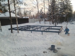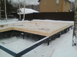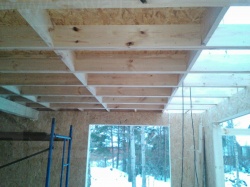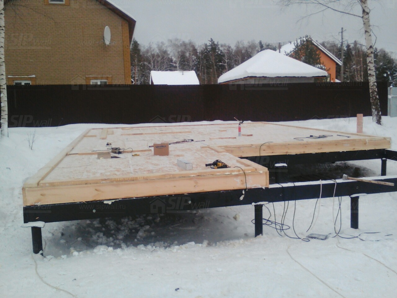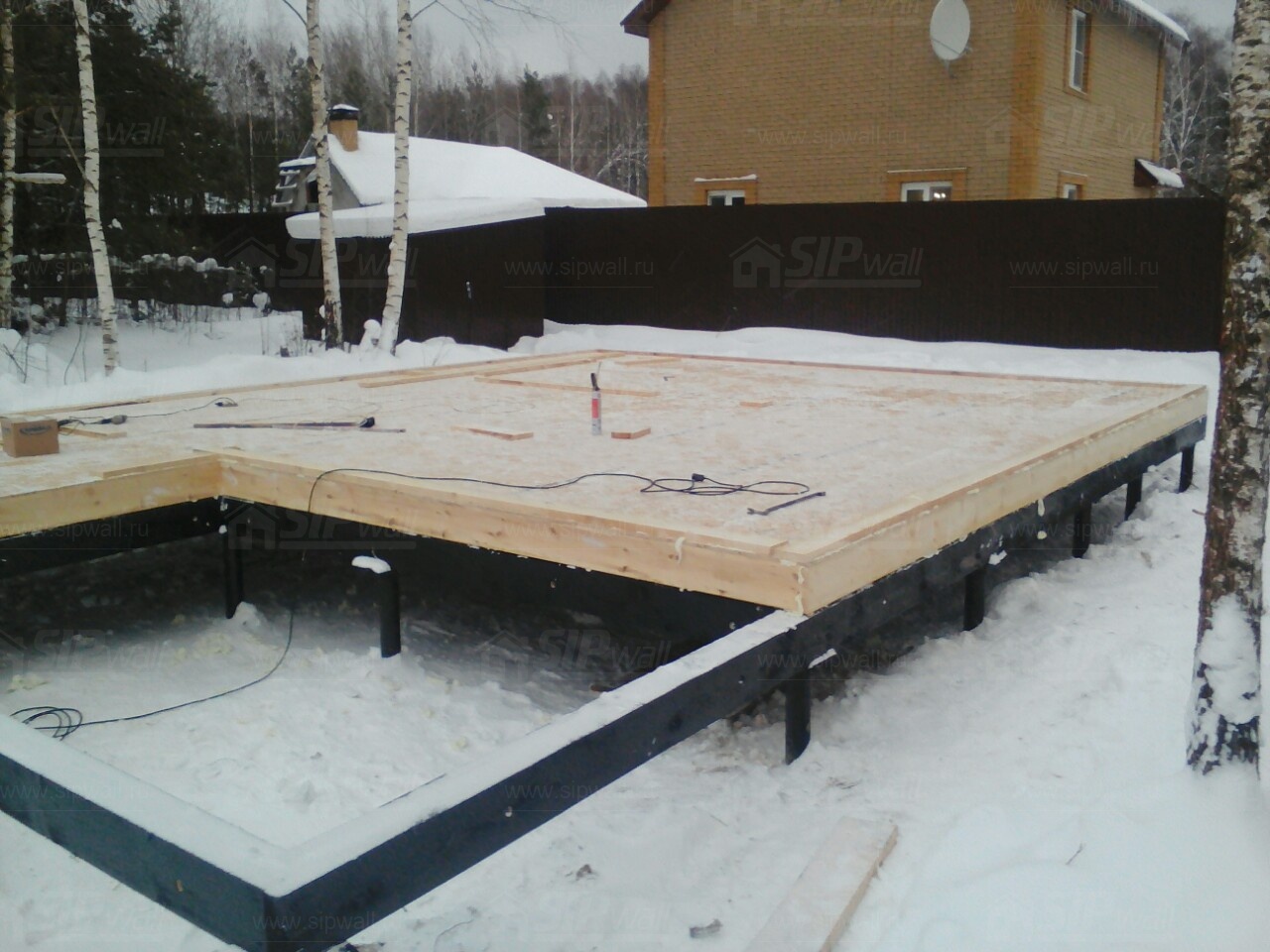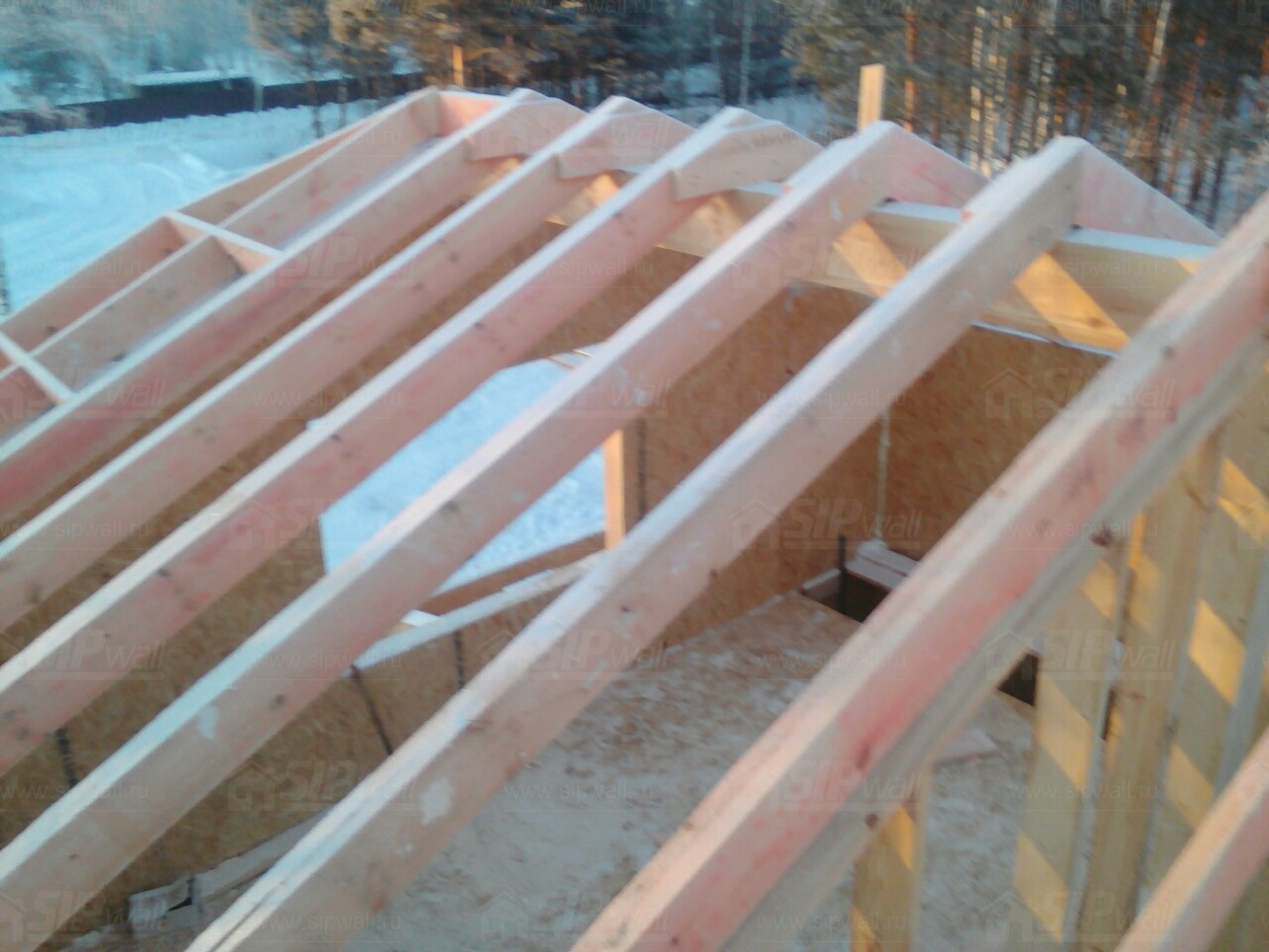 Комплектация домокомплекта: перекрытие на отметке +0.000 - СИП - 224У мм., несущие стены дома выполнены из СИП панелей 174 мм., внутренние несущие стены выполнены по каркасной технологии. Межэтажное перекрытие: деревянные двутавровые балки ДКД-241F с настилом OSB-3 толщиной 22 мм. Кровля - выполнена из СИП панелей 174У мм.