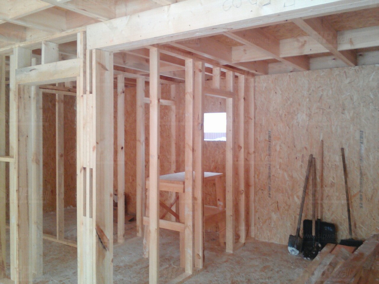 Все СИП панели SIPwall толщиной 224/174/124 мм (плиты OSB-3 толщиной 12 мм "Калевала" Россия и фасадный пенополистирол ПСБ-С 25Ф по ТУ 22.21.41.110−004 – 44755395 −2017 толщиной 200/150/100 мм производства завода "PolarPlast", Россия) нарезаны и обрусованы сухим строганным брусом камерной сушки в соответствии с проектной документацией.