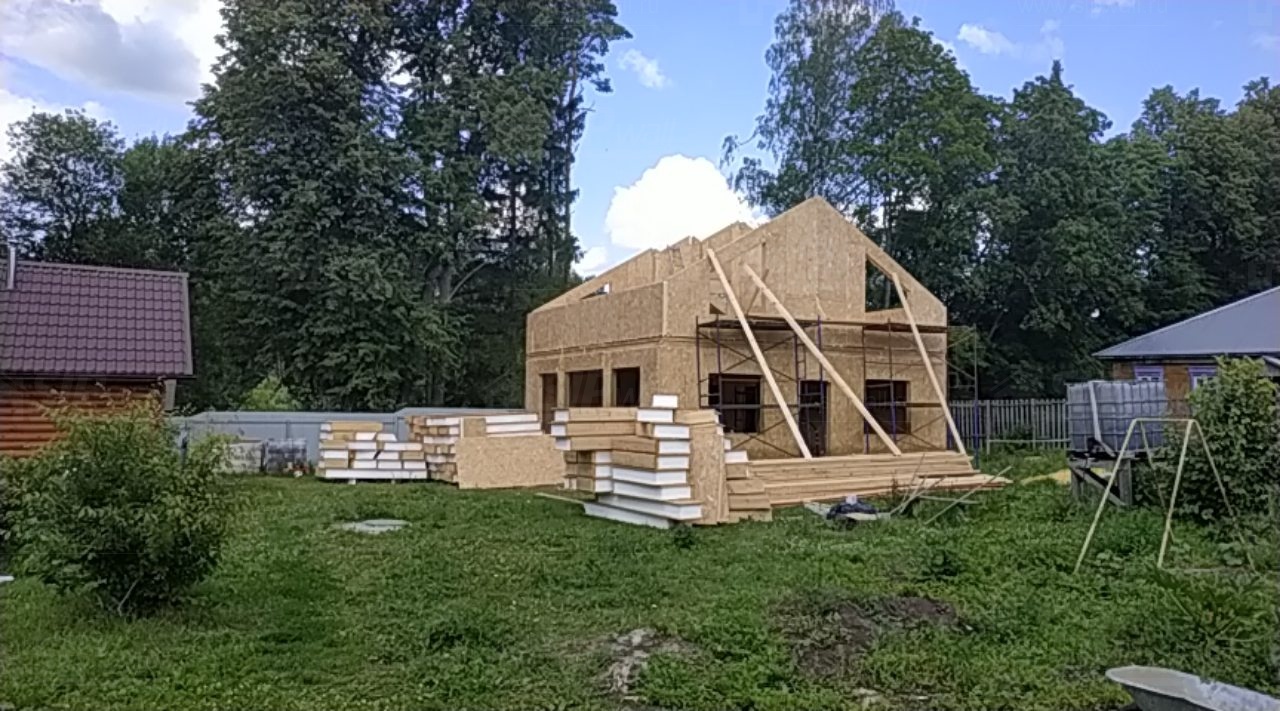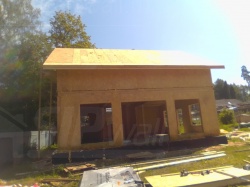 Домокомплект - изготовлен по проекту из СИП панелей произведенный по технологии SIPwall (ЭКОПАН) на собственном заводе расположенном в г. Шуя, Ивановской области. При изготовлении домокомплекта панельно каркасного дома используется только сухой строганный брус камерной сушки, обработанный огнебиозащитным составом.