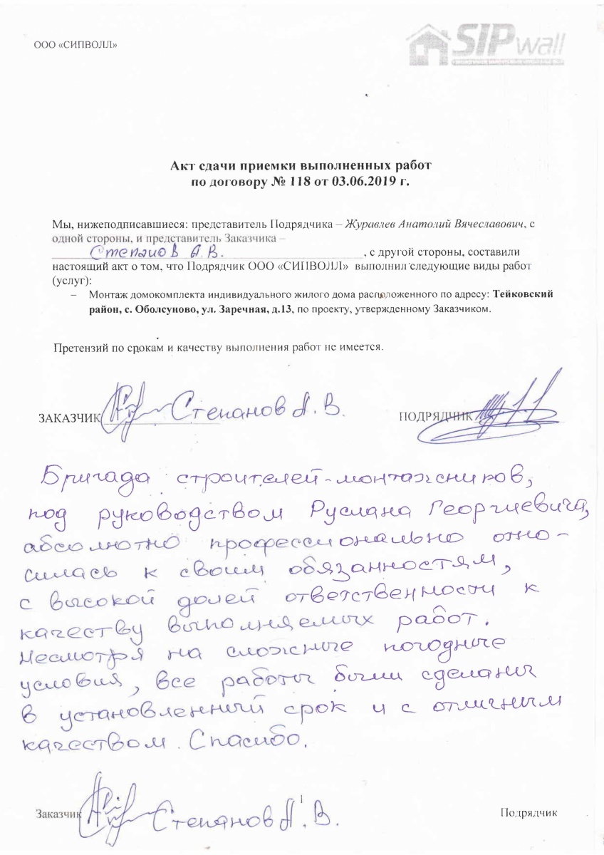 На выходе с завода «СИПВОЛЛ» домокомплект имеет 99-% ную готовность.