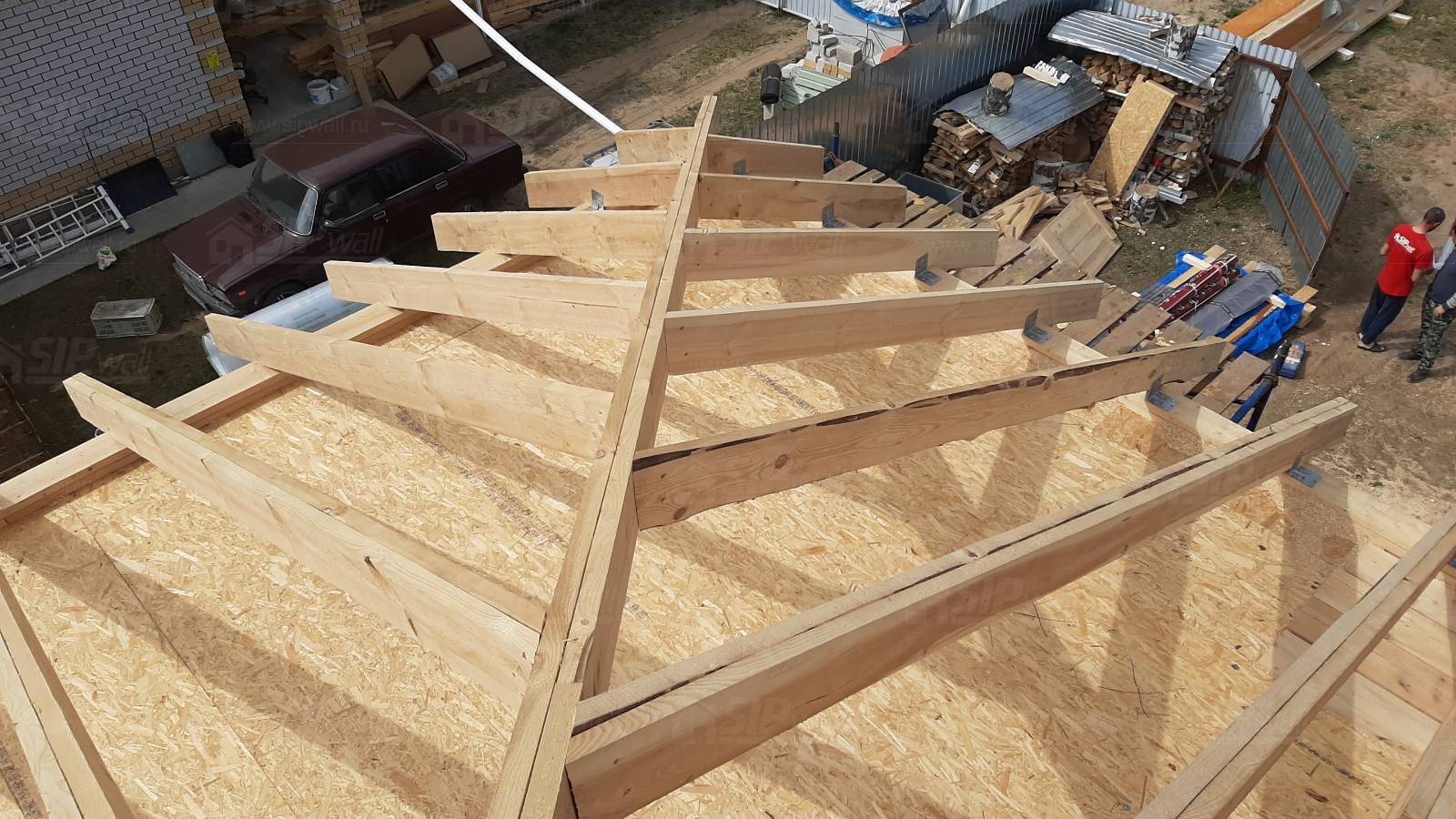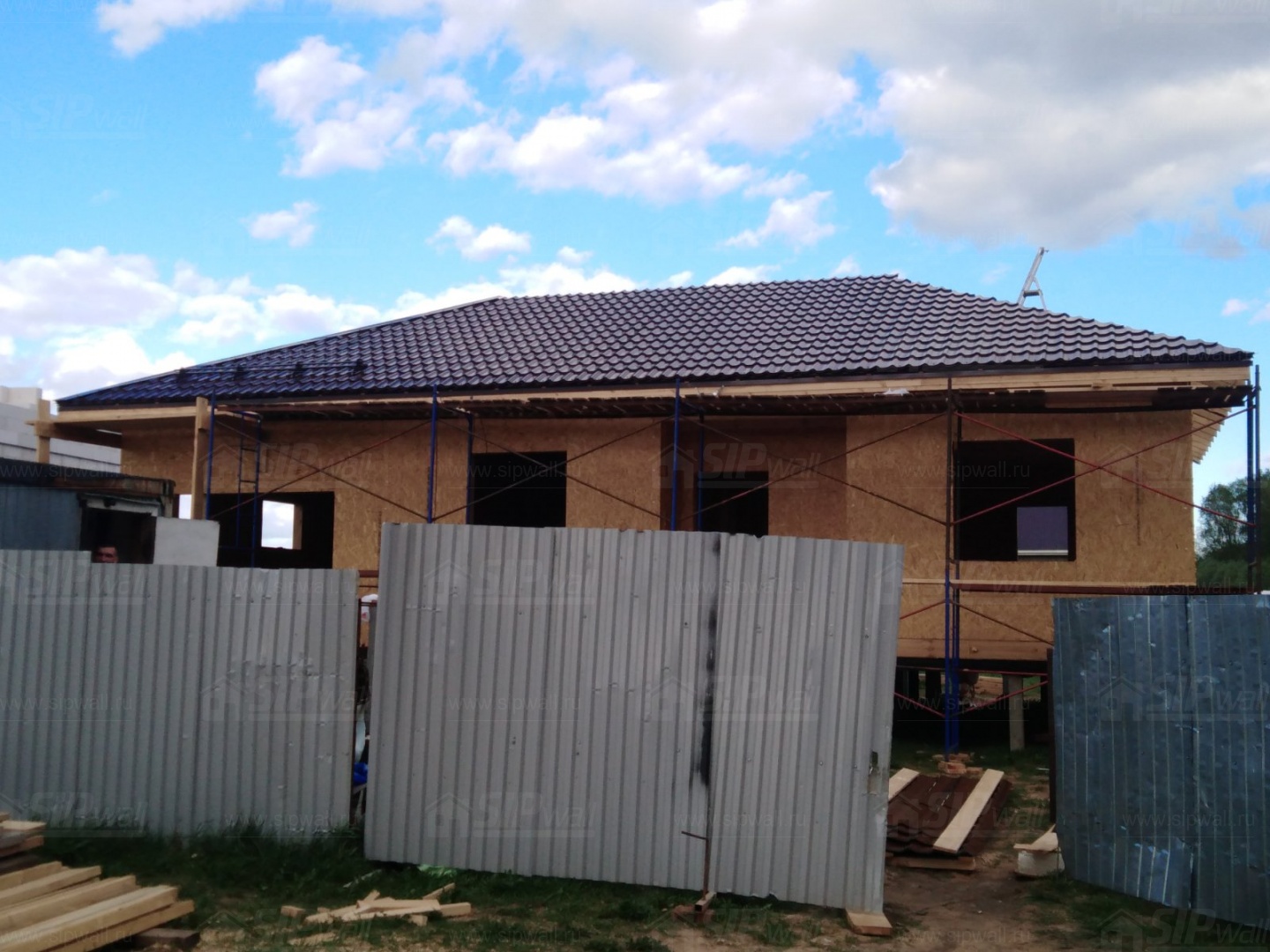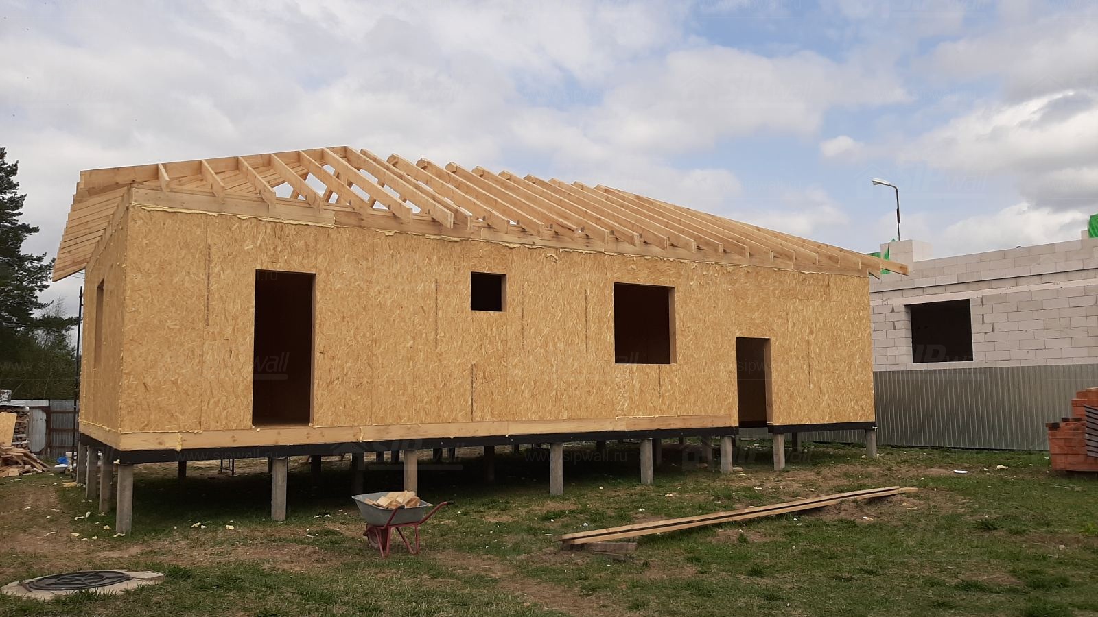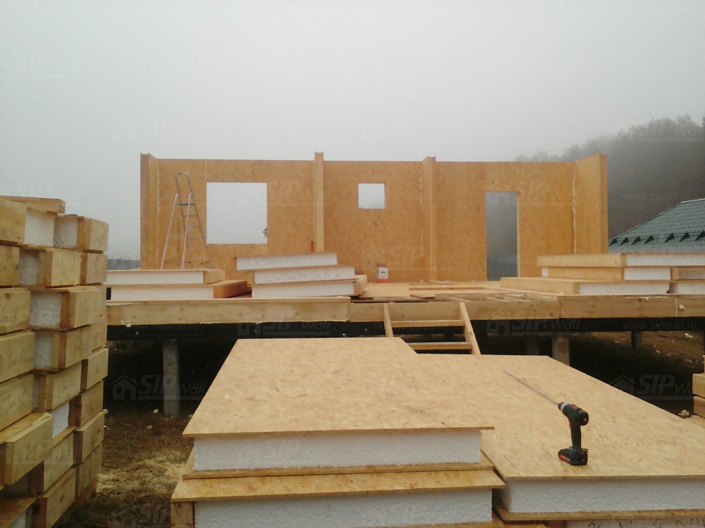 Все СИП панели SIPwall толщиной 224/174/124 мм (плиты OSB-3 толщиной 12 мм "Калевала" Россия и фасадный пенополистирол ППС-14 толщиной 200/150/100 мм производства, Россия) нарезаны и обрусованы сухим строганным брусом камерной сушки в соответствии с проектной документацией.