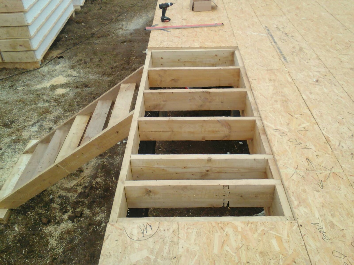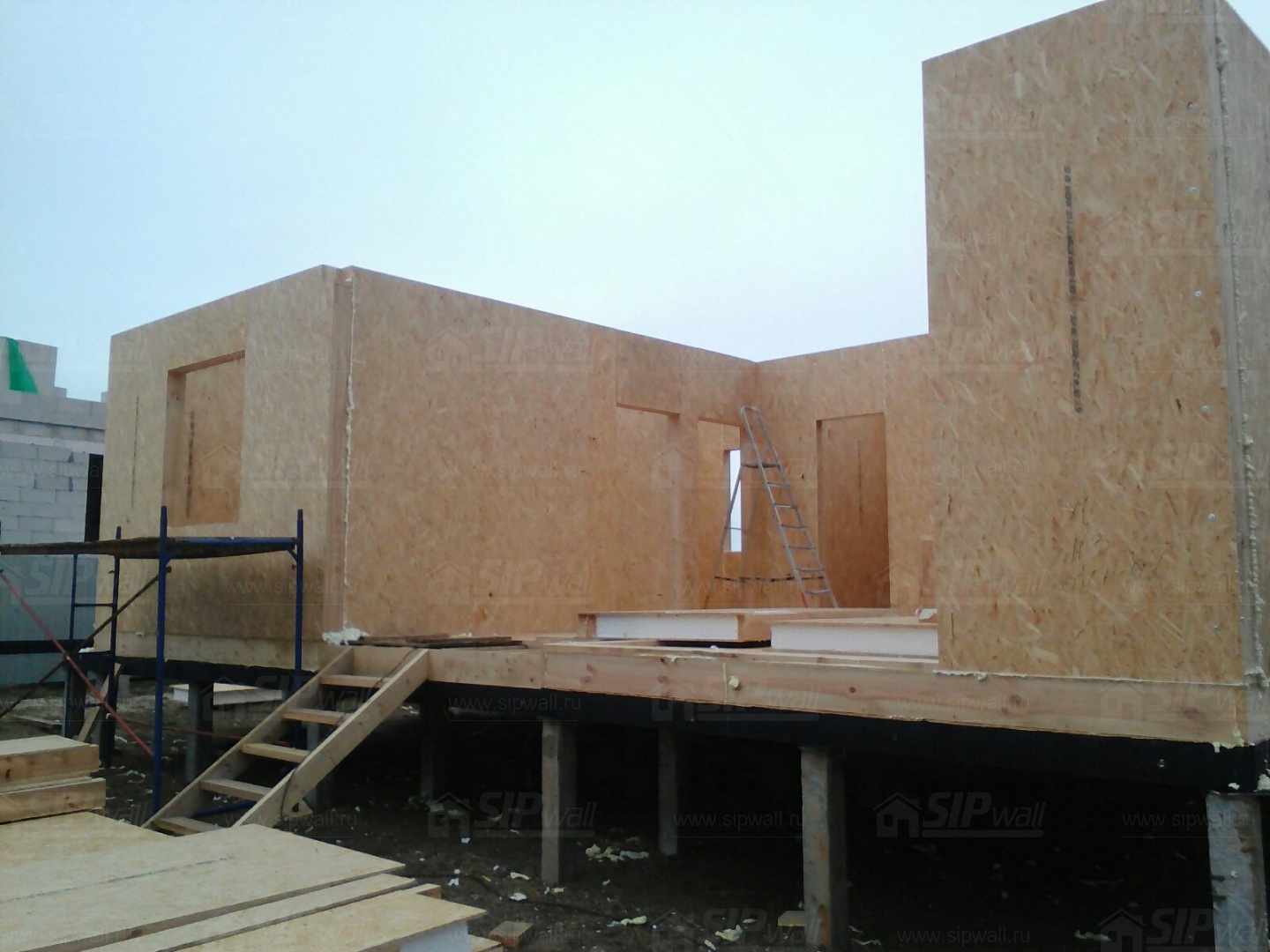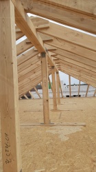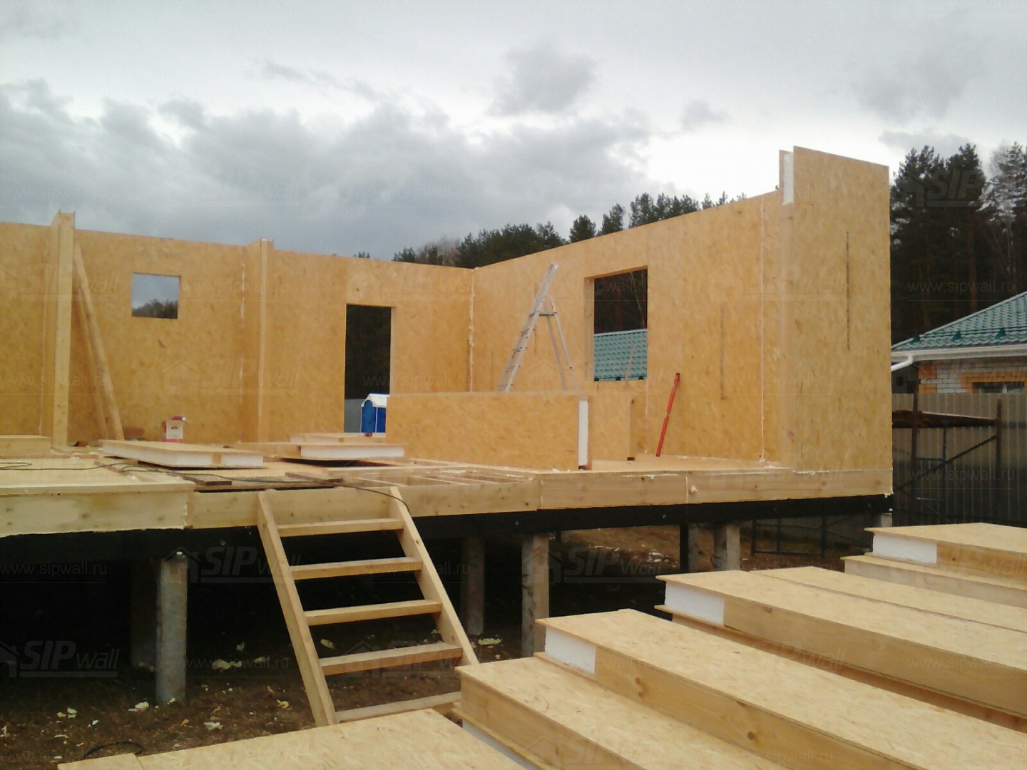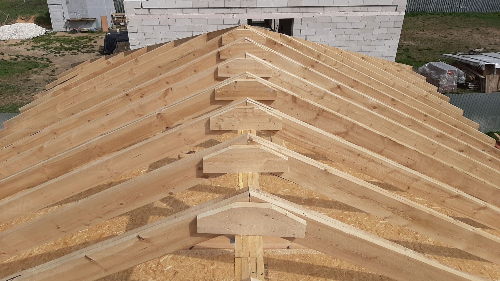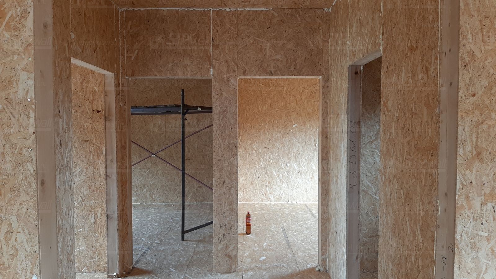 Все СИП панели SIPwall толщиной 224/174/124 мм (плиты OSB-3 толщиной 12 мм "Калевала" Россия и фасадный пенополистирол ППС-14 толщиной 200/150/100 мм производства, Россия) нарезаны и обрусованы сухим строганным брусом камерной сушки в соответствии с проектной документацией.