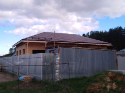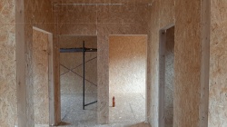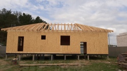 Комплектация домокомплекта: перекрытие на отметке +0.000 - СИП - 224У мм., несущие стены дома выполнены из СИП панелей 174 мм, внутренние несущие сетны выполнены из СИП панелей 174 мм и не несущие стены выполнены из СИП панелей 124 мм. Кровля - стропильная система.