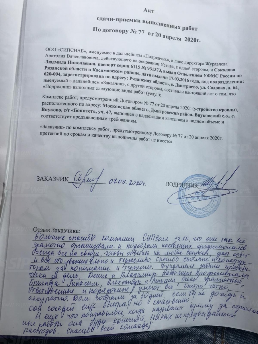 На выходе с завода «СИПВОЛЛ» домокомплект имеет 99-% ную готовность.