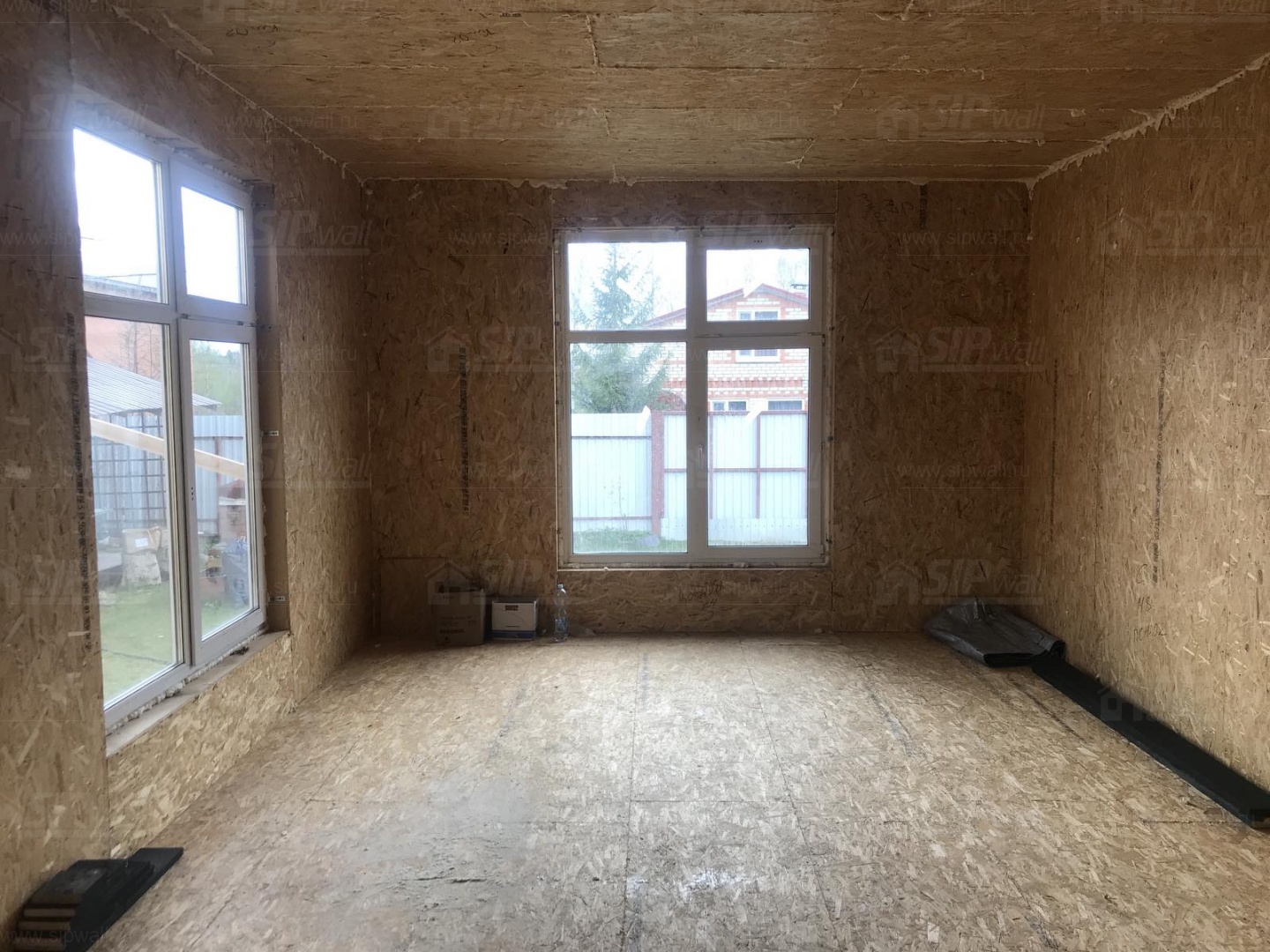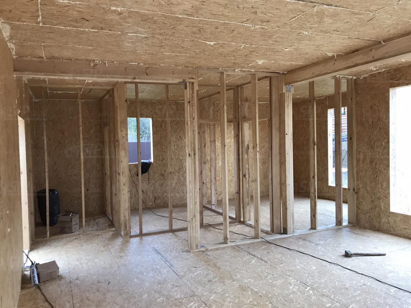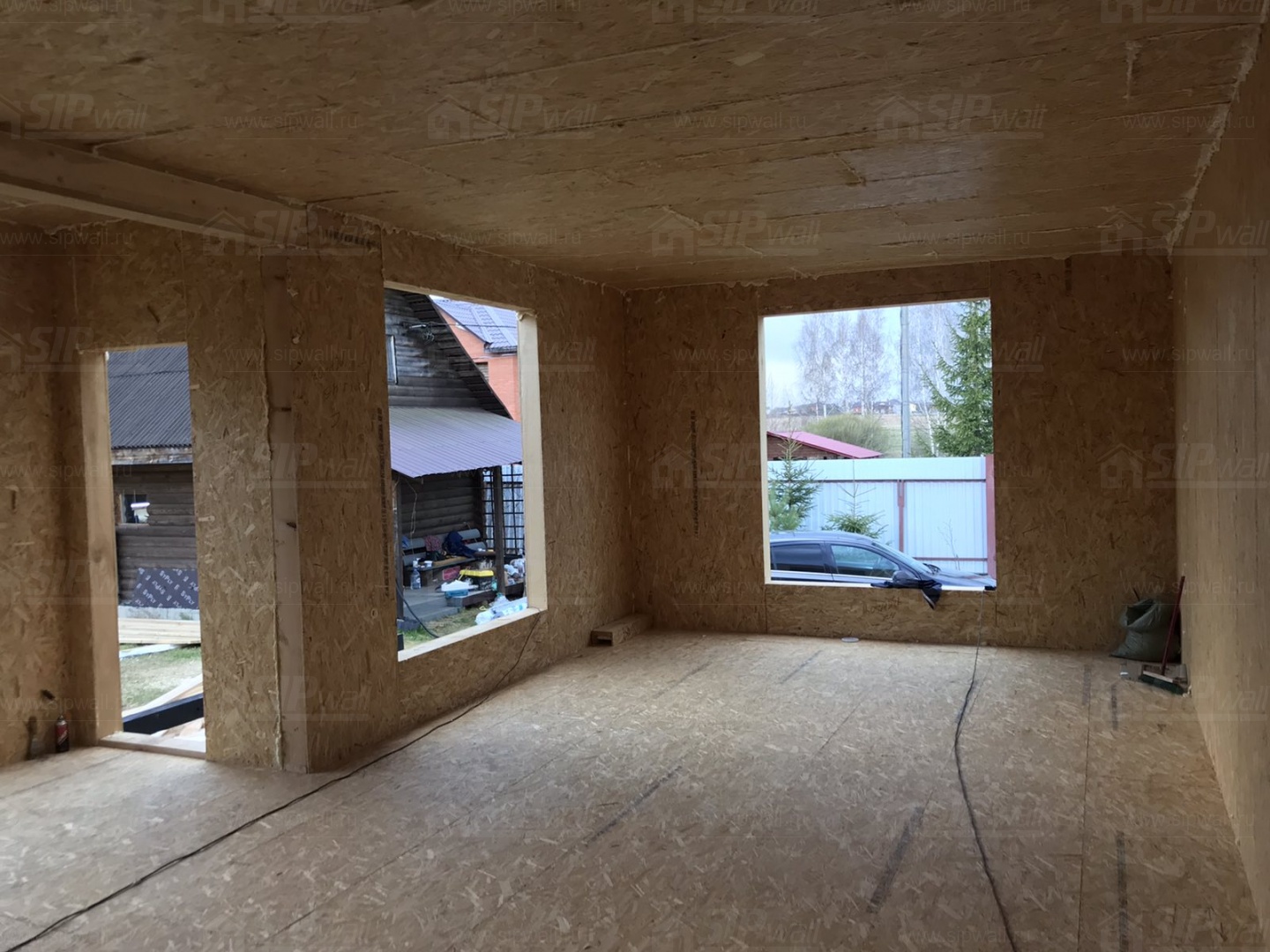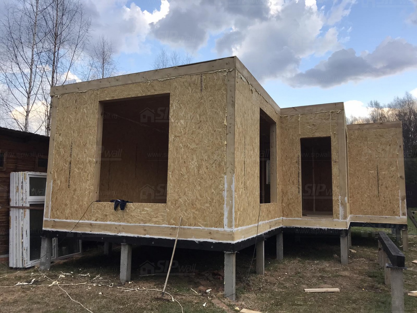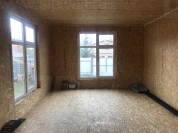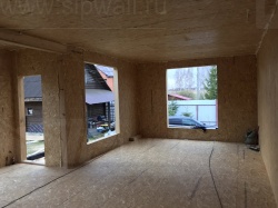 Все СИП панели SIPwall толщиной 224/174/124 мм (плиты OSB-3 толщиной 12 мм "Калевала" Россия и фасадный пенополистирол ППС-14 толщиной 200/150/100 мм производства, Россия) нарезаны и обрусованы сухим строганным брусом камерной сушки в соответствии с проектной документацией.