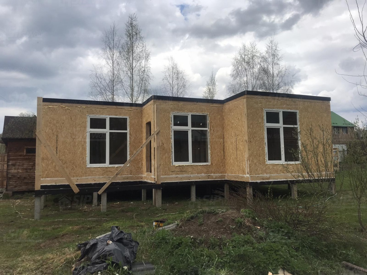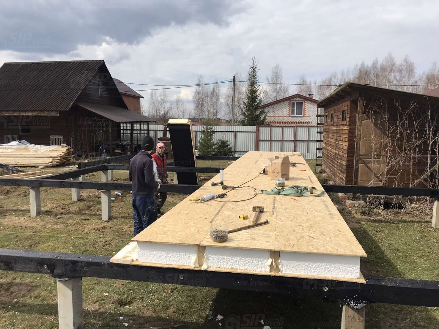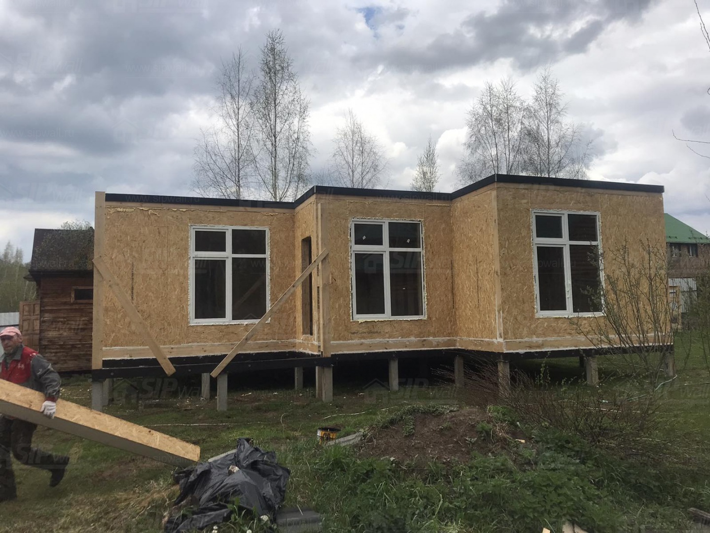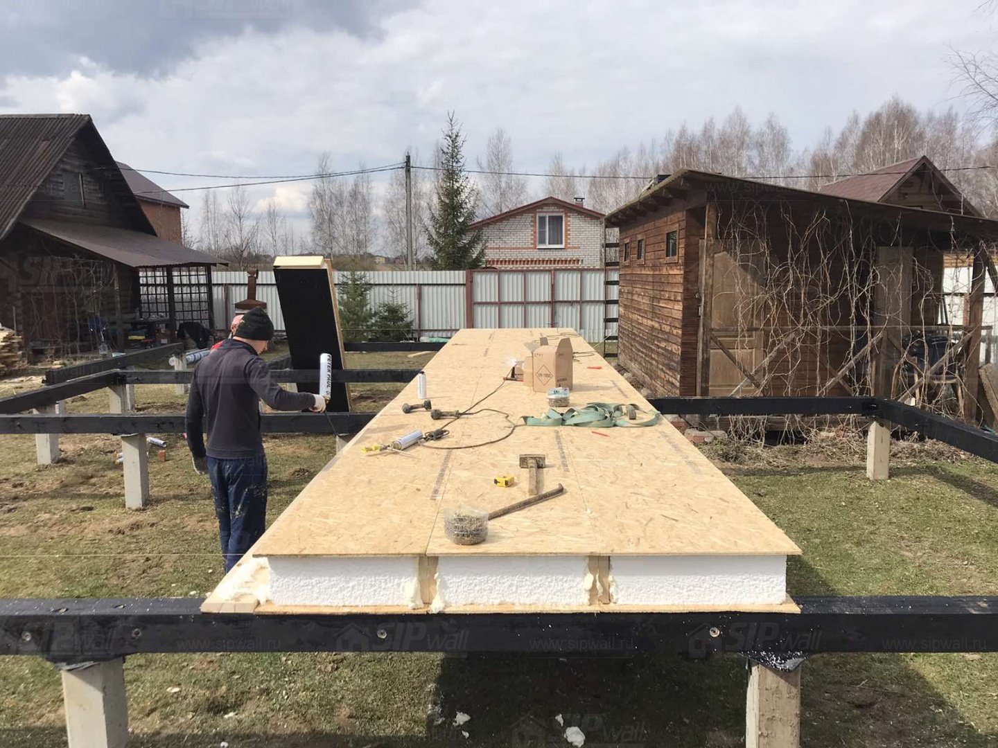 Все СИП панели SIPwall толщиной 224/174/124 мм (плиты OSB-3 толщиной 12 мм "Калевала" Россия и фасадный пенополистирол ППС-14 толщиной 200/150/100 мм производства, Россия) нарезаны и обрусованы сухим строганным брусом камерной сушки в соответствии с проектной документацией.