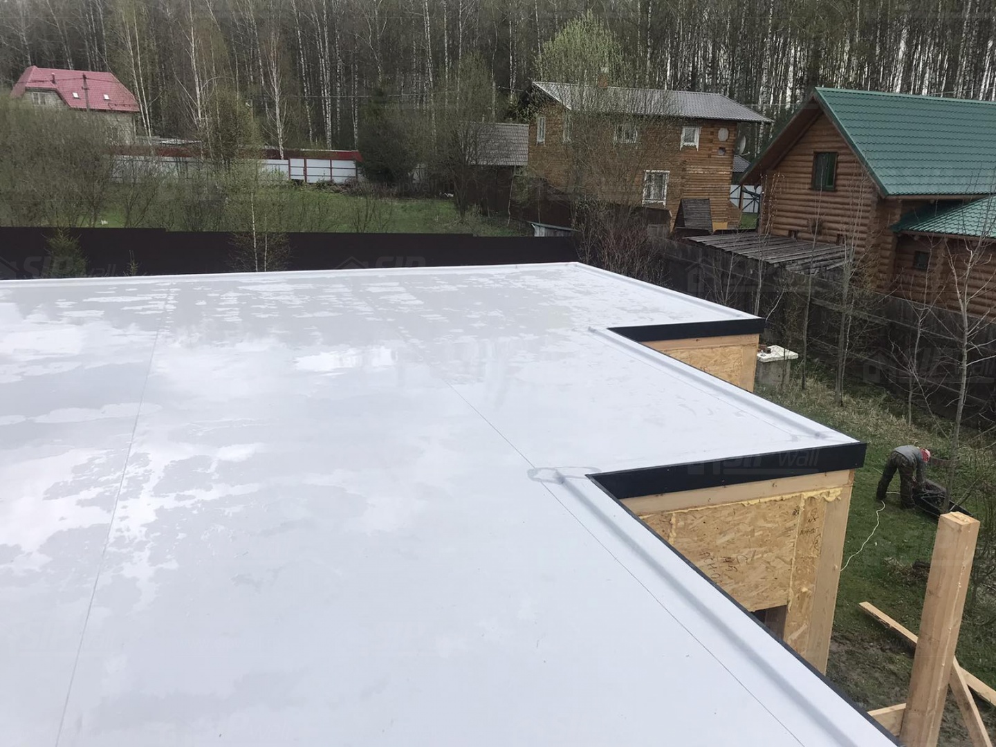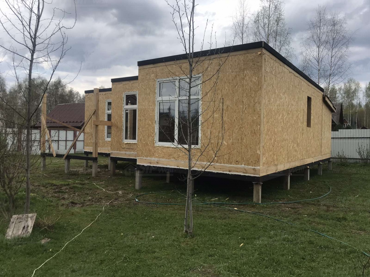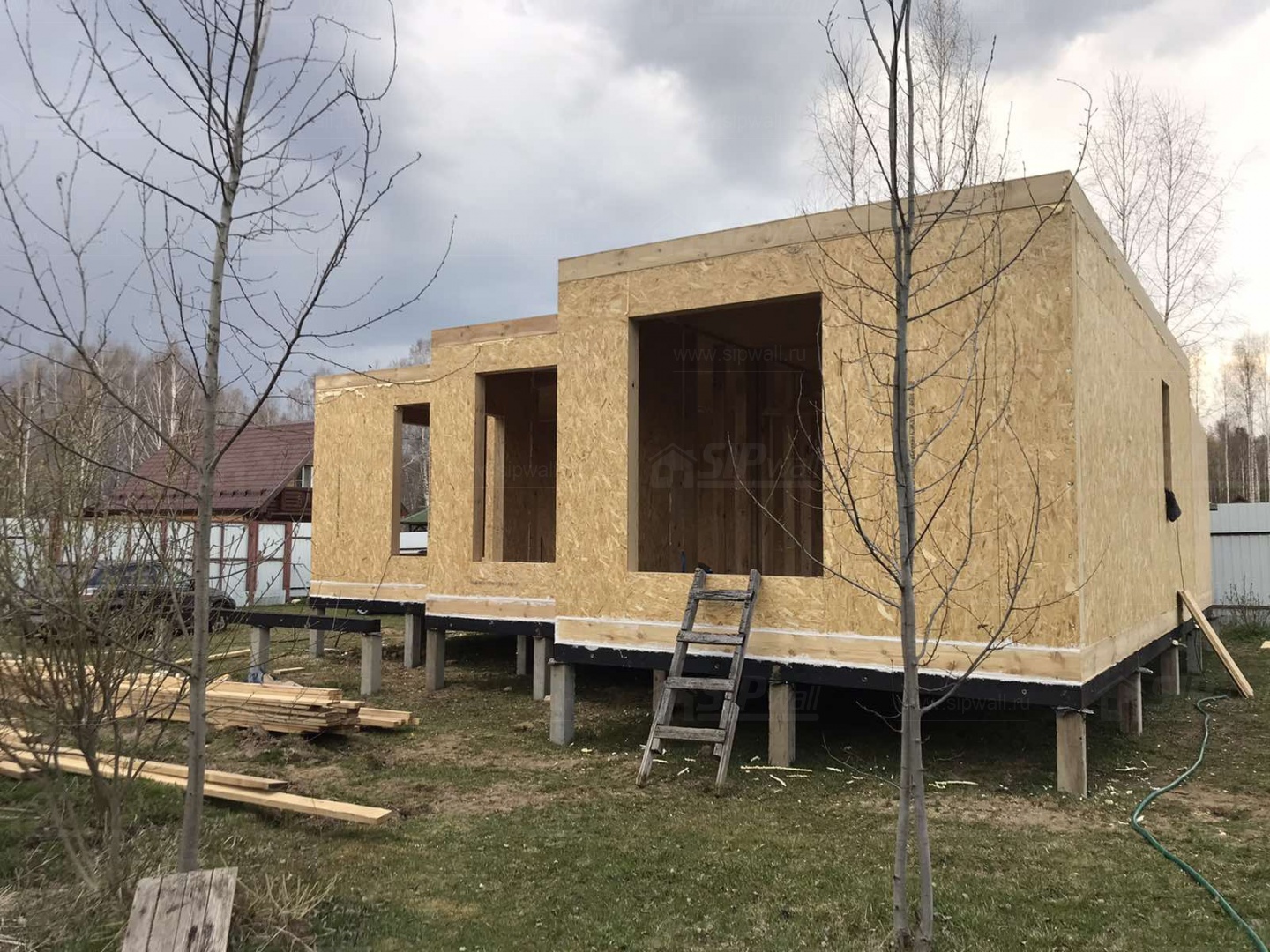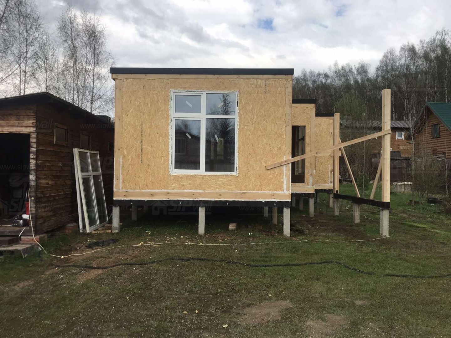 Все СИП панели SIPwall толщиной 224/174/124 мм (плиты OSB-3 толщиной 12 мм "Калевала" Россия и фасадный пенополистирол ППС-14 толщиной 200/150/100 мм производства, Россия) нарезаны и обрусованы сухим строганным брусом камерной сушки в соответствии с проектной документацией.