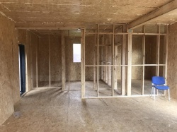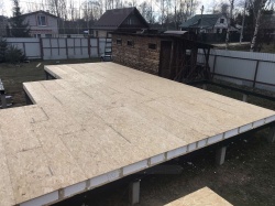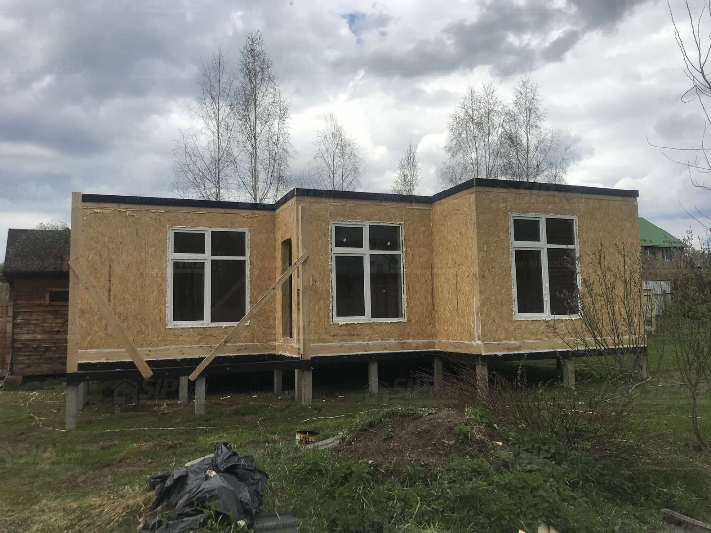 Комплектация домокомплекта: перекрытие на отметке +0.000 - СИП - 224У мм., несущие стены дома выполнены из СИП панелей 174 мм, внутренние несущие стены и не несущие стены выполнены по каркасной технологии. Кровля - СИП 224У.