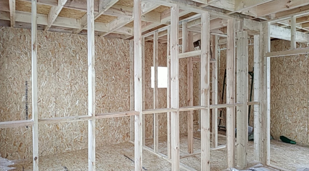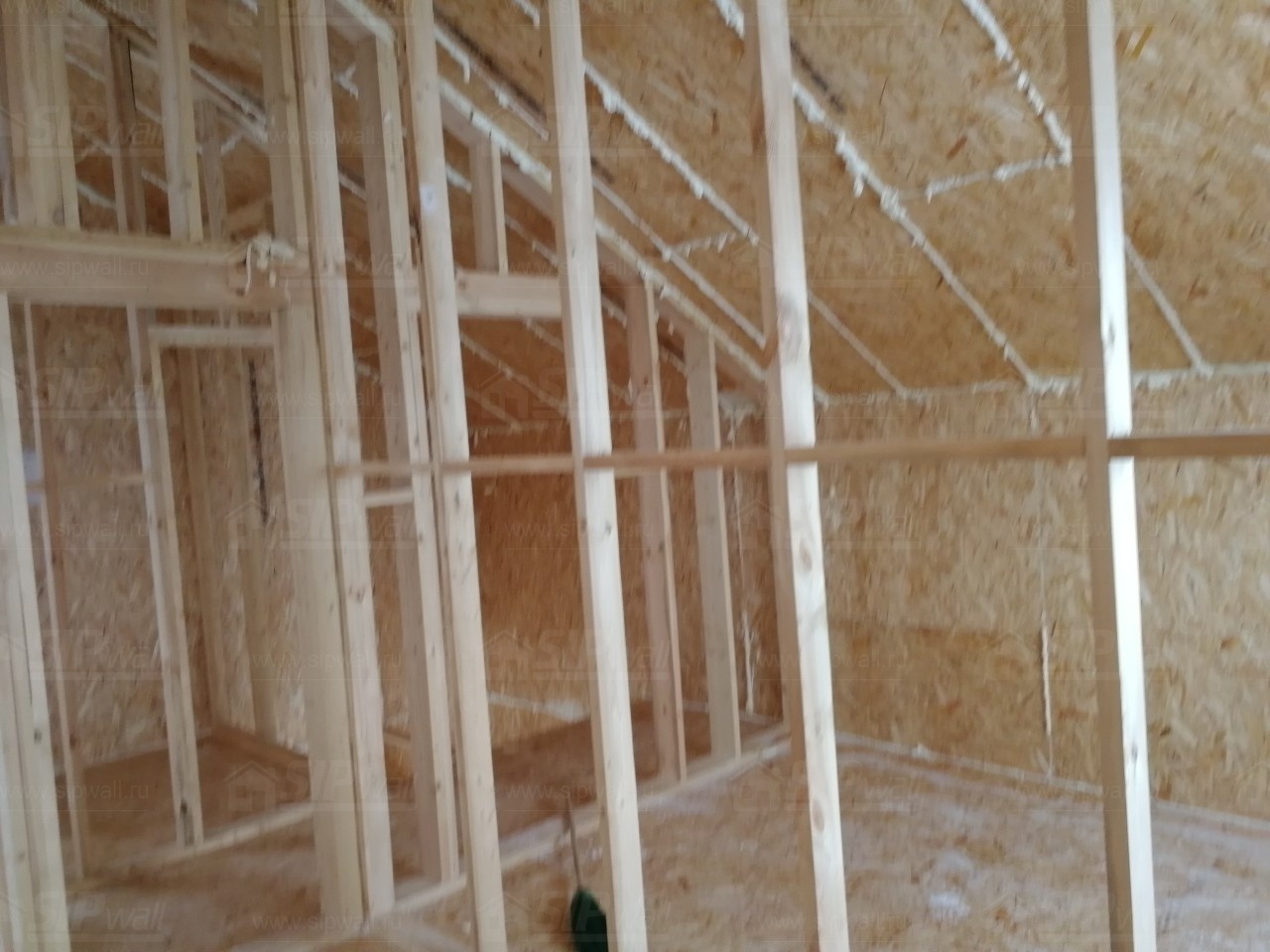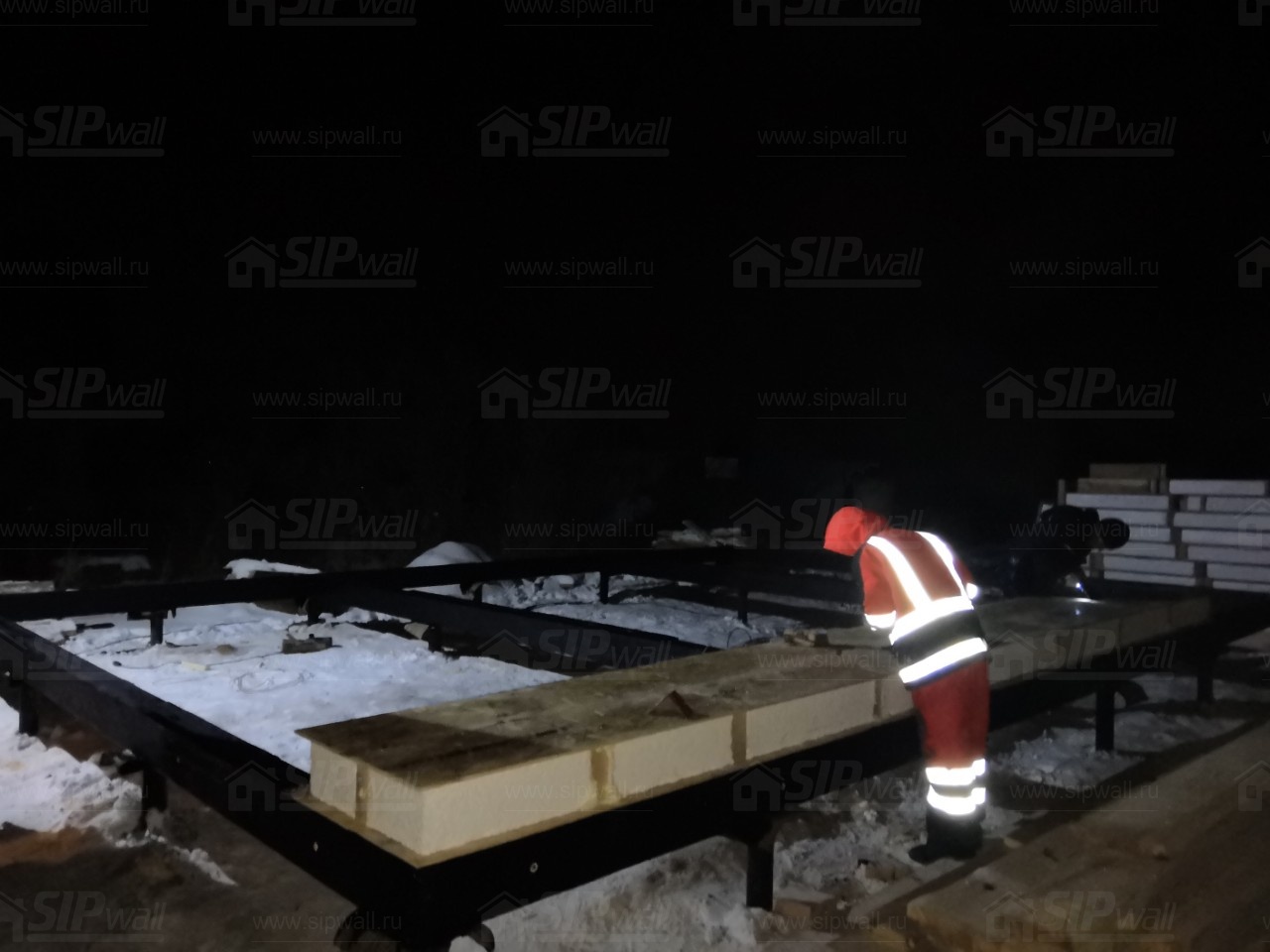 Все СИП панели SIPwall толщиной 224/174/124 мм (плиты OSB-3 толщиной 12 мм "Калевала" Россия и фасадный пенополистирол ПСБ-С 25Ф по ТУ 22.21.41.110−004 – 44755395 −2017 толщиной 200/150/100 мм производства завода "PolarPlast", Россия) нарезаны и обрусованы сухим строганным брусом камерной сушки в соответствии с проектной документацией.