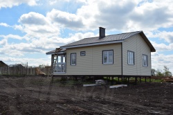 Выполнены работы: устройство винтового фундамента, изготовление и монтаж домокомплекта.