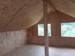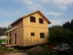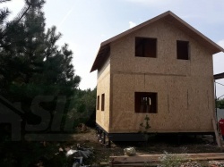 Комплектация домокомплекта: перекрытие на отметке +0.000 - СИП - 174У мм., несущие стены дома выполнены из СИП панелей 174 мм., внутренние несущие стены и внутренние не несущие перегородки выполнены по каркасной технологии. Перекрытие межэтажное - выполнено по каркасной технологии. Кровля - выполнена из СИП панелей 174У мм.