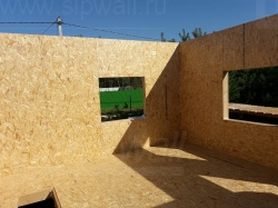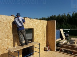 Все СИП панели SIPwall толщиной 224/174/124 мм (плиты OSB-3 толщиной 12 мм "Калевала" Россия и фасадный пенополистирол ПСБ-С 25 по ГОСТ 15588-14 толщиной 200/150/100 мм производства завода "PolarPlast", Россия) нарезаны и обрусованы сухим строганным брусом камерной сушки в соответствии с проектной документацией.