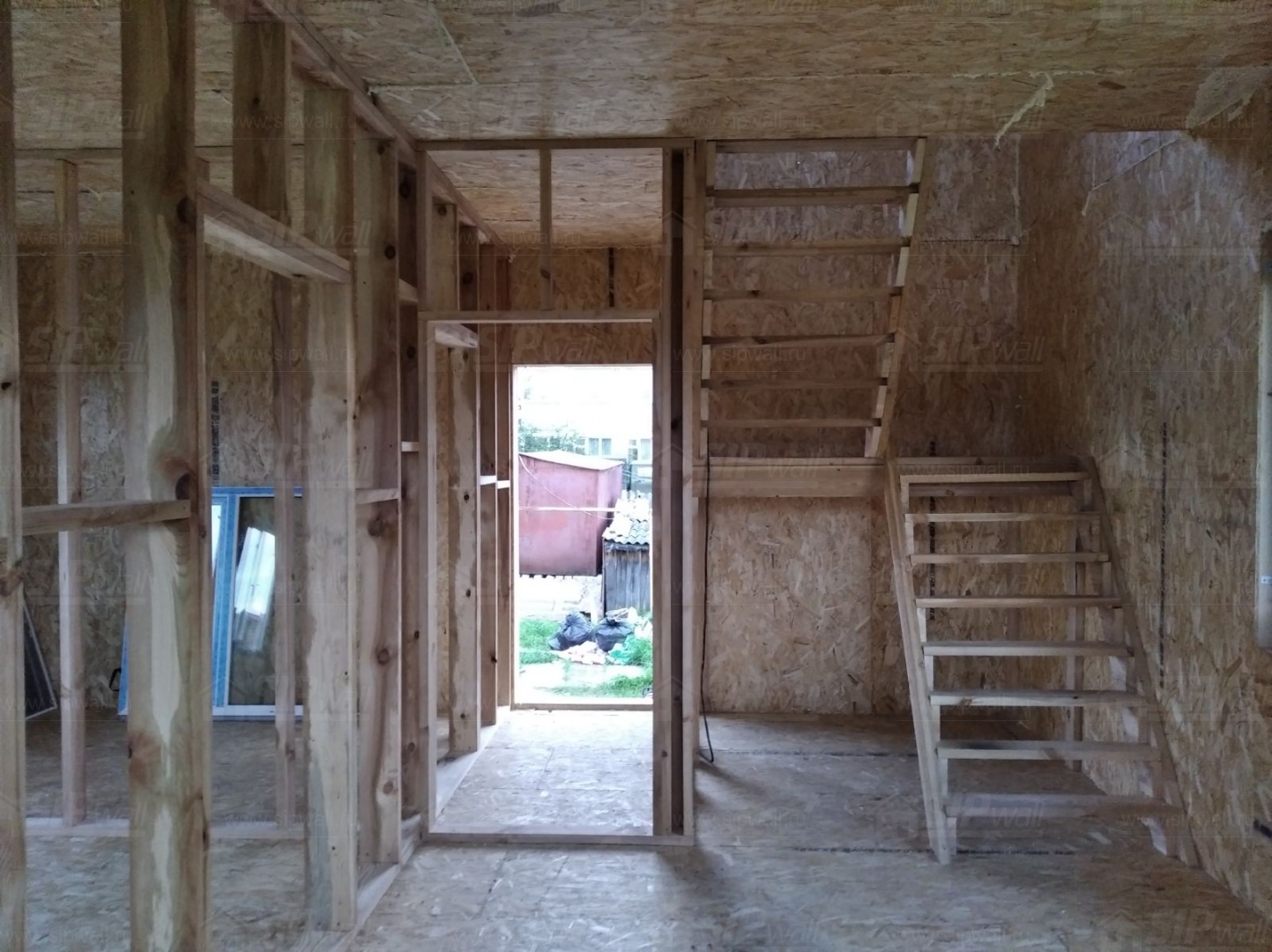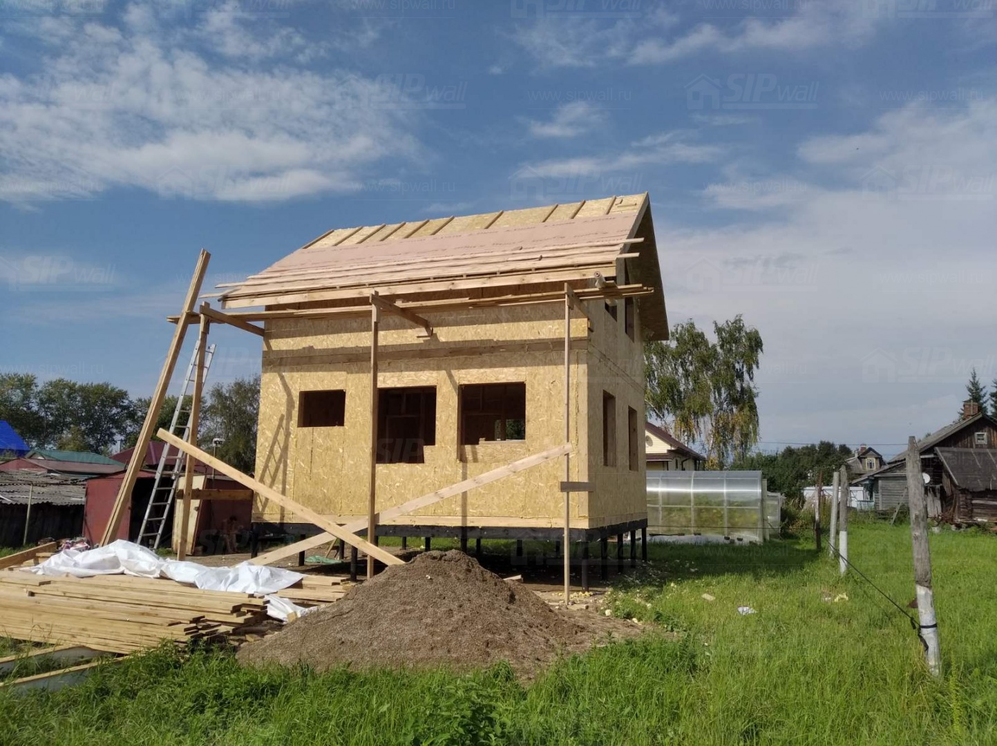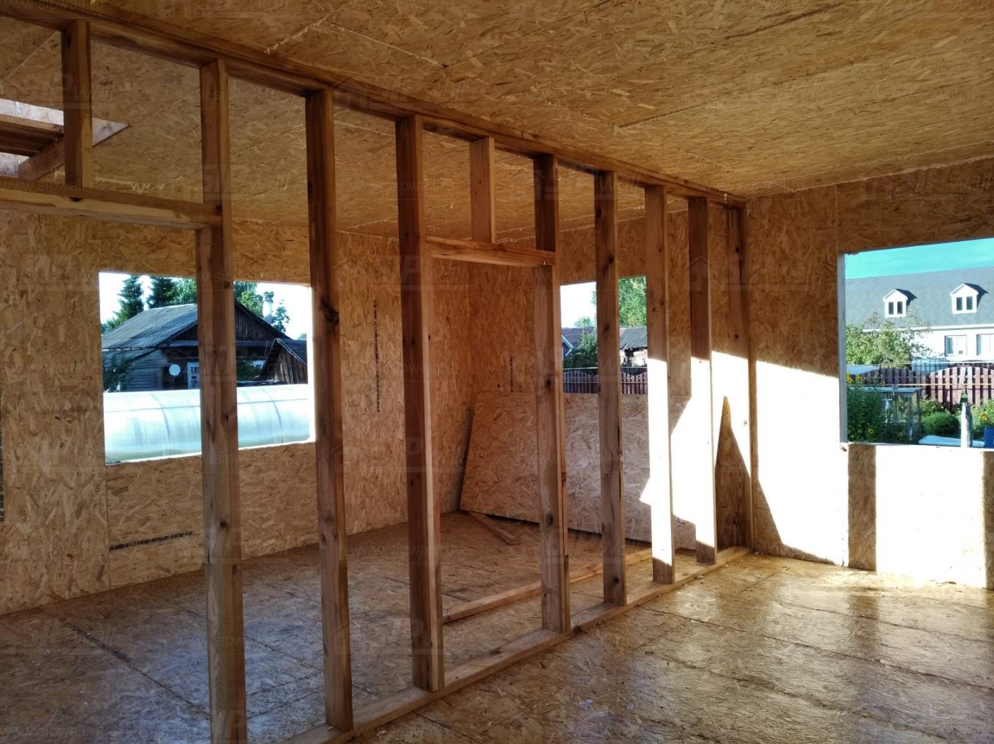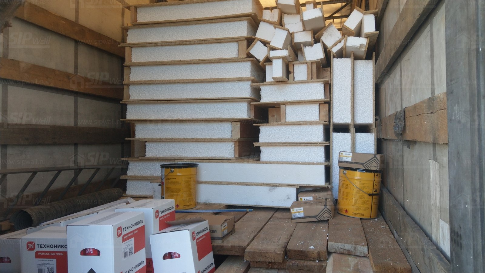 Все СИП панели SIPwall толщиной 224/174/124 мм (плиты OSB-3 толщиной 12 мм "Калевала" Россия и фасадный пенополистирол ППС-14 толщиной 200/150/100 мм производства, Россия) нарезаны и обрусованы сухим строганным брусом камерной сушки в соответствии с проектной документацией.