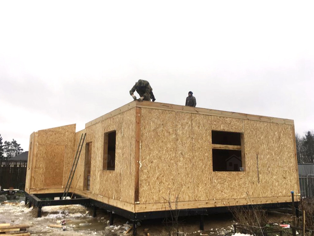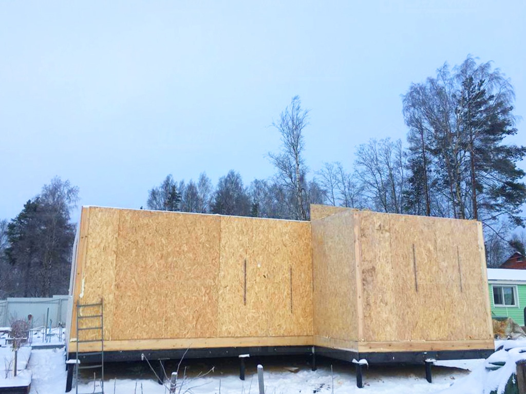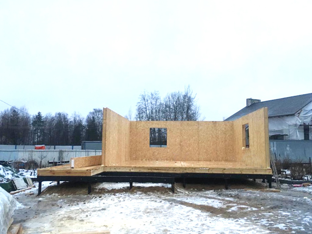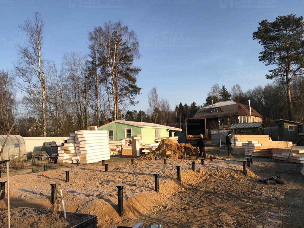 Региональный представитель в г. Санкт-Петербург, приступил к сборке дома из СИП панелей по по проекту АМУЛЕТ увелич., в Ленинградской обл., д. Агалатово, ул. Межевая<br>