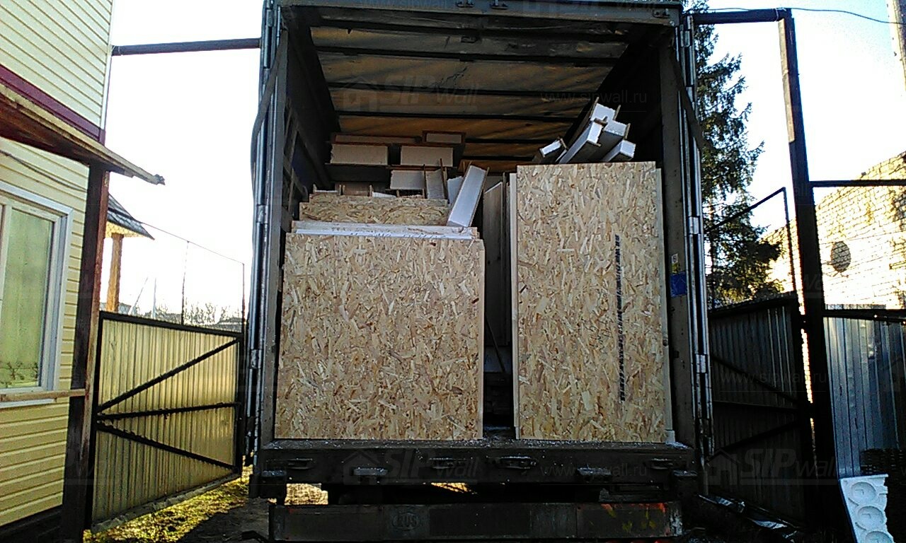 <b>Все СИП панели</b> SIPwall толщиной 224/174/124 мм (плиты OSB-3 толщиной 12 мм "Калевала" Россия и фасадный пенополистирол ПСБ-С 25Ф по ТУ 22.21.41.110−004 – 44755395 −2017 толщиной 200/150/100 мм производства завода "PolarPlast", Россия) нарезаны и обрусованы сухим строганным брусом камерной сушки в соответствии с проектной документацией.<br>