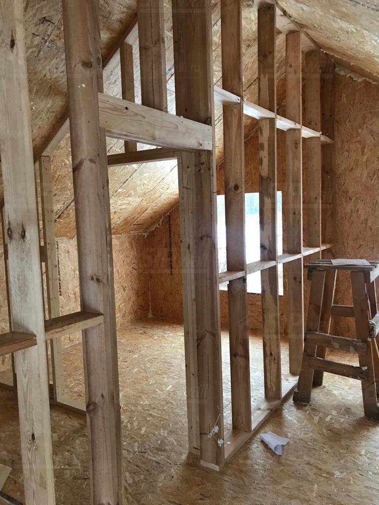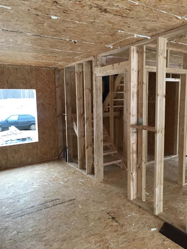 Все СИП панели SIPwall толщиной 224/174/124 мм (плиты OSB-3 толщиной 12 мм "Калевала" Россия и фасадный пенополистирол ПСБ-С 25 по ГОСТ 15588-14 толщиной 200/150/100 мм производства завода "PolarPlast", Россия) нарезаны и обрусованы сухим строганным брусом камерной сушки в соответствии с проектной документацией.