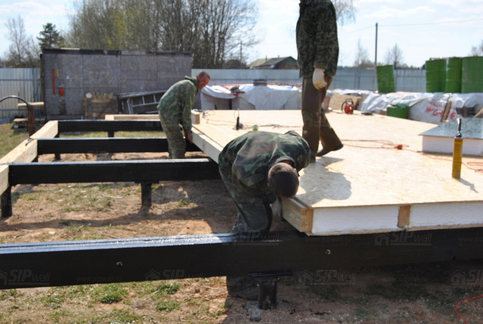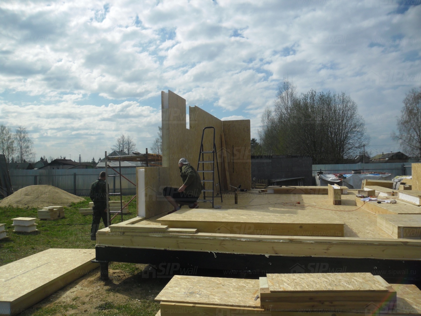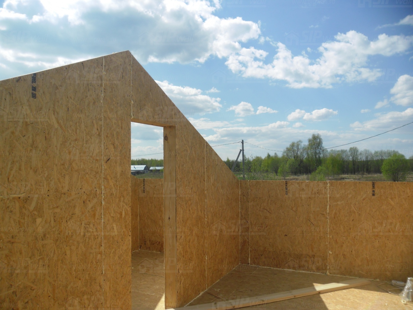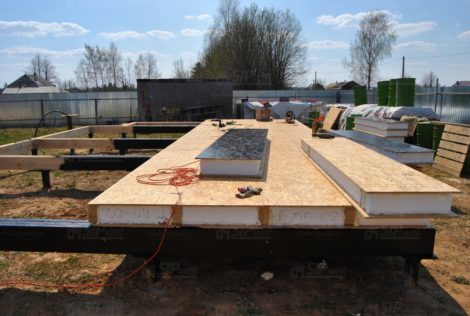 Все СИП панели SIPwall толщиной 224/174/124 мм (плиты OSB-3 толщиной 12 мм "Калевала" Россия и фасадный пенополистирол ПСБ-С 25 по ГОСТ 15588-14 толщиной 200/150/100 мм производства завода "PolarPlast", Россия) нарезаны и обрусованы сухим строганным брусом в соответствии с проектной документацией.