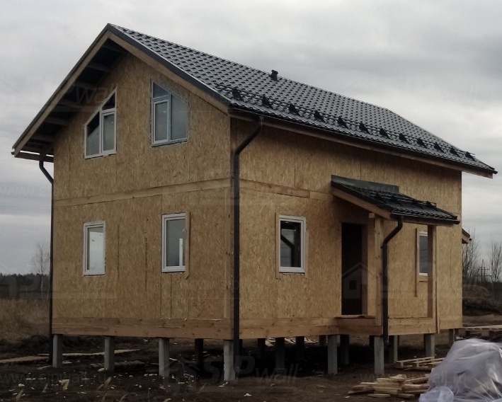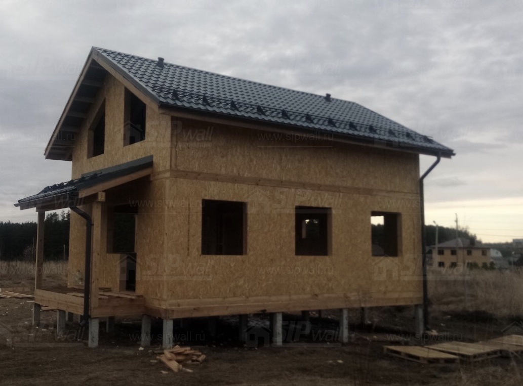 Домокомплект - изготовлен по проекту из СИП панелей произведенный по технологии SIPwall (ЭКОПАН) на собственном заводе расположенном в г. Шуя, Ивановской области. При изготовлении домокомплекта панельно каркасного дома используется только сухой строганный брус камерной сушки, обработанный огнебиозащитным составом.