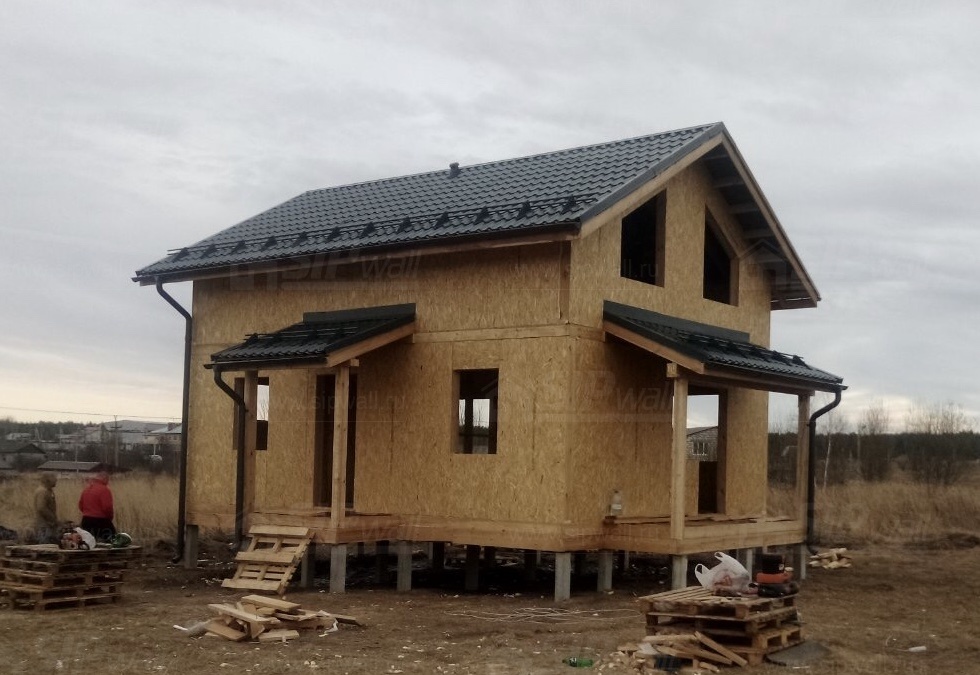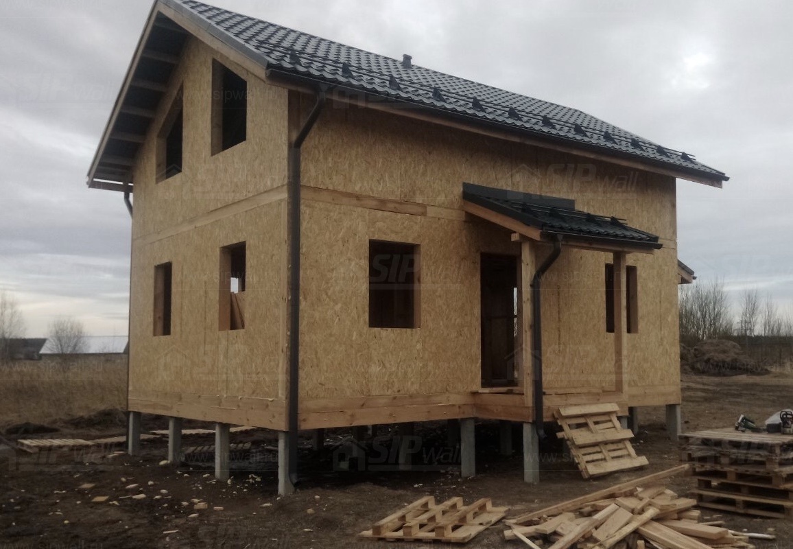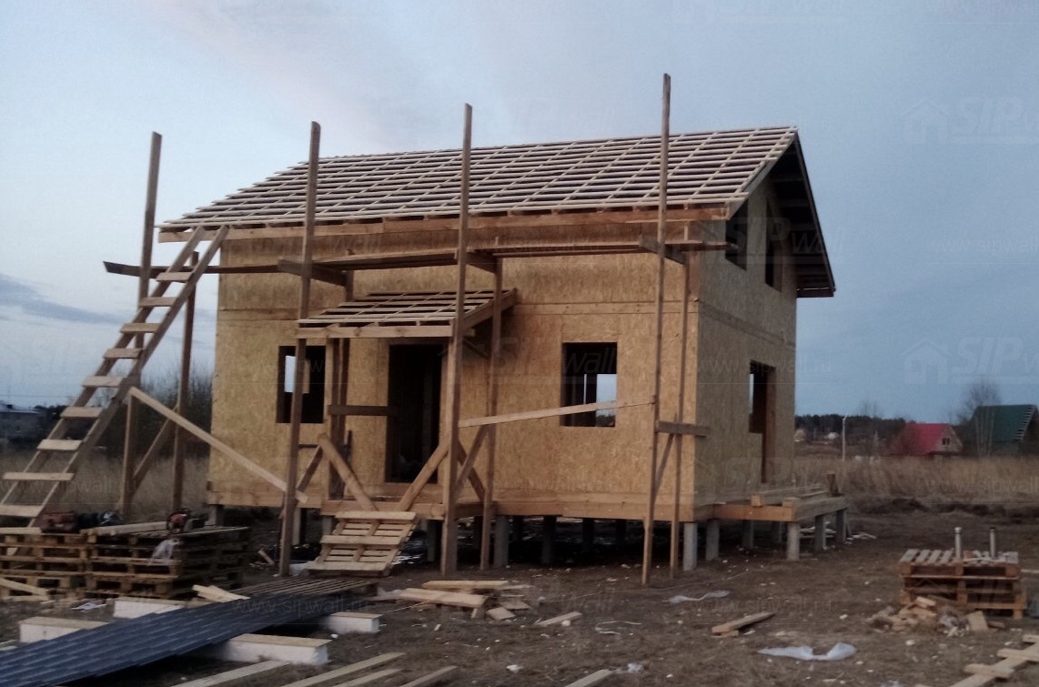 Все СИП панели SIPwall толщиной 224/174/124 мм (плиты OSB-3 толщиной 12 мм "Калевала" Россия и фасадный пенополистирол ППС-14 толщиной 200/150/100 мм производства, Россия) нарезаны и обрусованы сухим строганным брусом камерной сушки в соответствии с проектной документацией.