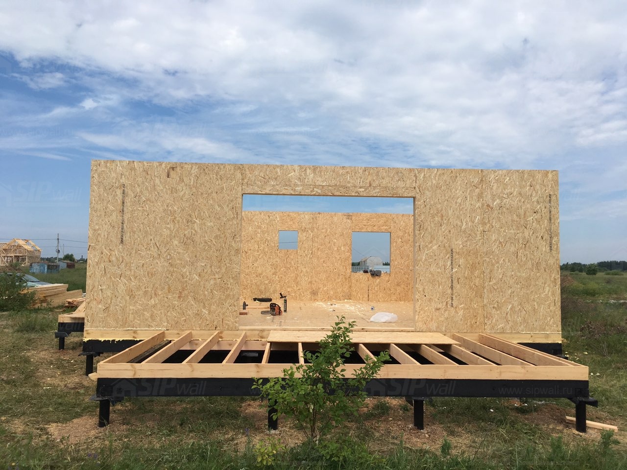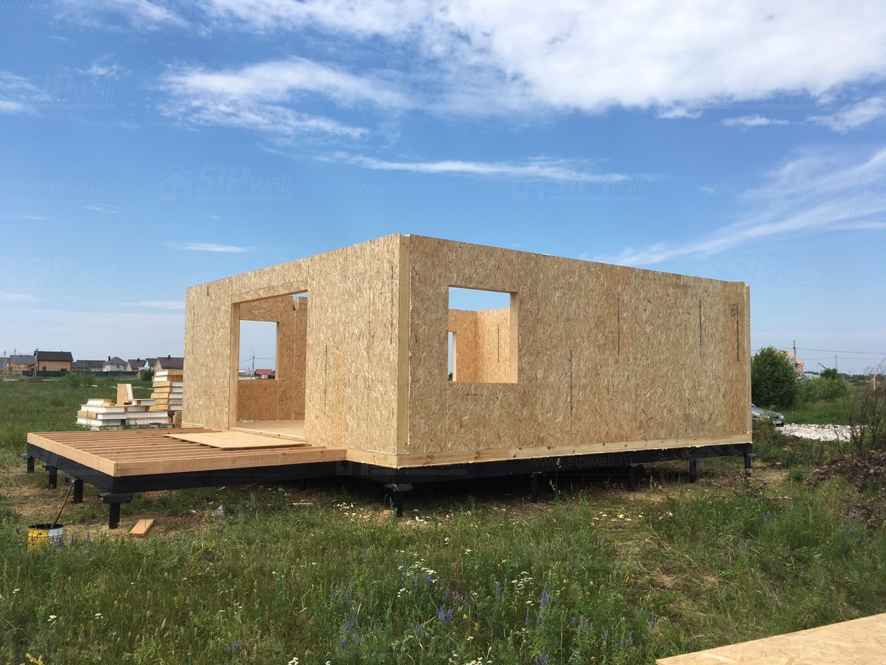 Все СИП панели SIPwall толщиной 224/174/124 мм (плиты OSB-3 толщиной 12 мм "Калевала" Россия и фасадный пенополистирол ПСБ-С 25Ф по ТУ 22.21.41.110−004 – 44755395 −2017 толщиной 200/150/100 мм производства завода "PolarPlast", Россия) нарезаны и обрусованы сухим строганным брусом камерной сушки в соответствии с проектной документацией.