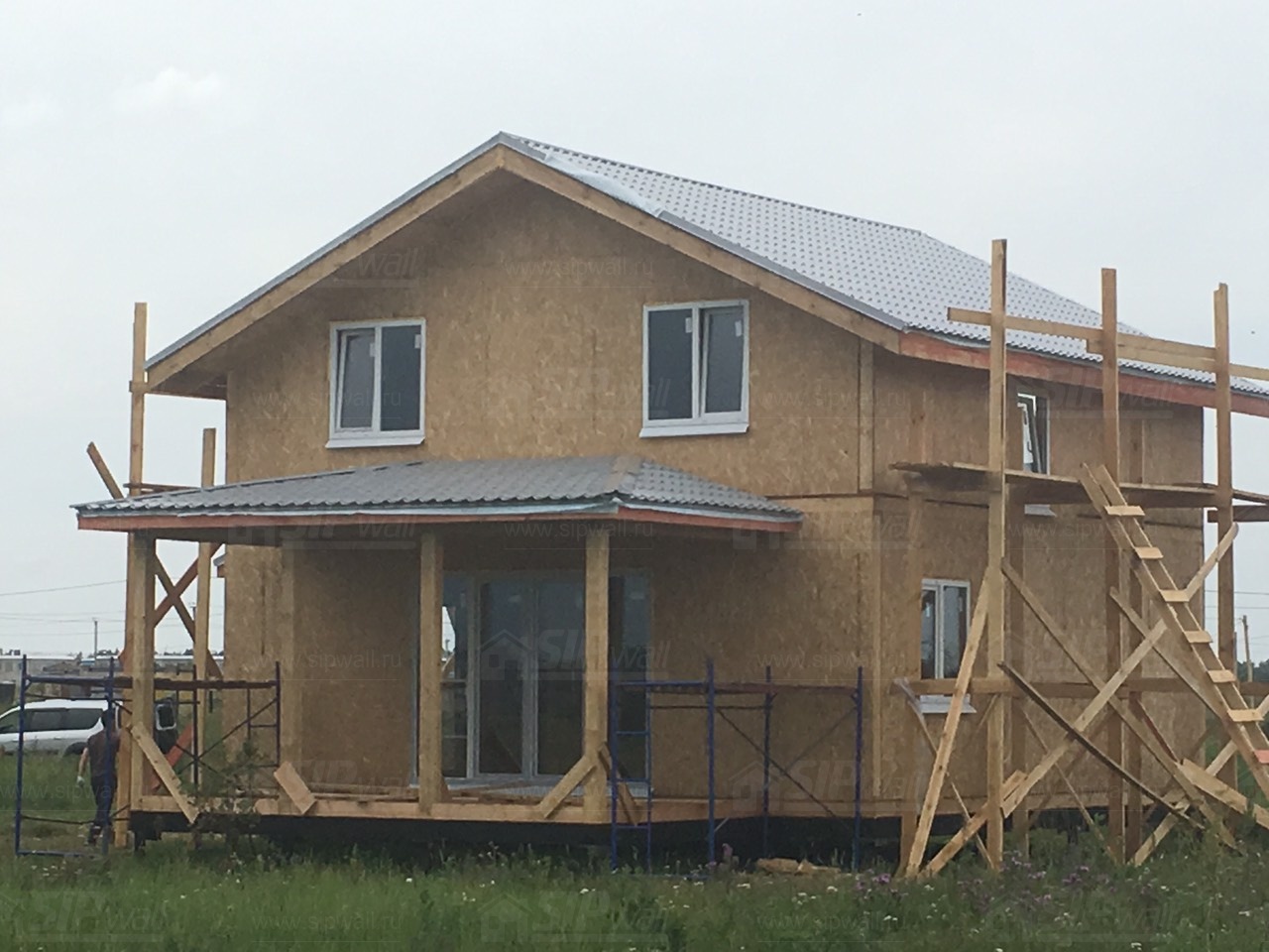 Домокомплект - изготовлен по проекту из СИП панелей произведенный по технологии SIPwall (ЭКОПАН) на собственном заводе расположенном в г. Шуя, Ивановской области. При изготовлении домокомплекта панельно каркасного дома используется только сухой строганный брус камерной сушки, обработанный огнебиозащитным составом.