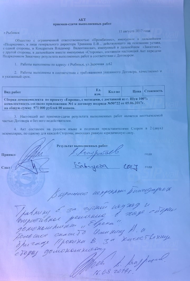 На выходе с завода «СИПВОЛЛ» домокомплект имеет 99-% ную готовность.