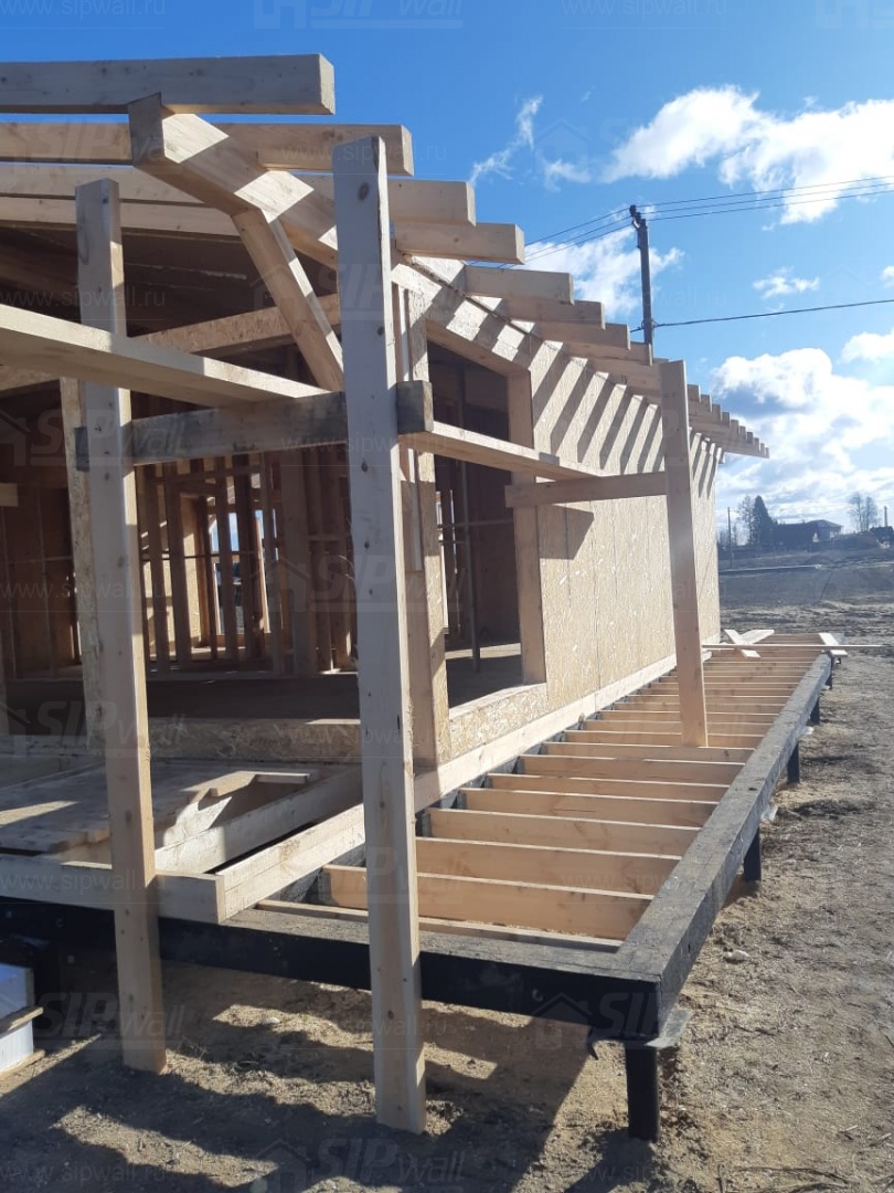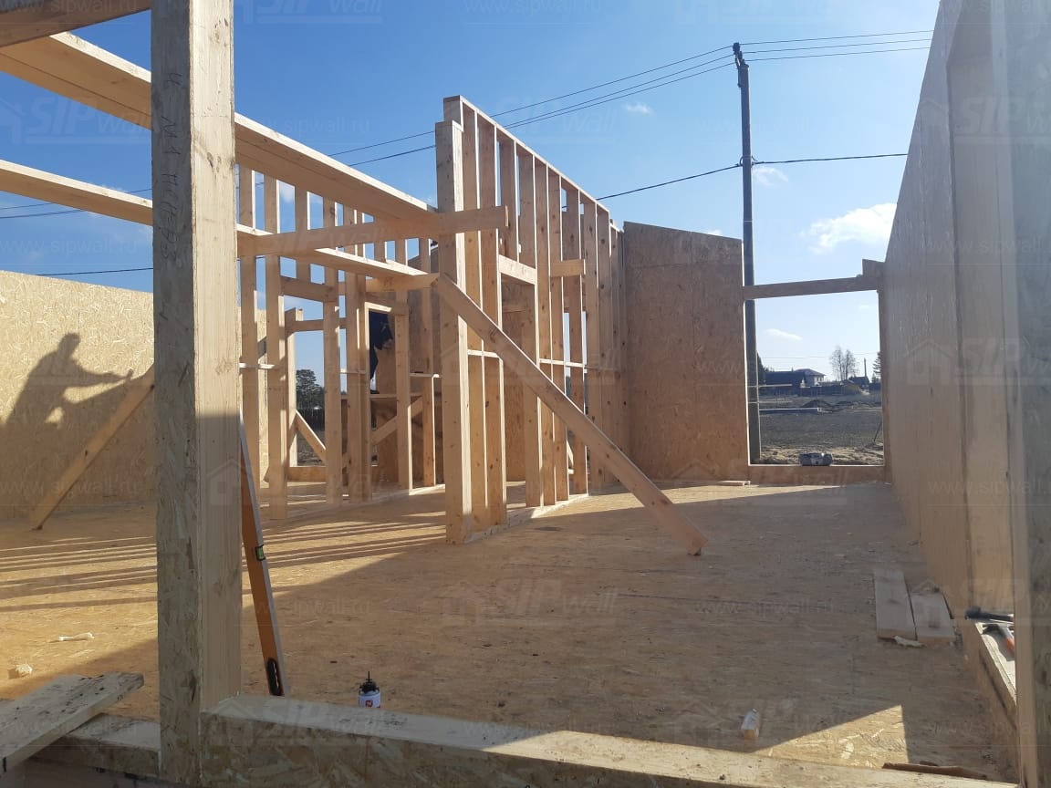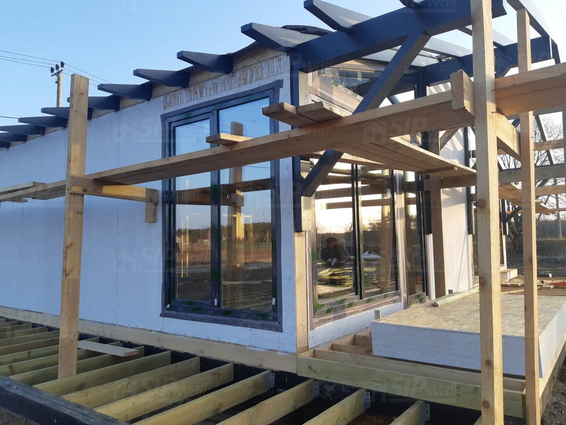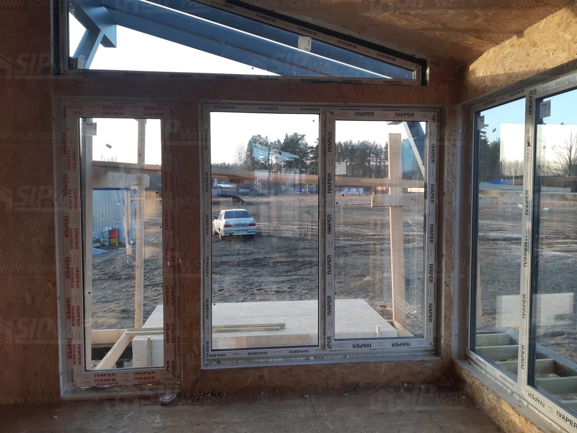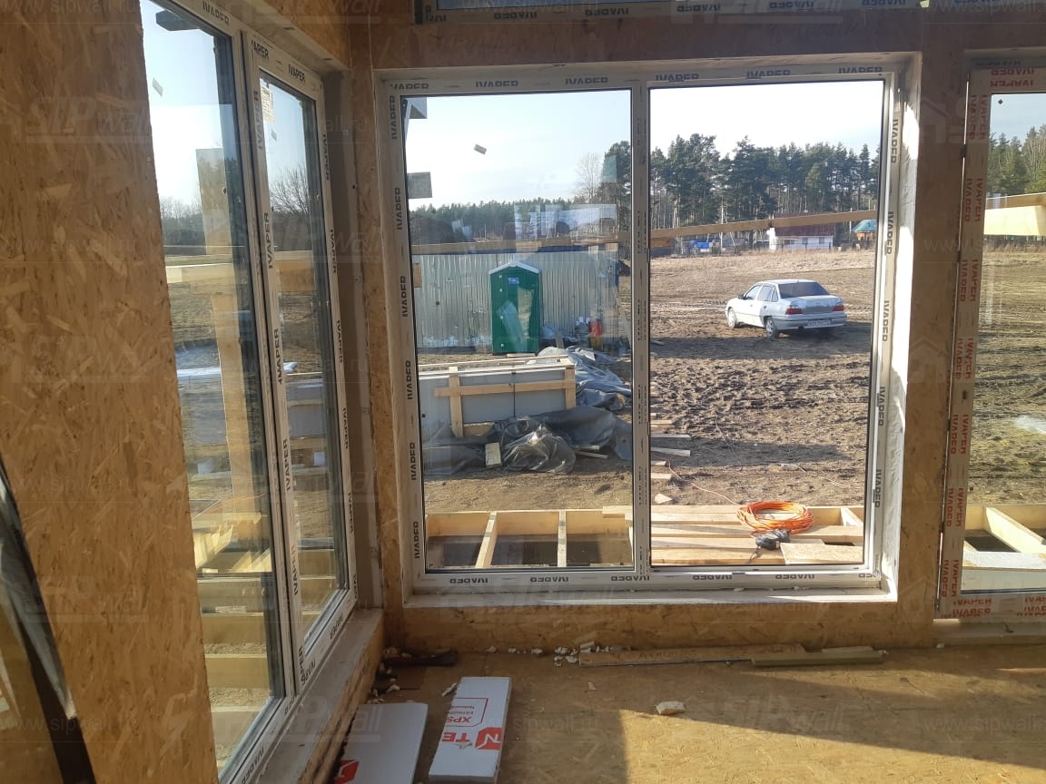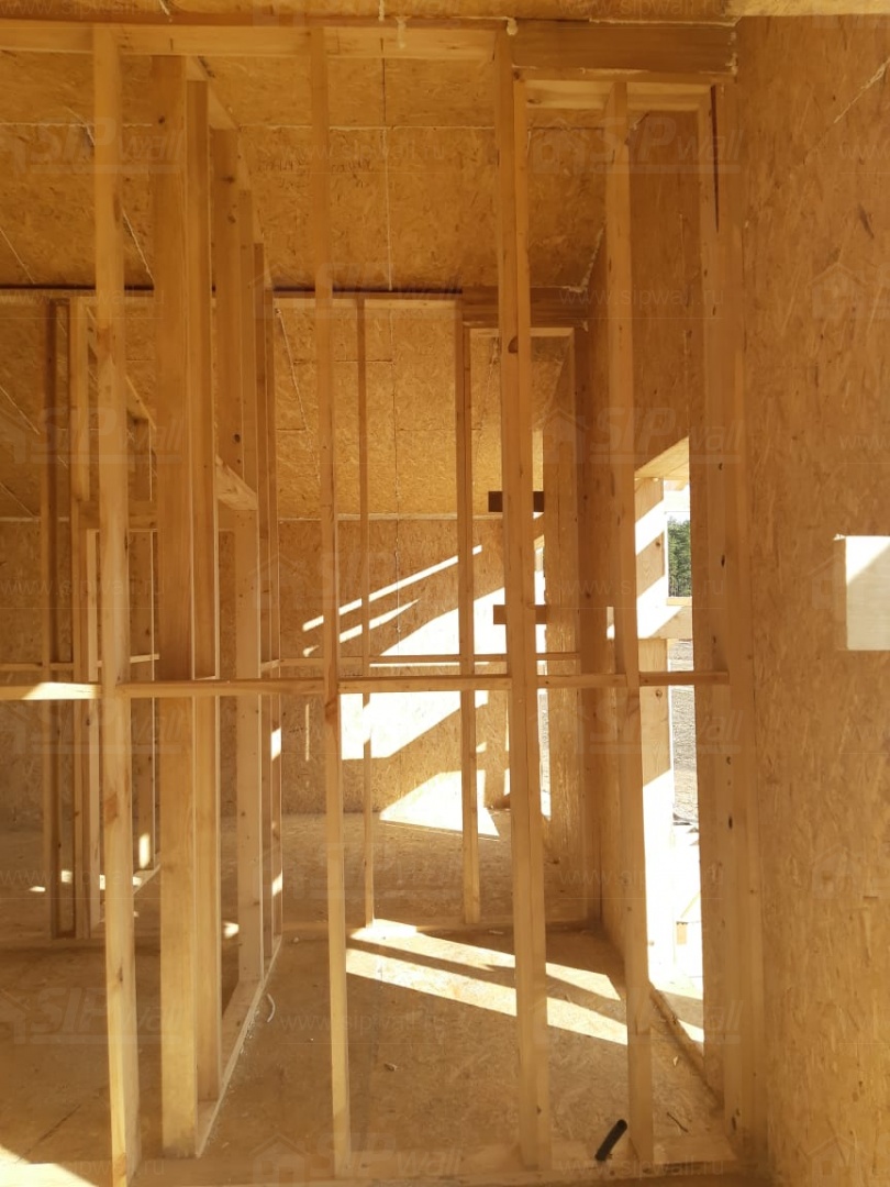 Все СИП панели SIPwall толщиной 224/174/124 мм (плиты OSB-3 толщиной 12 мм "Калевала" Россия и фасадный пенополистирол ППС-14 толщиной 200/150/100 мм производства, Россия) нарезаны и обрусованы сухим строганным брусом камерной сушки в соответствии с проектной документацией.