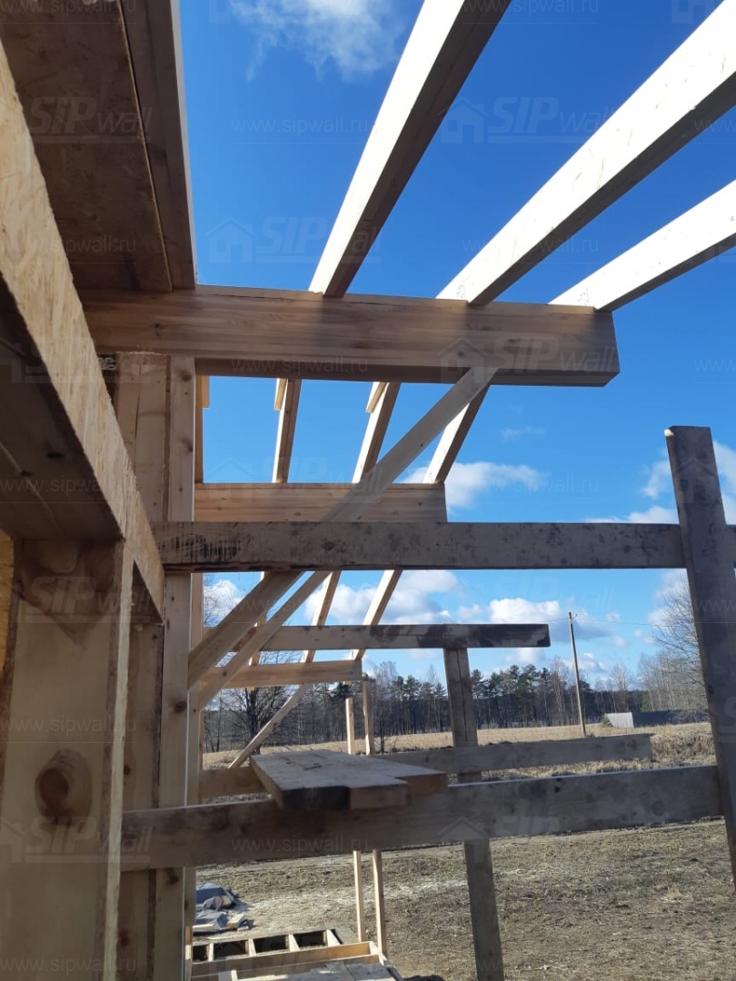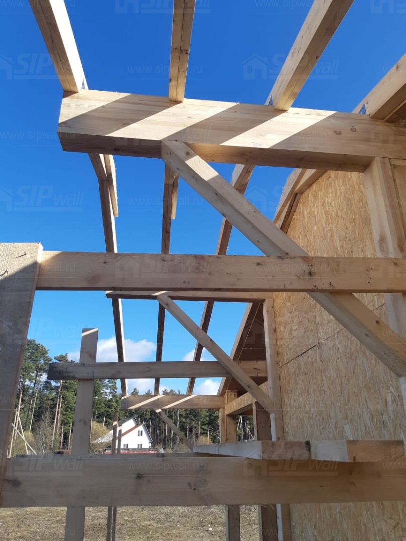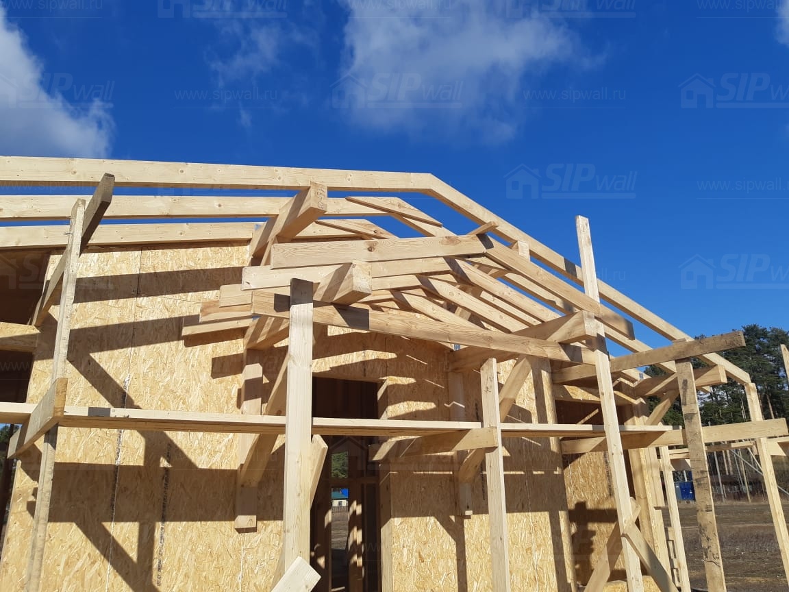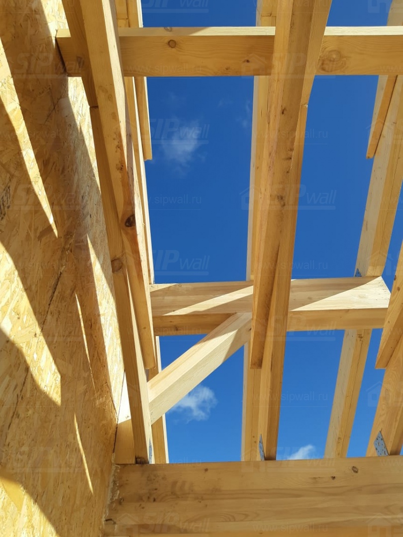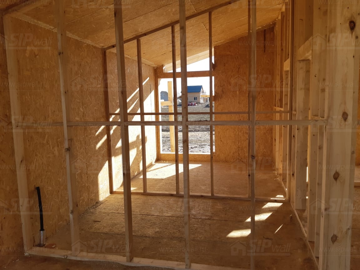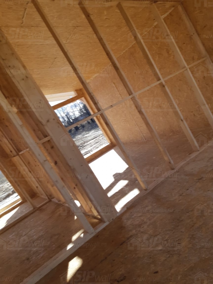 Все СИП панели SIPwall толщиной 224/174/124 мм (плиты OSB-3 толщиной 12 мм "Калевала" Россия и фасадный пенополистирол ППС-14 толщиной 200/150/100 мм производства, Россия) нарезаны и обрусованы сухим строганным брусом камерной сушки в соответствии с проектной документацией.