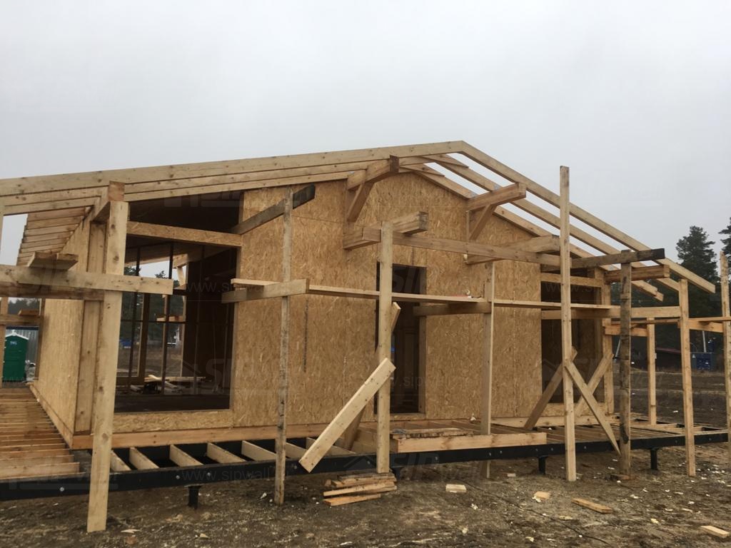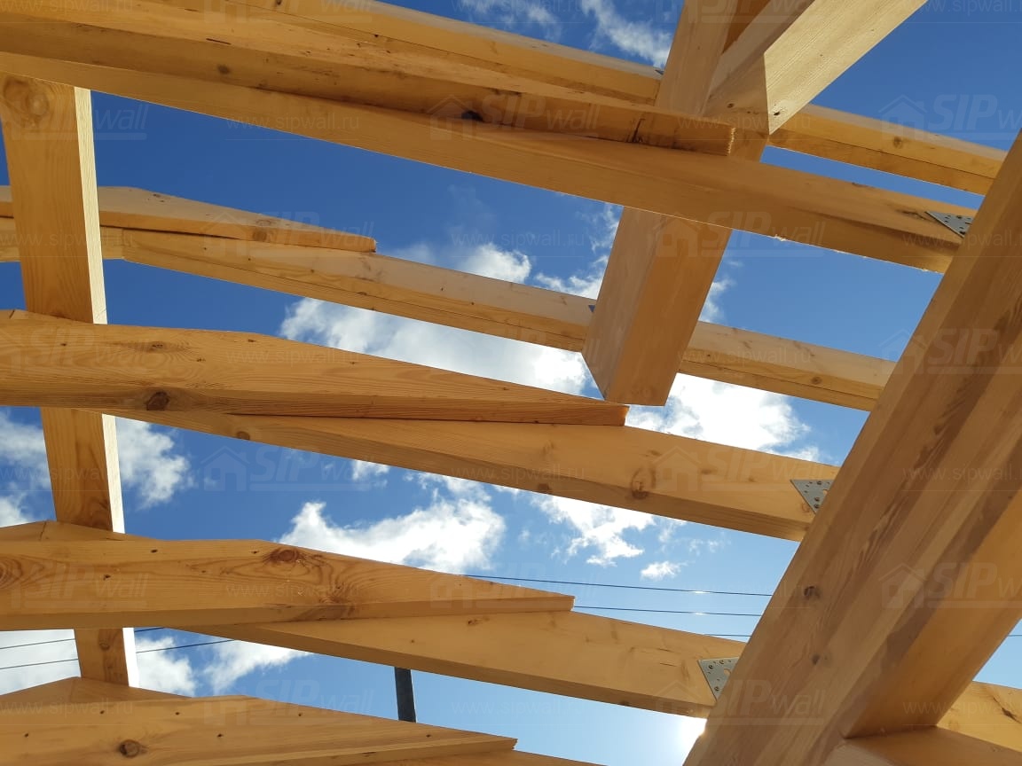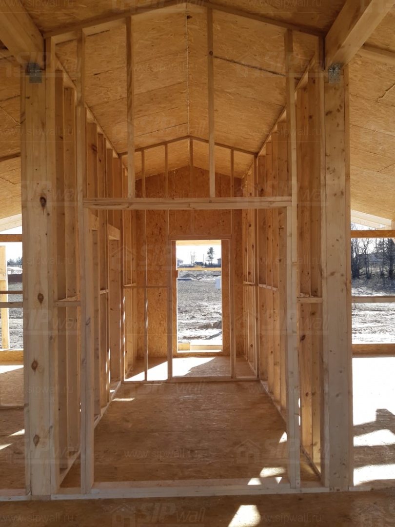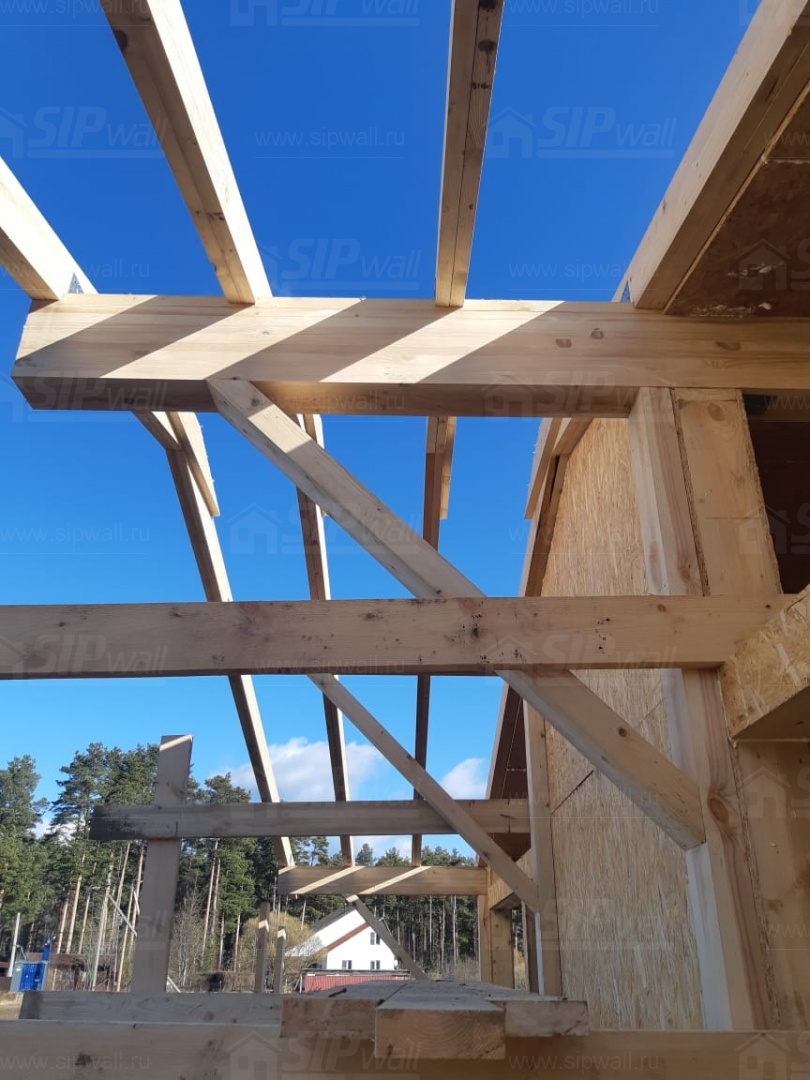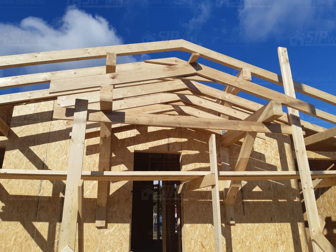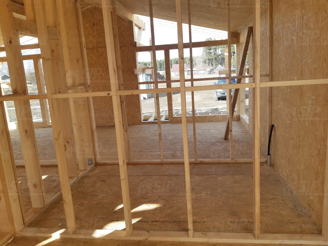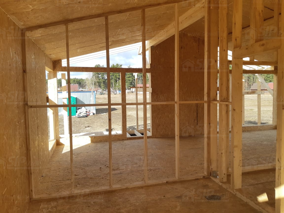 Все СИП панели SIPwall толщиной 224/174/124 мм (плиты OSB-3 толщиной 12 мм "Калевала" Россия и фасадный пенополистирол ППС-14 толщиной 200/150/100 мм производства, Россия) нарезаны и обрусованы сухим строганным брусом камерной сушки в соответствии с проектной документацией.