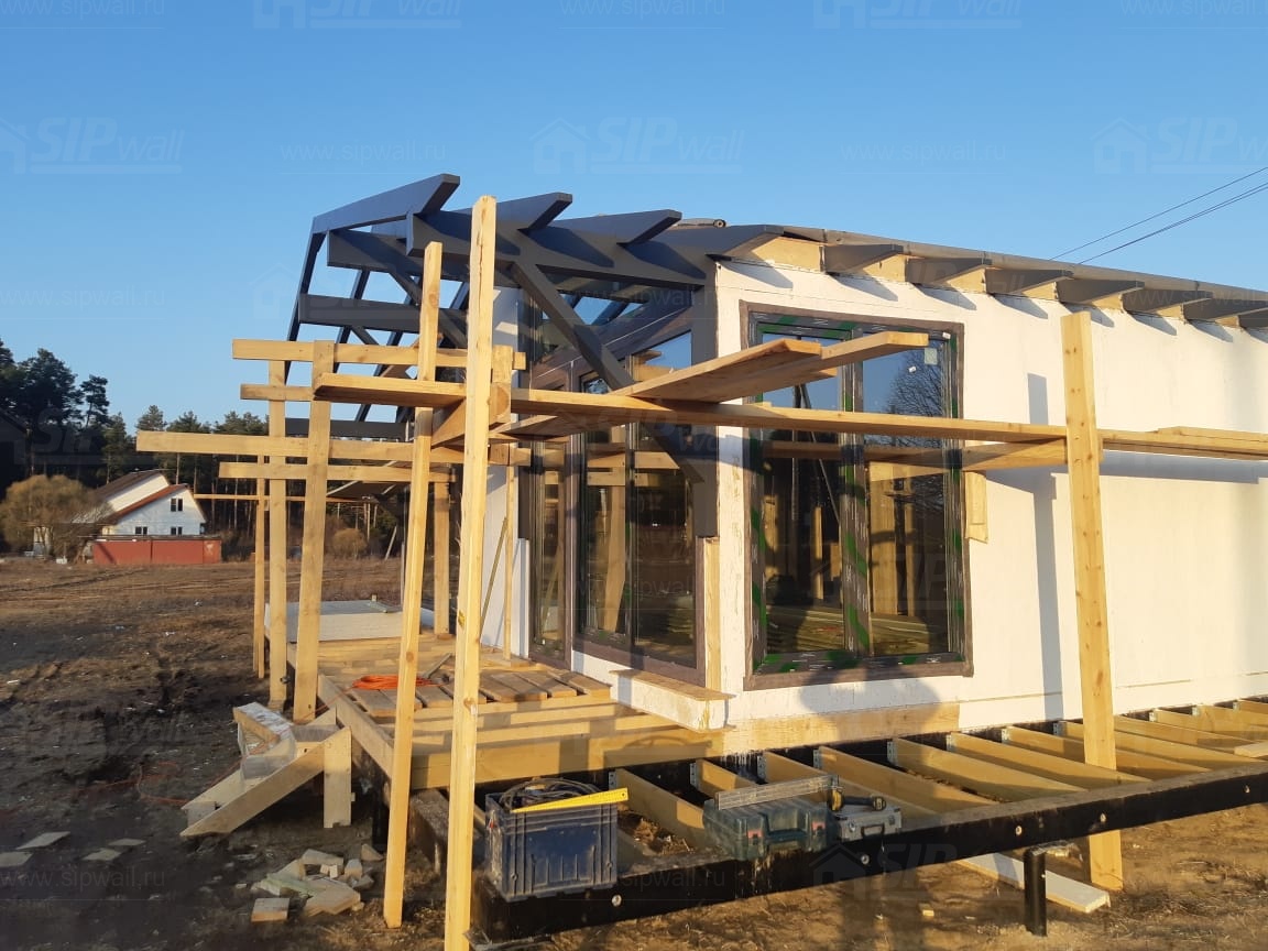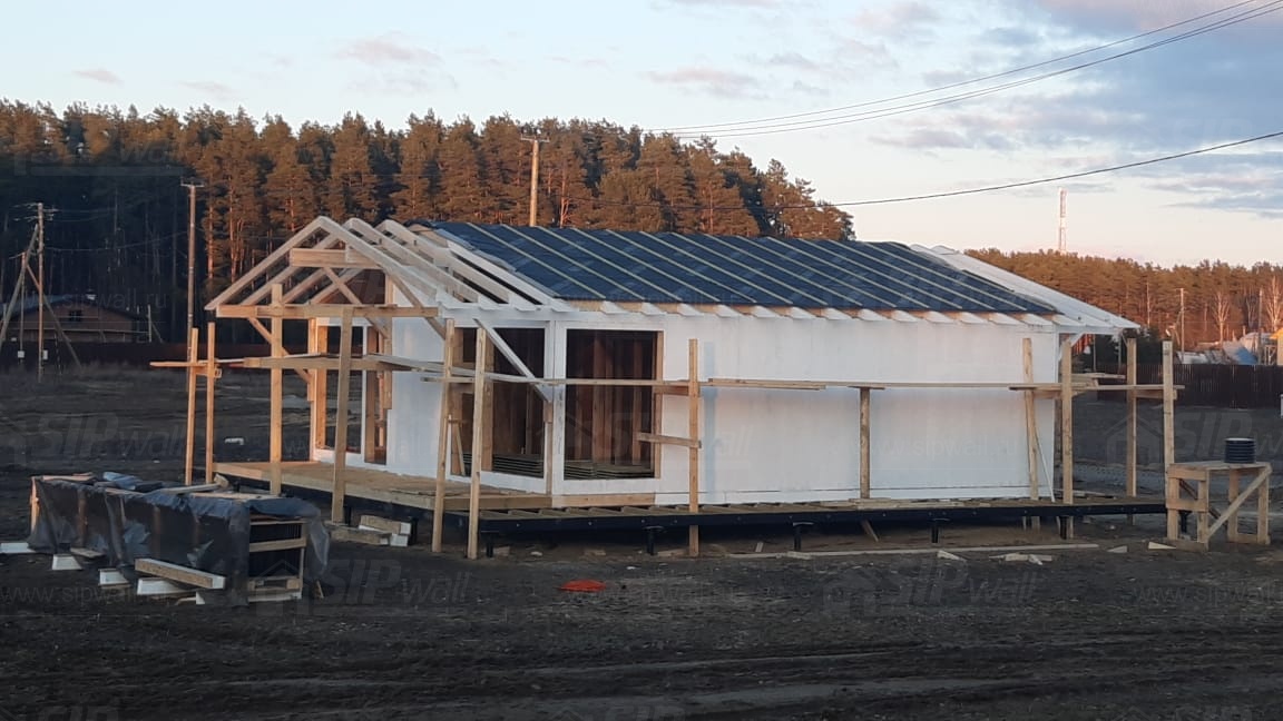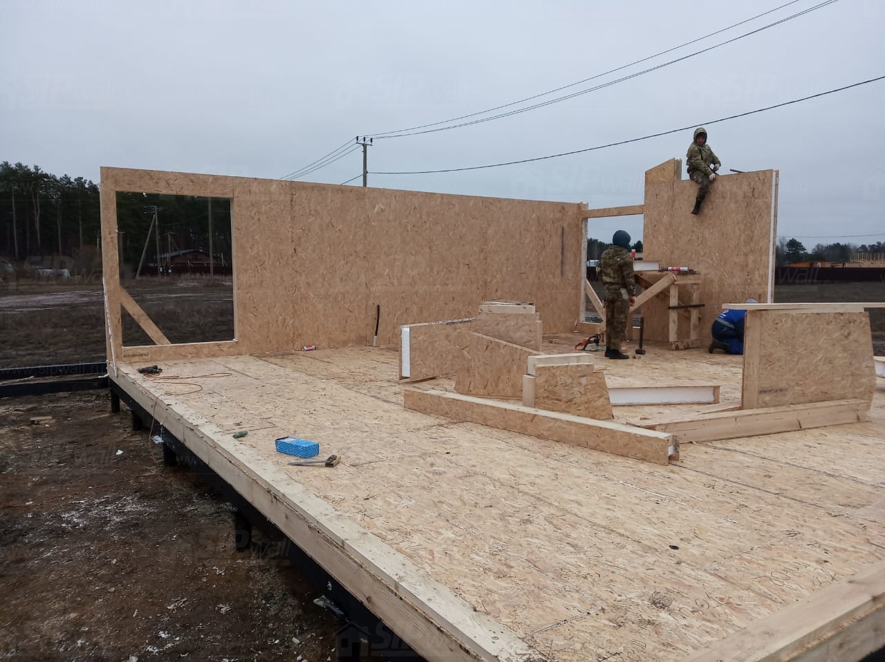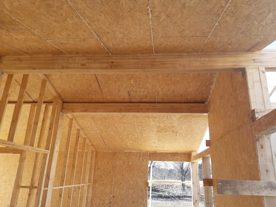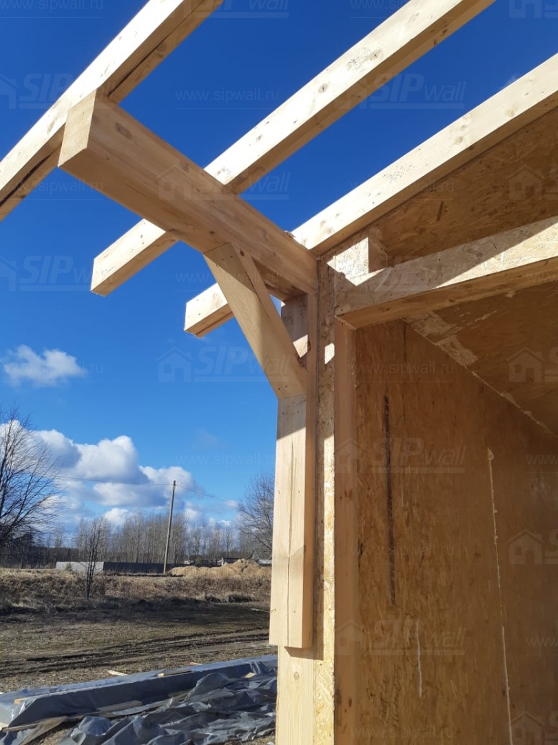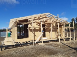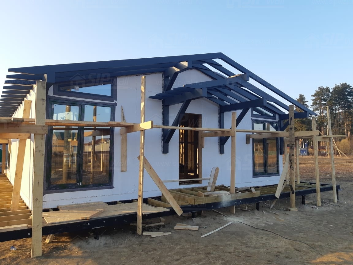 Все СИП панели SIPwall толщиной 224/174/124 мм (плиты OSB-3 толщиной 12 мм "Калевала" Россия и фасадный пенополистирол ППС-14 толщиной 200/150/100 мм производства, Россия) нарезаны и обрусованы сухим строганным брусом камерной сушки в соответствии с проектной документацией.