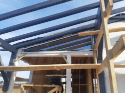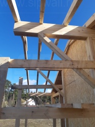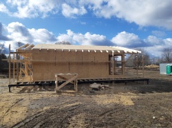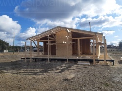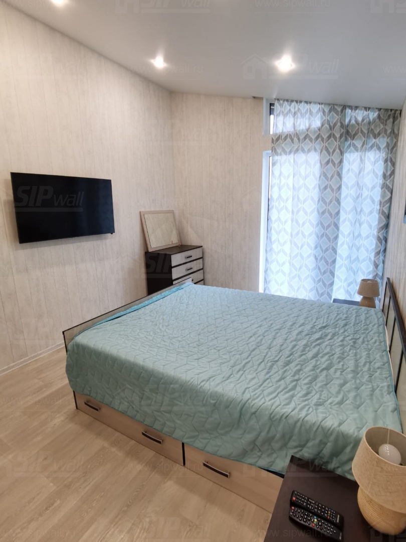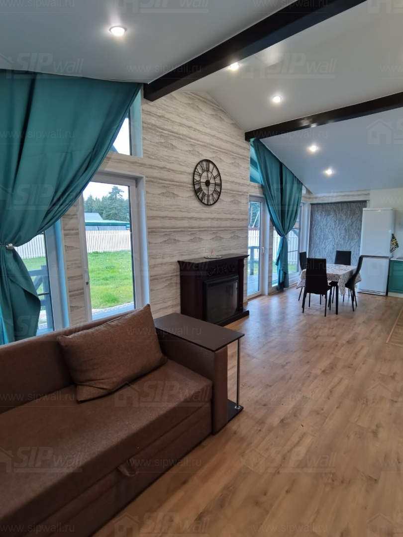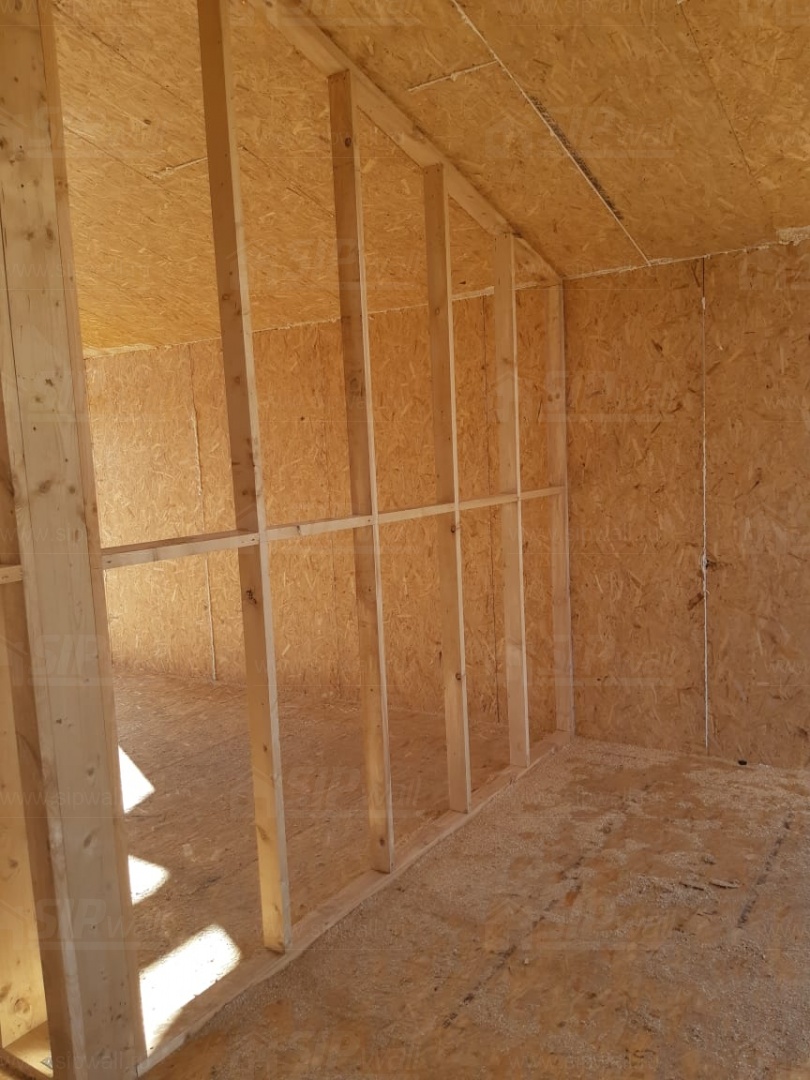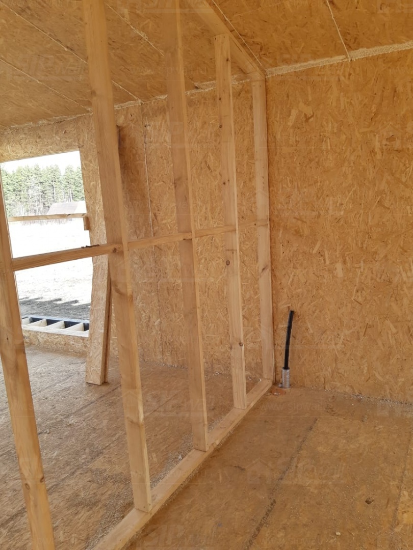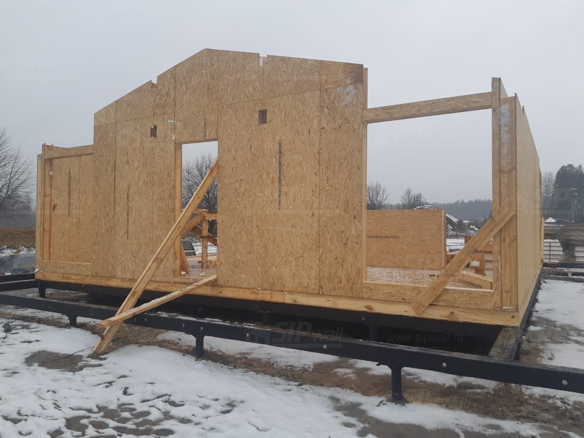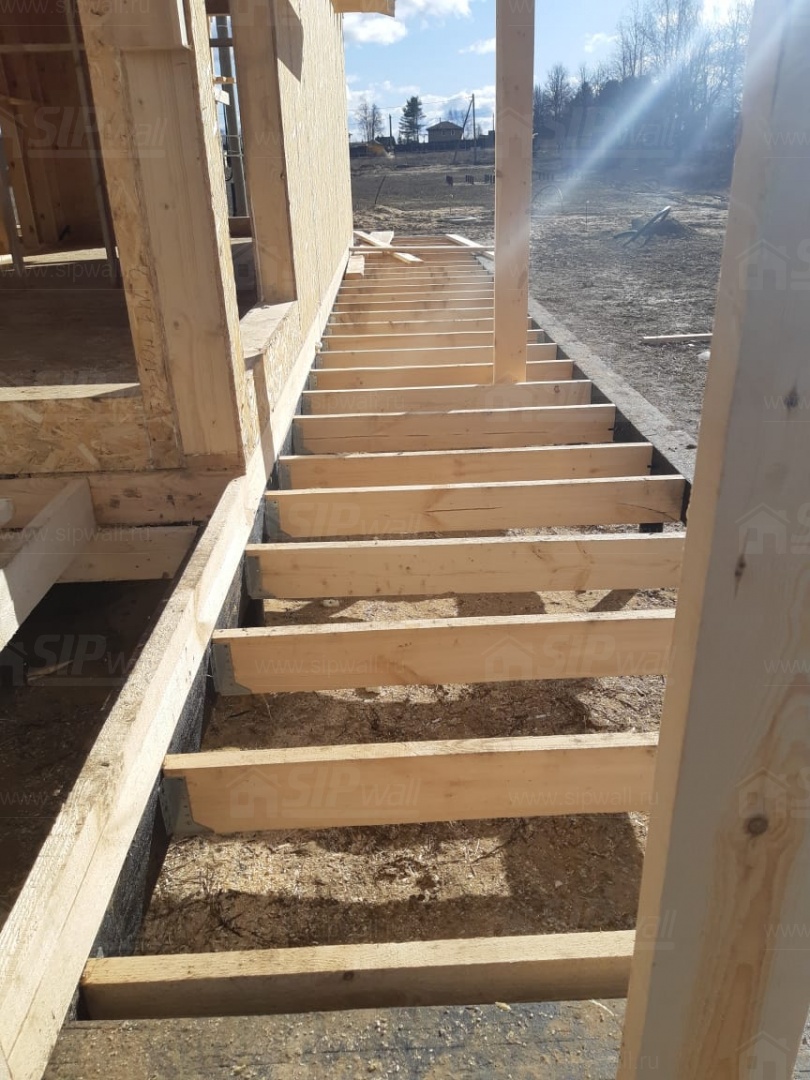 Все СИП панели SIPwall толщиной 224/174/124 мм (плиты OSB-3 толщиной 12 мм "Калевала" Россия и фасадный пенополистирол ППС-14 толщиной 200/150/100 мм производства, Россия) нарезаны и обрусованы сухим строганным брусом камерной сушки в соответствии с проектной документацией.