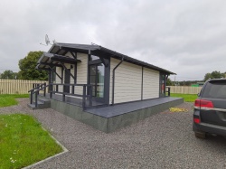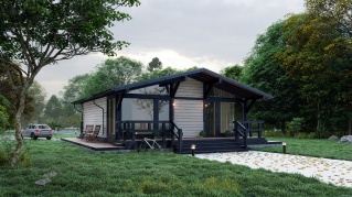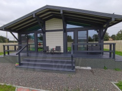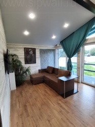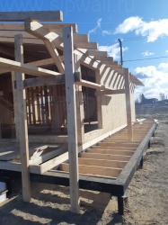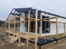 Домокомплект - изготовлен по проекту из СИП панелей произведенный по технологии SIPwall (ЭКОПАН) на собственном заводе расположенном в г. Шуя, Ивановской области. При изготовлении домокомплекта панельно каркасного дома используется только сухой строганный брус камерной сушки, обработанный огнебиозащитным составом.