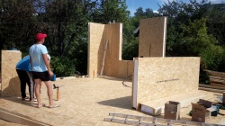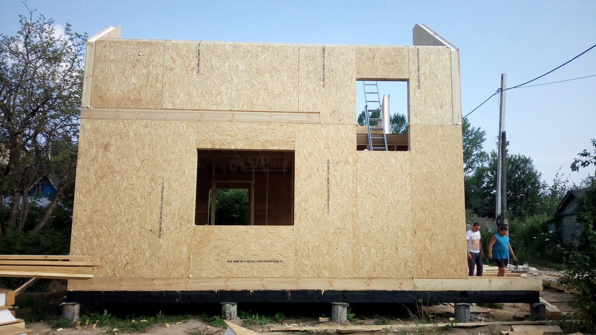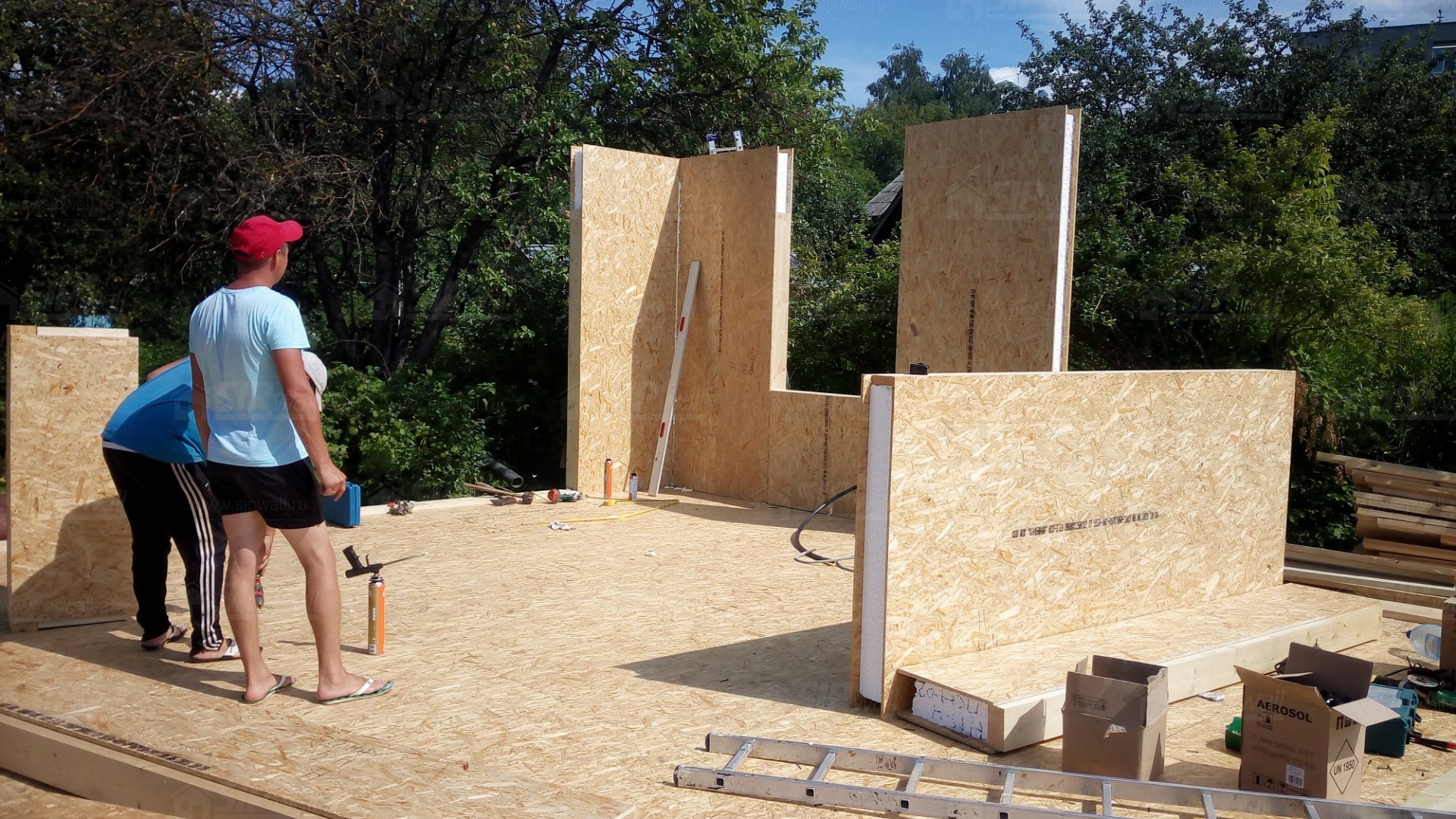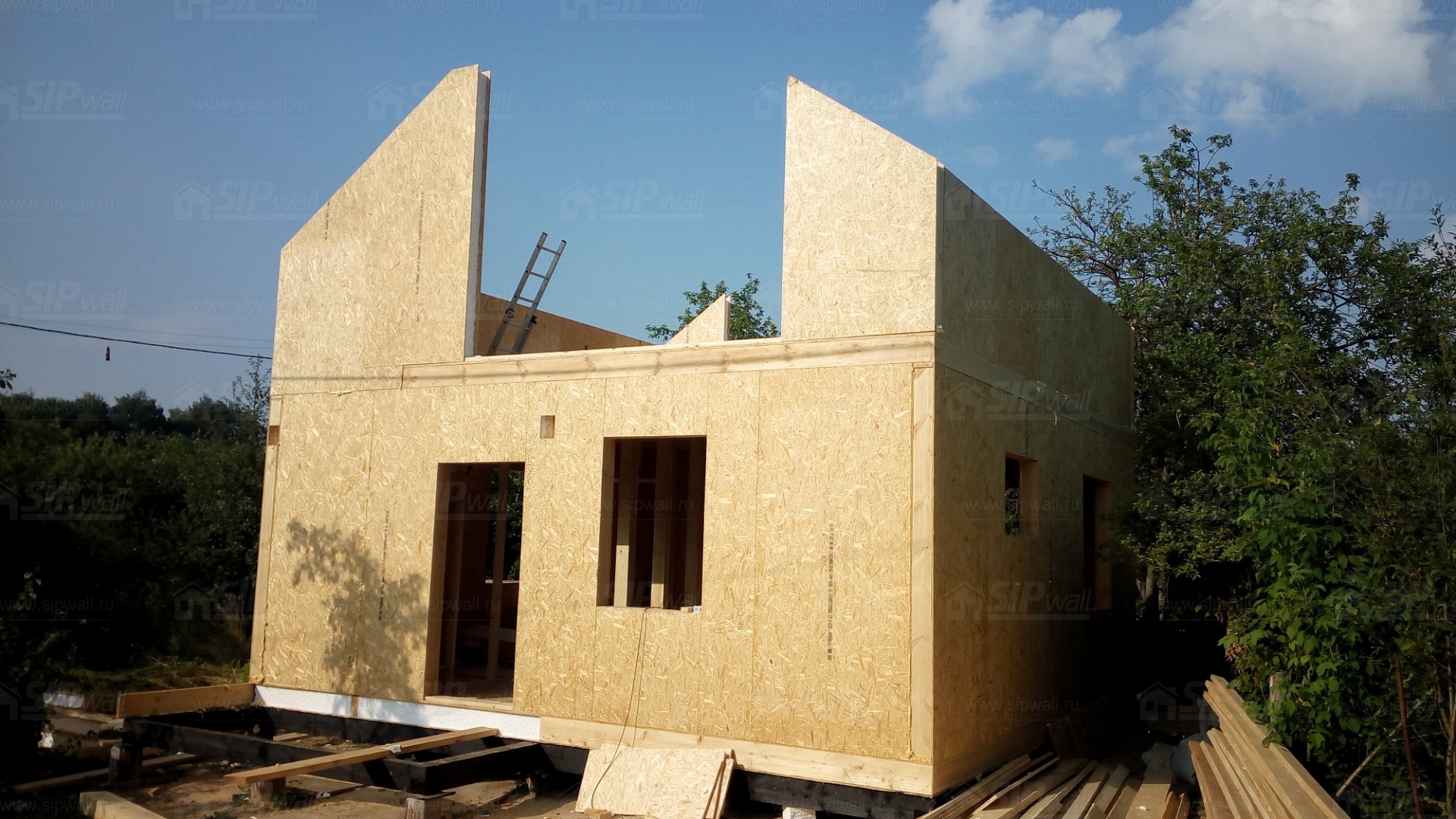 Все СИП панели SIPwall толщиной 224/174/124 мм (плиты OSB-3 толщиной 12 мм "Калевала" Россия и фасадный пенополистирол ПСБ-С 25 по ГОСТ 15588-14 толщиной 200/150/100 мм производства завода "PolarPlast", Россия) нарезаны и обрусованы сухим строганным брусом в соответствии с проектной документацией.