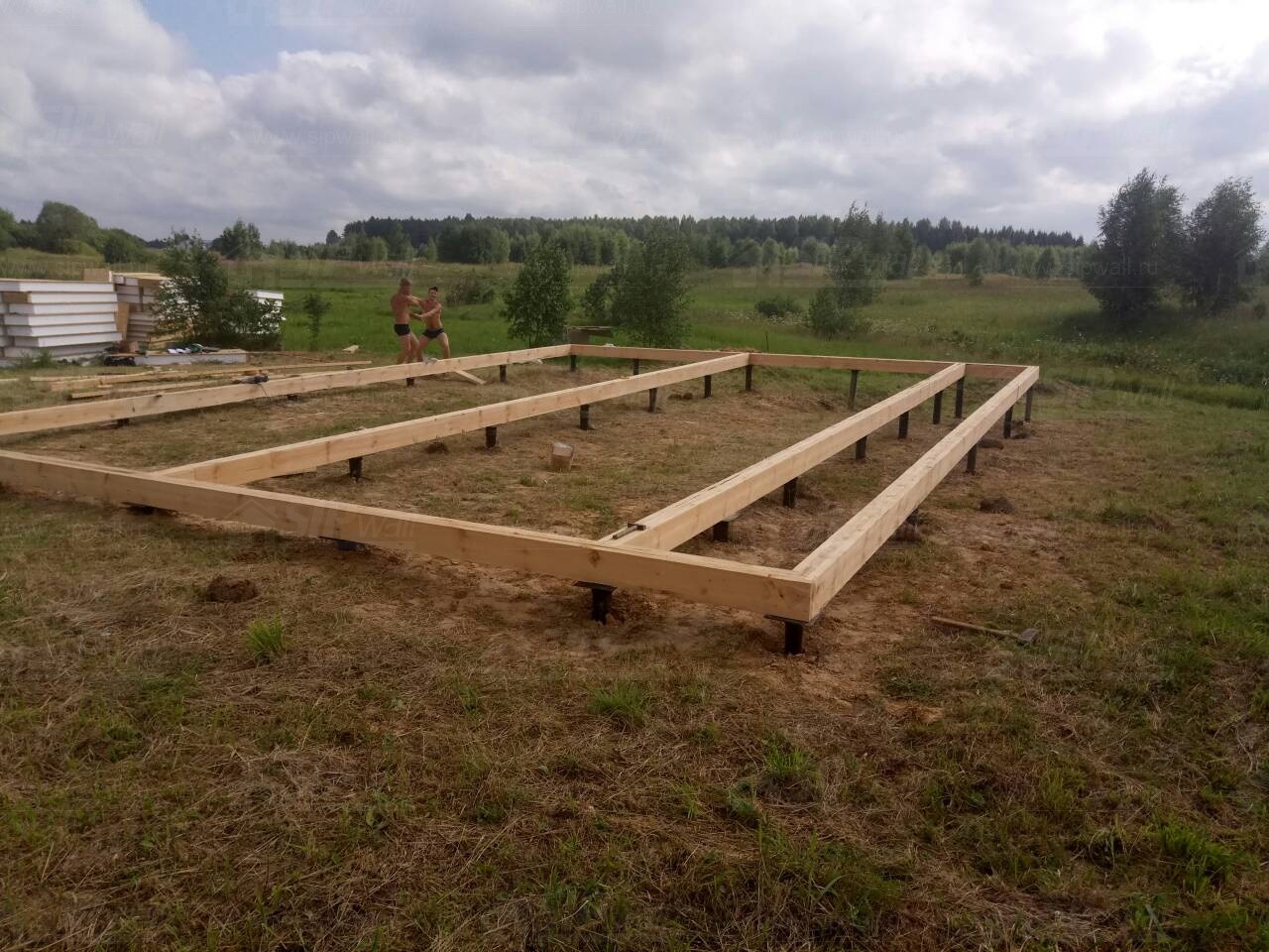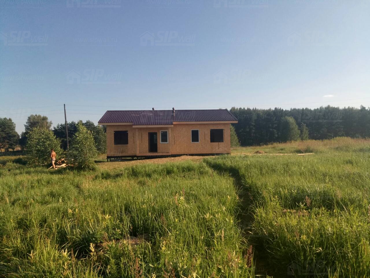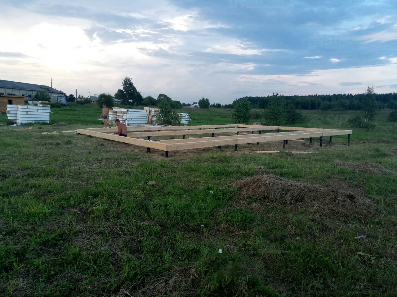 Все СИП панели SIPwall толщиной 224/174/124 мм (плиты OSB-3 толщиной 12 мм "Калевала" Россия и фасадный пенополистирол ПСБ-С 25 по ГОСТ 15588-14 толщиной 200/150/100 мм производства завода "PolarPlast", Россия) нарезаны и обрусованы сухим строганным брусом камерной сушки в соответствии с проектной документацией.
