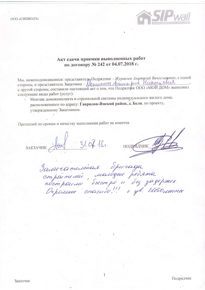 На выходе с завода «СИПВОЛЛ» домокомплект имеет 99-% ную готовность.